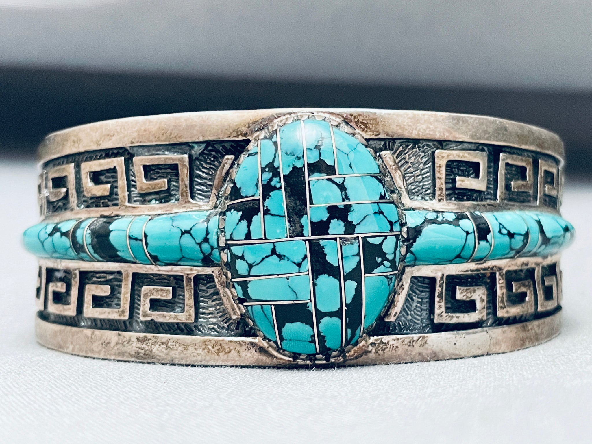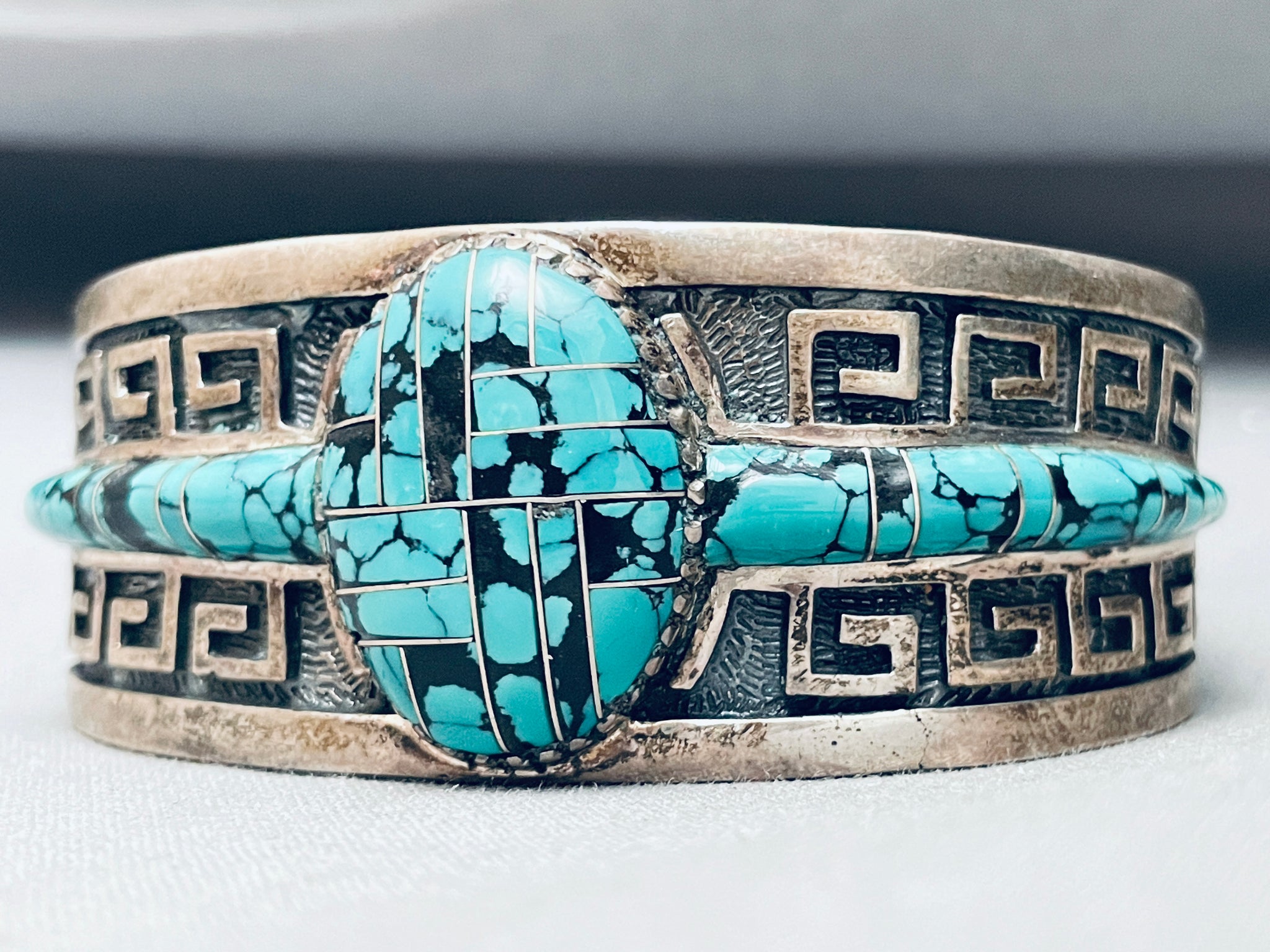 7 Inch Wrist Vintage Southwestern Sterling Silver Turquoise Bracelet