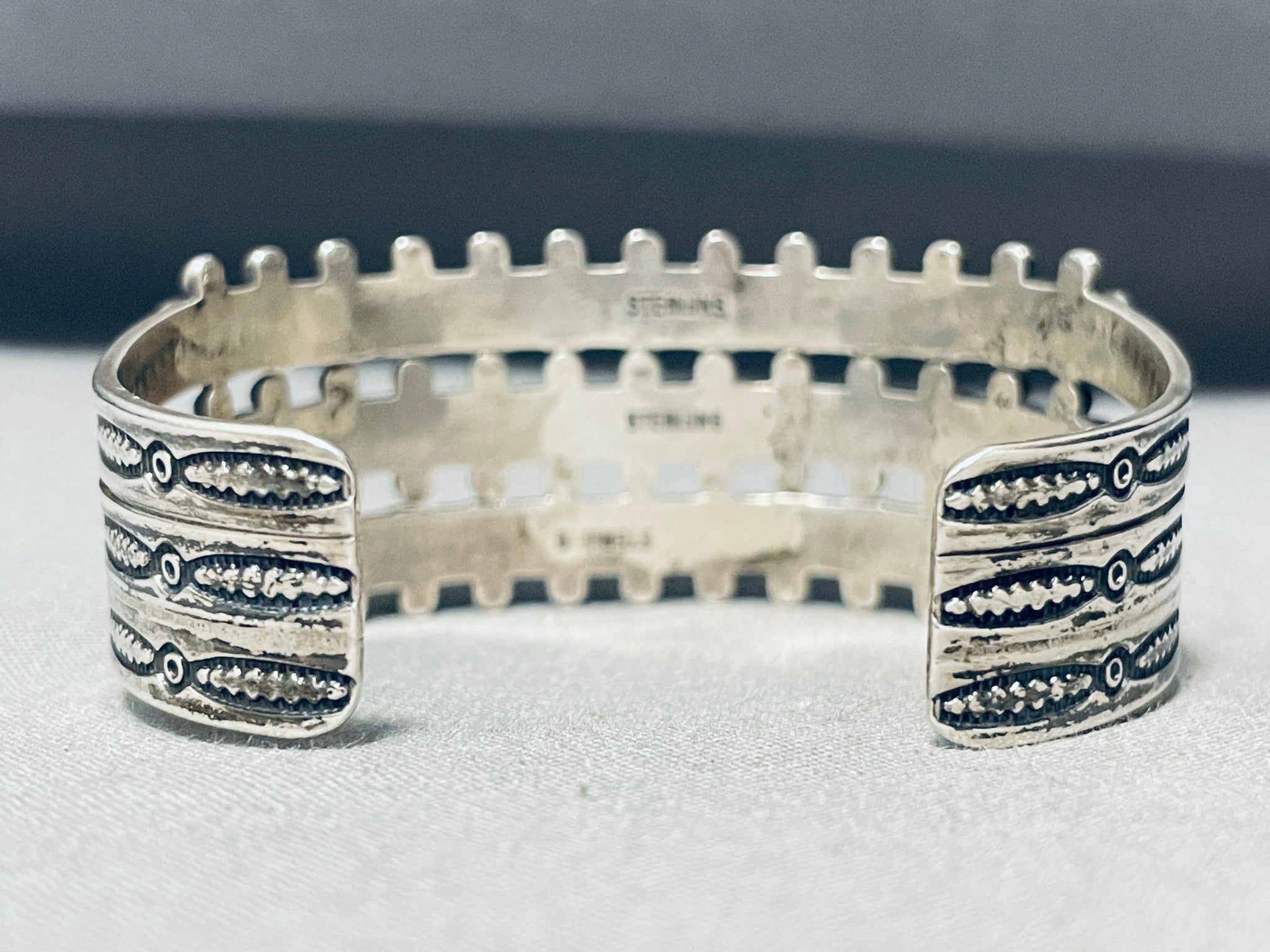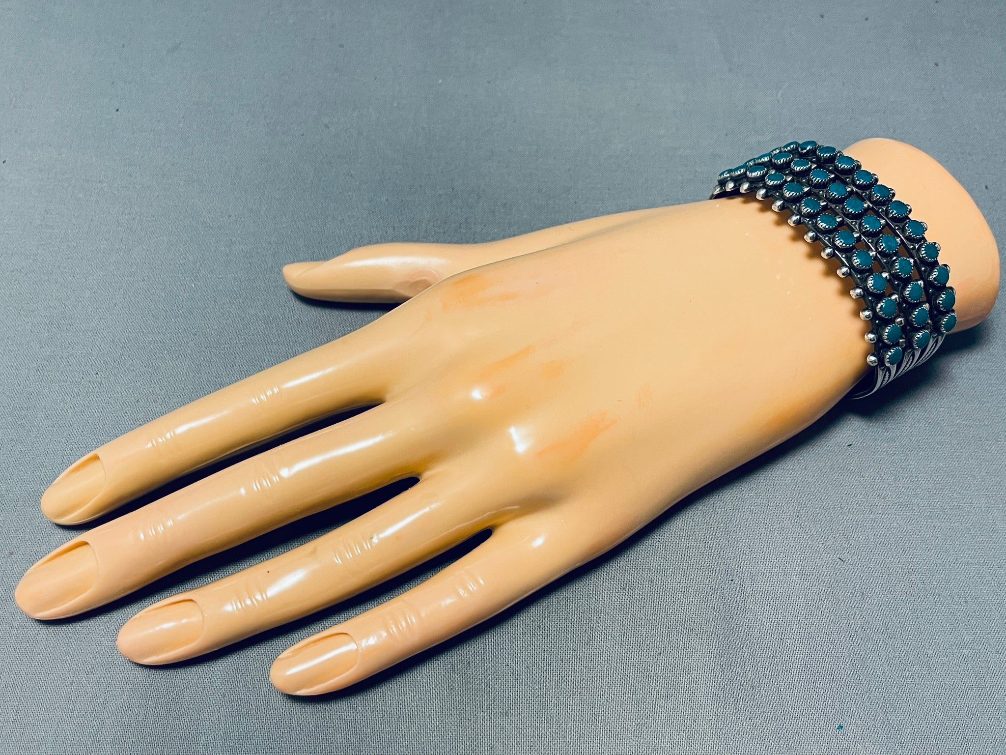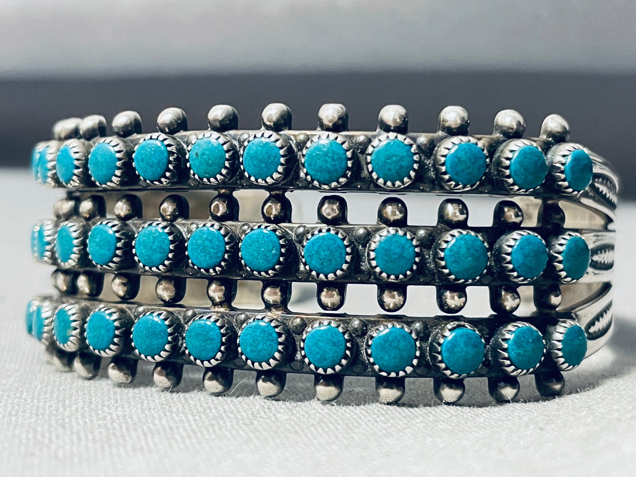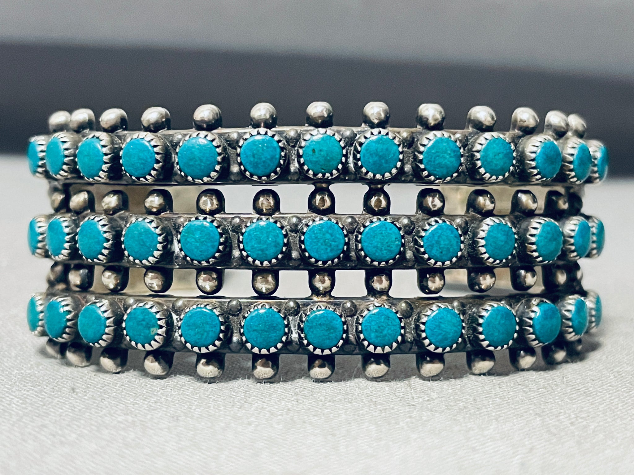 70+ Year Old Vintage Native American Zuni Turquoise Snake Eyes Sterling Silver Bracelet