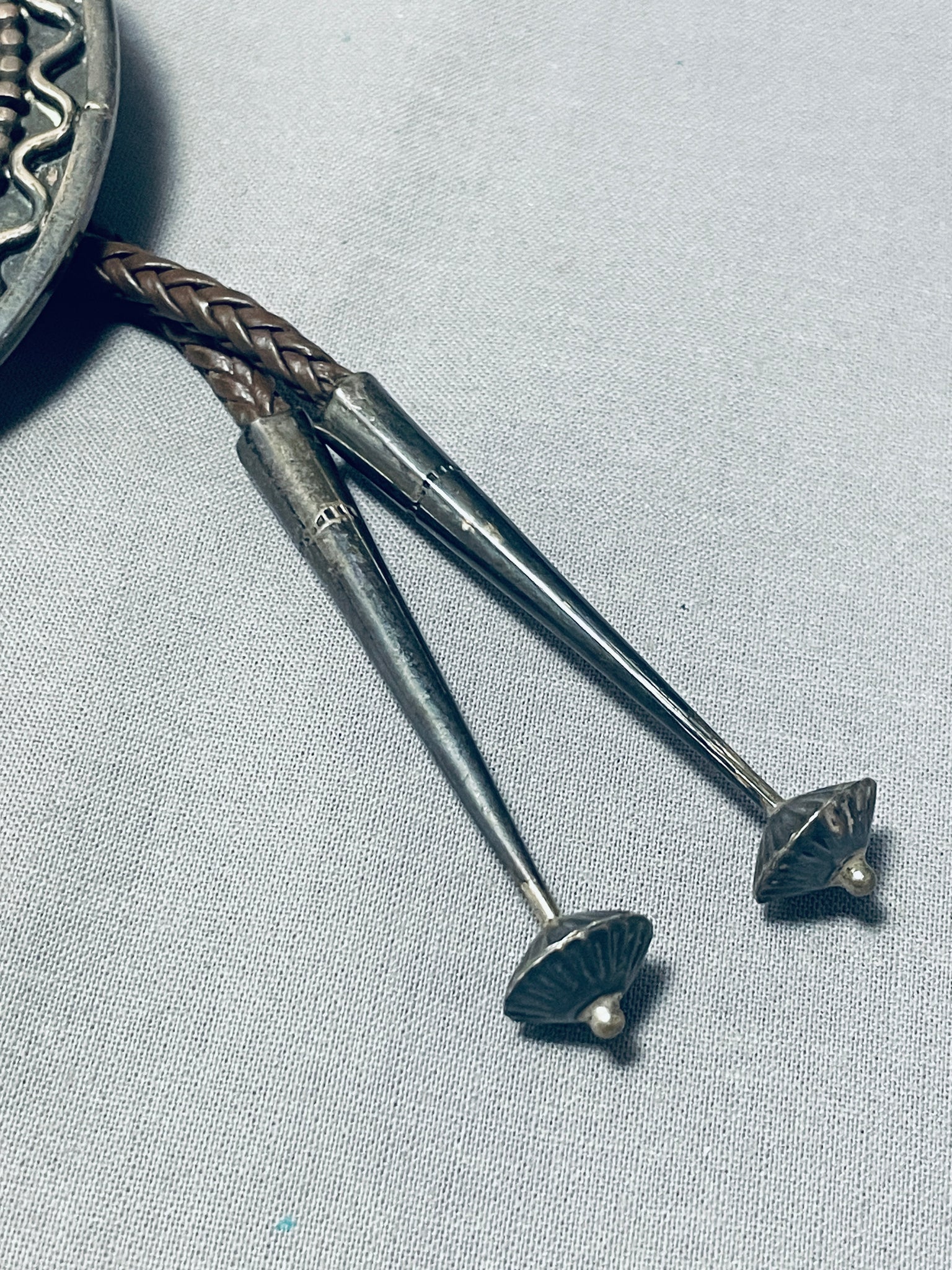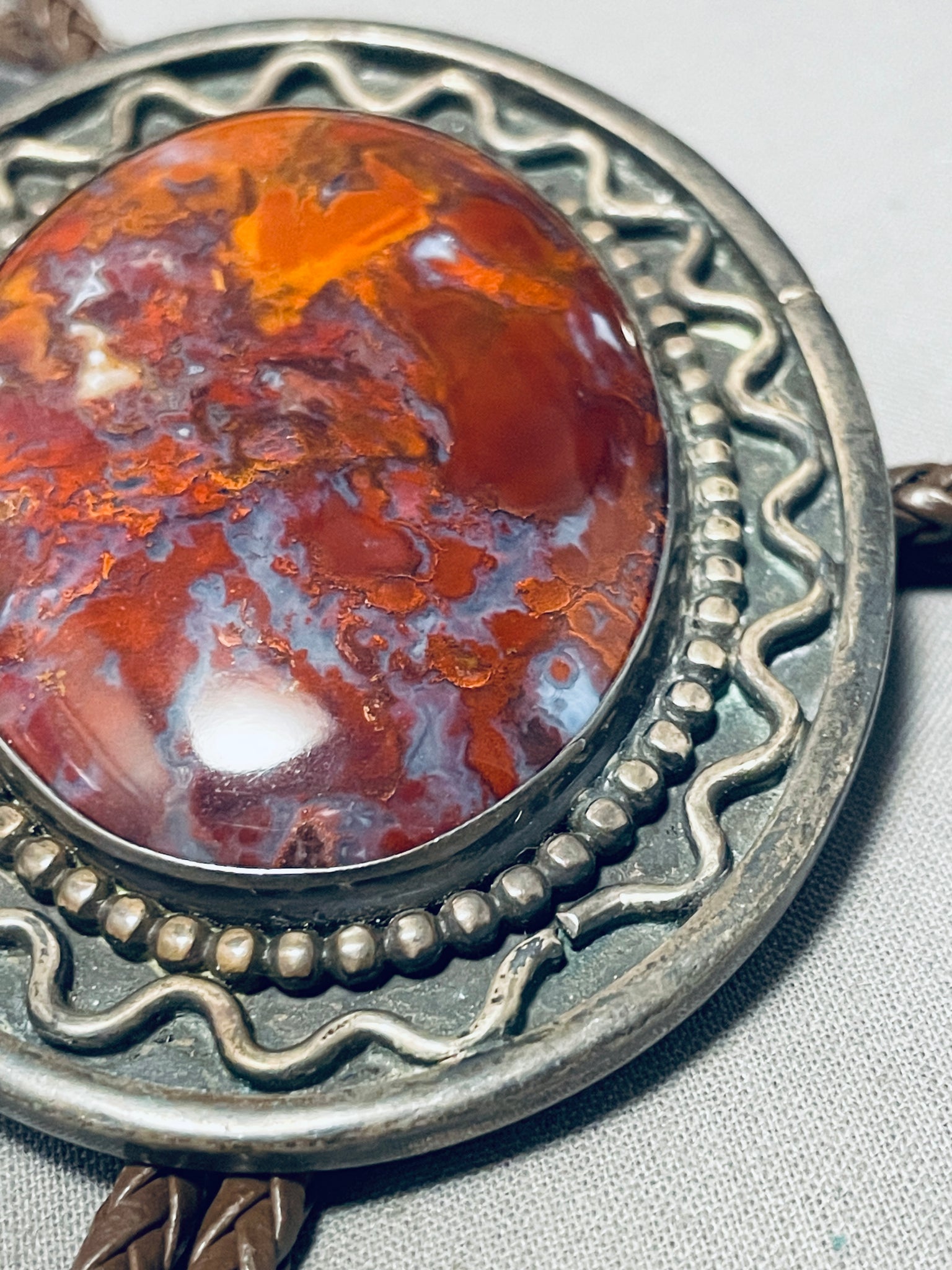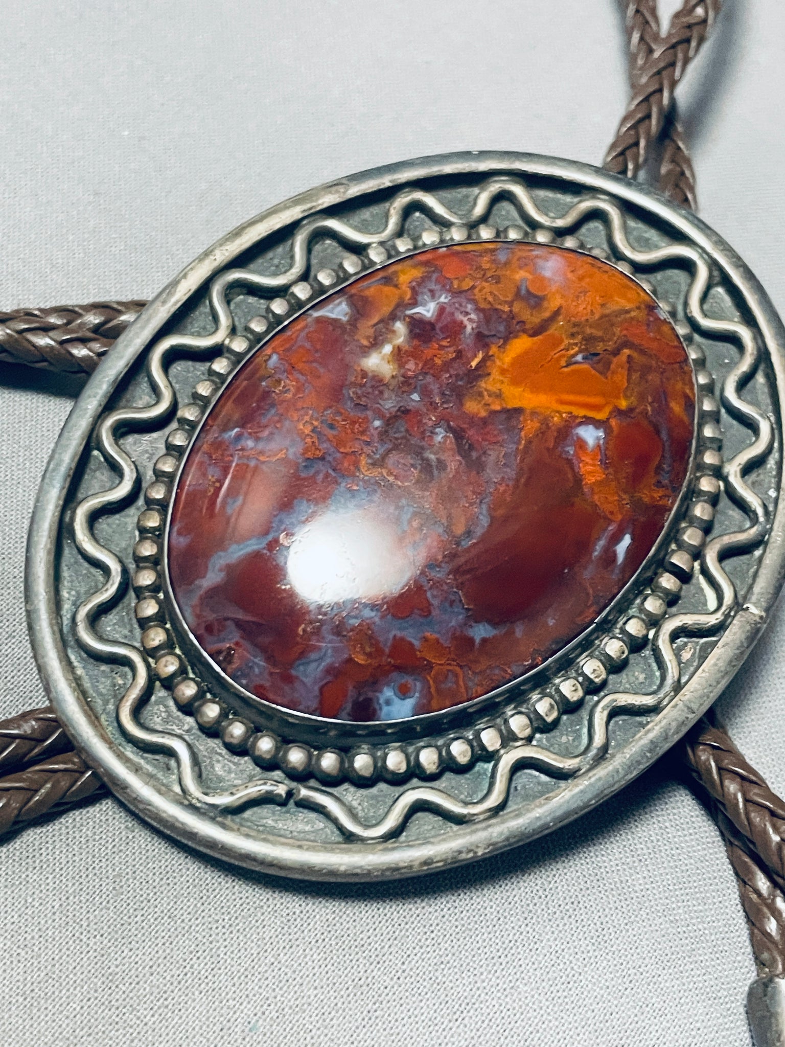 90 Gram One Of The Best Vintage Native American Navajo Agate Sterling Silver Bolo Tie