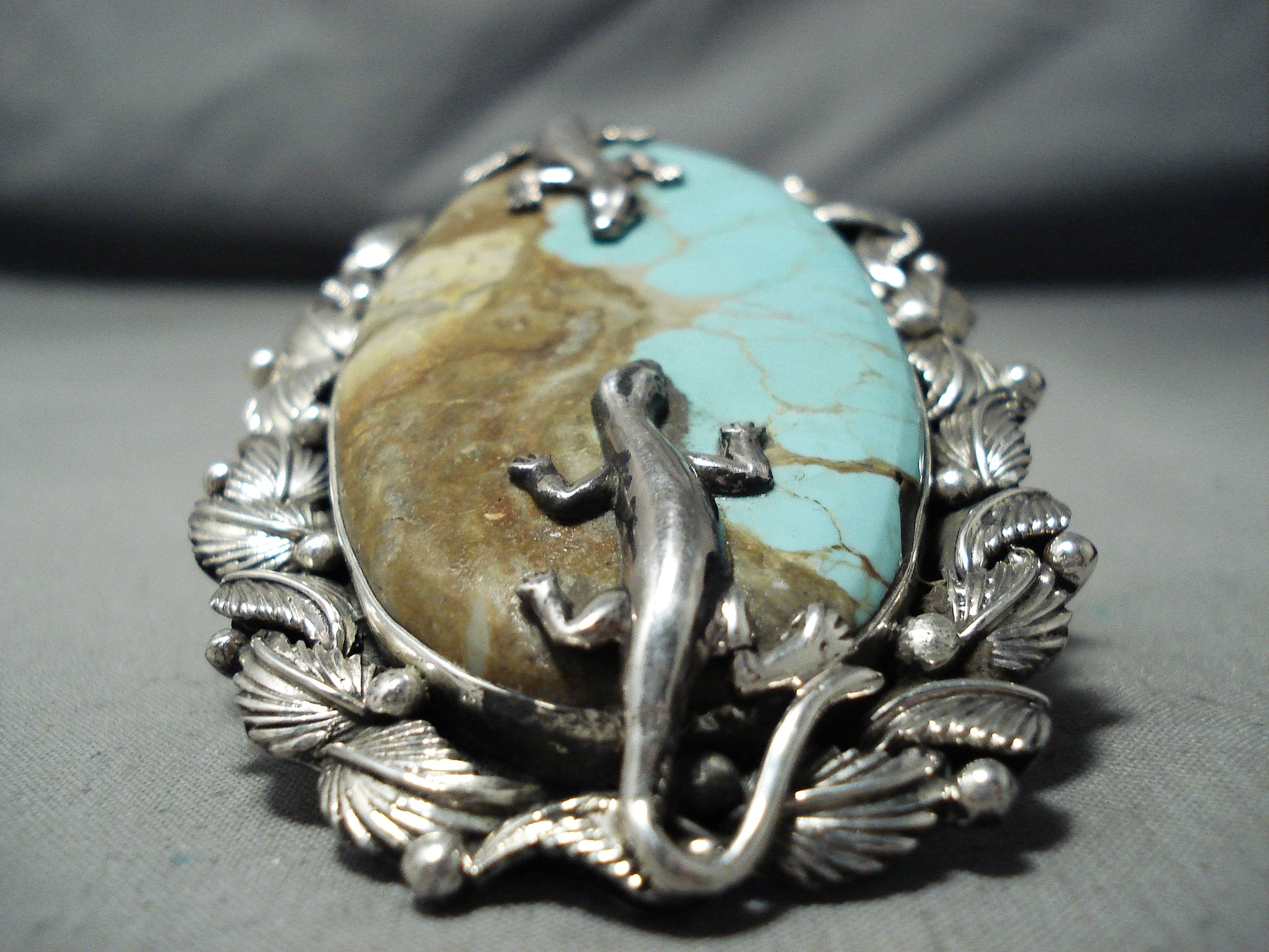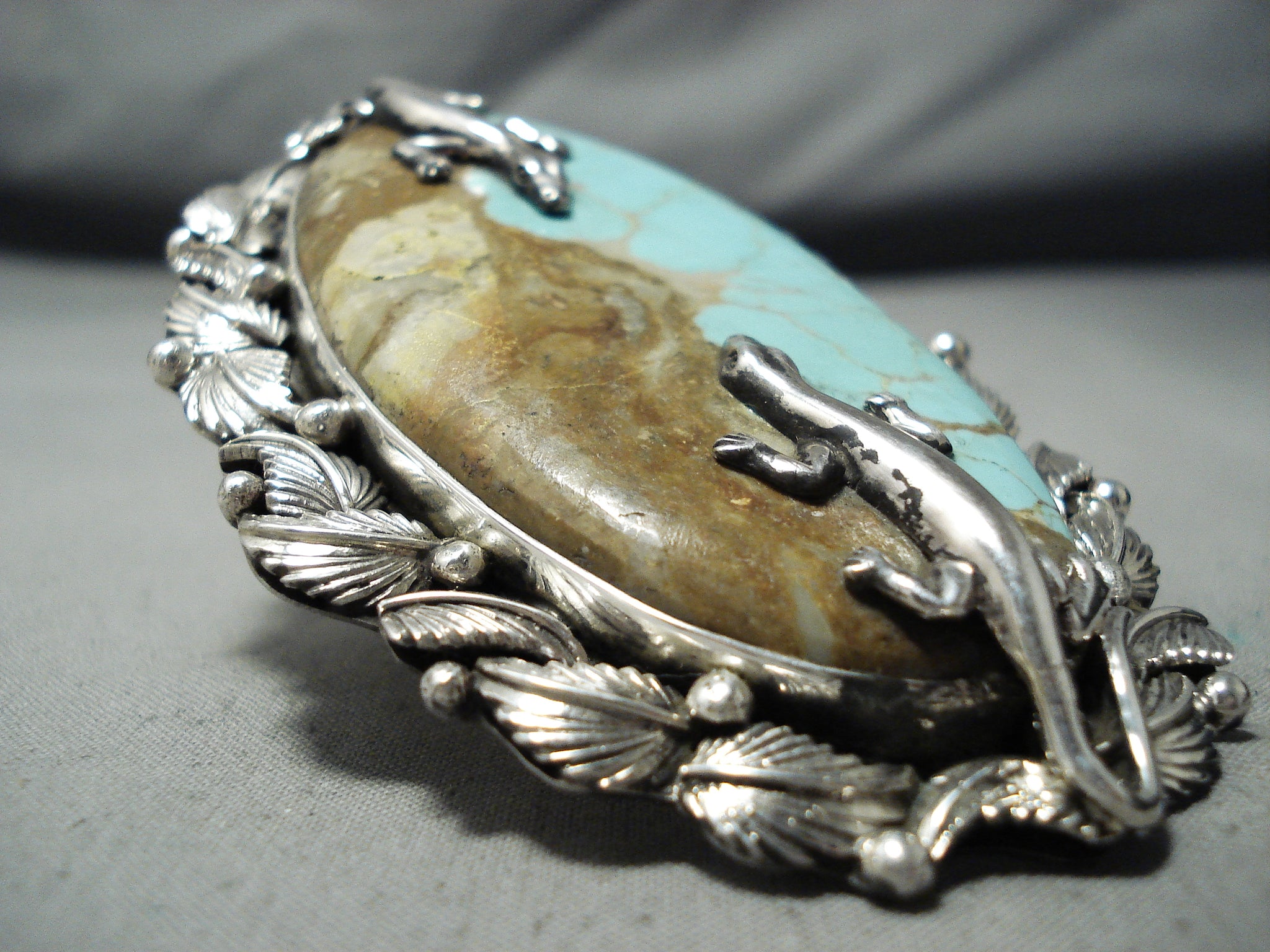 91 Gram San Felipe #8 Turquoise Sterling Silver Heavy Lizard Ring