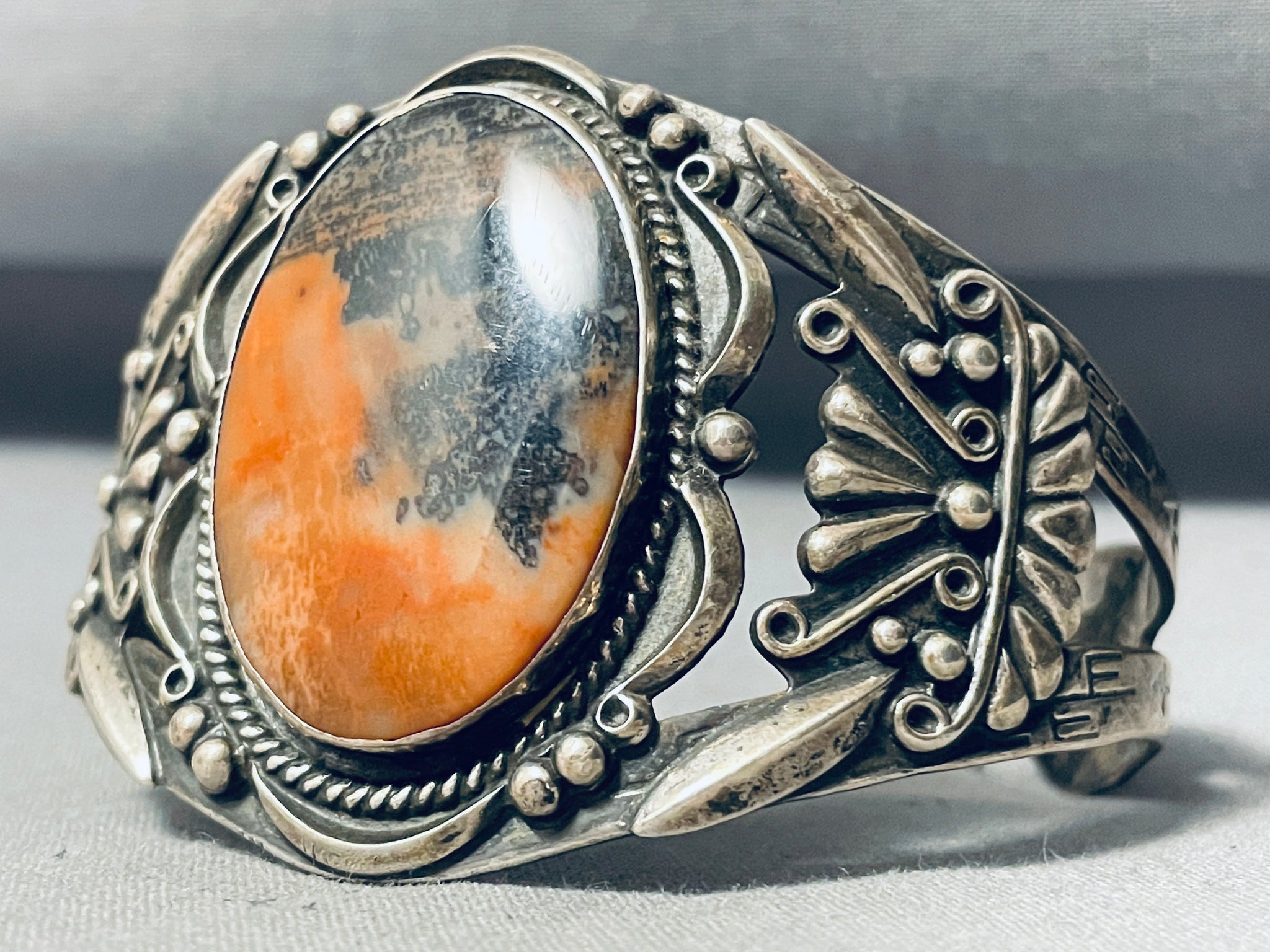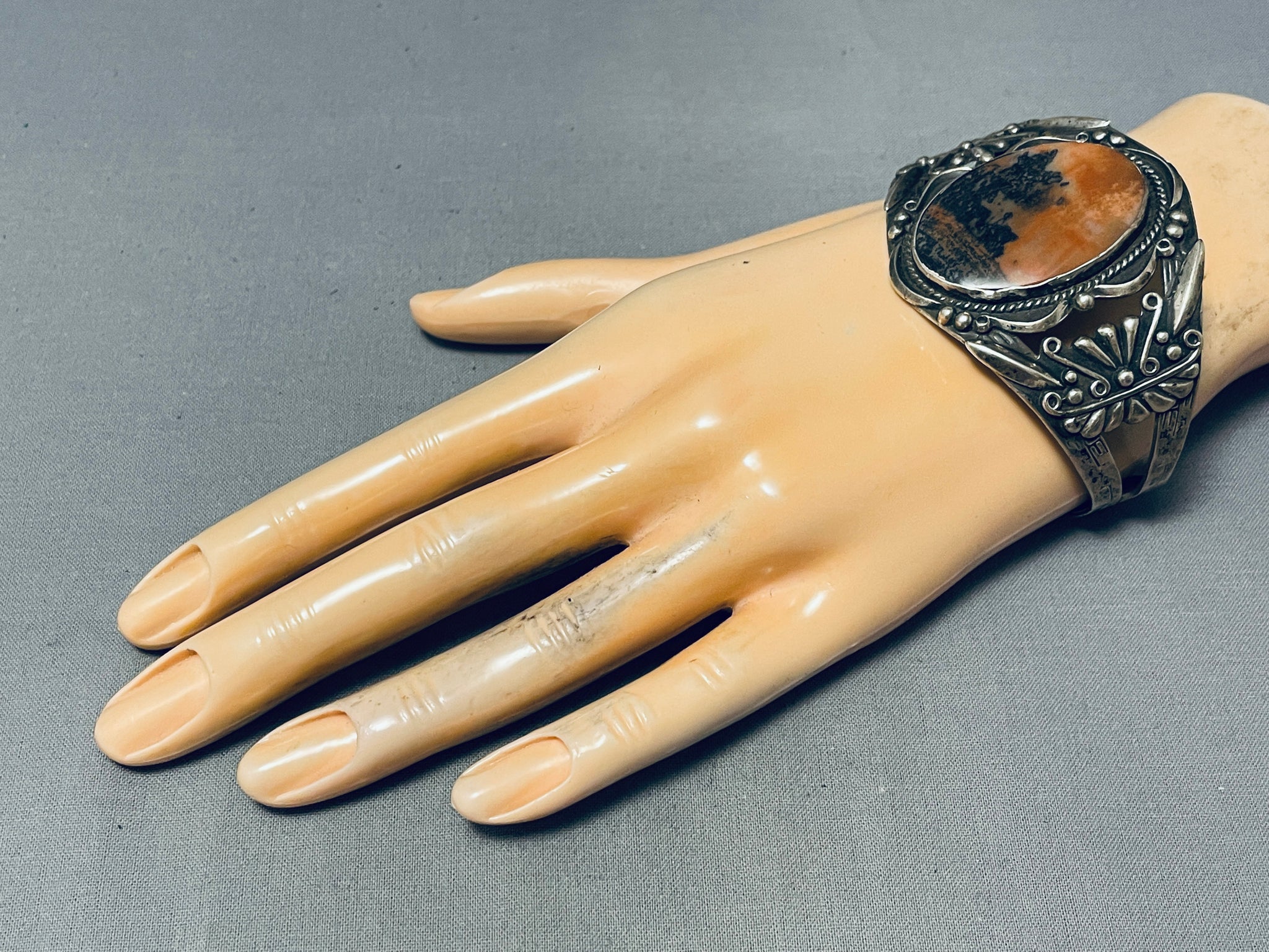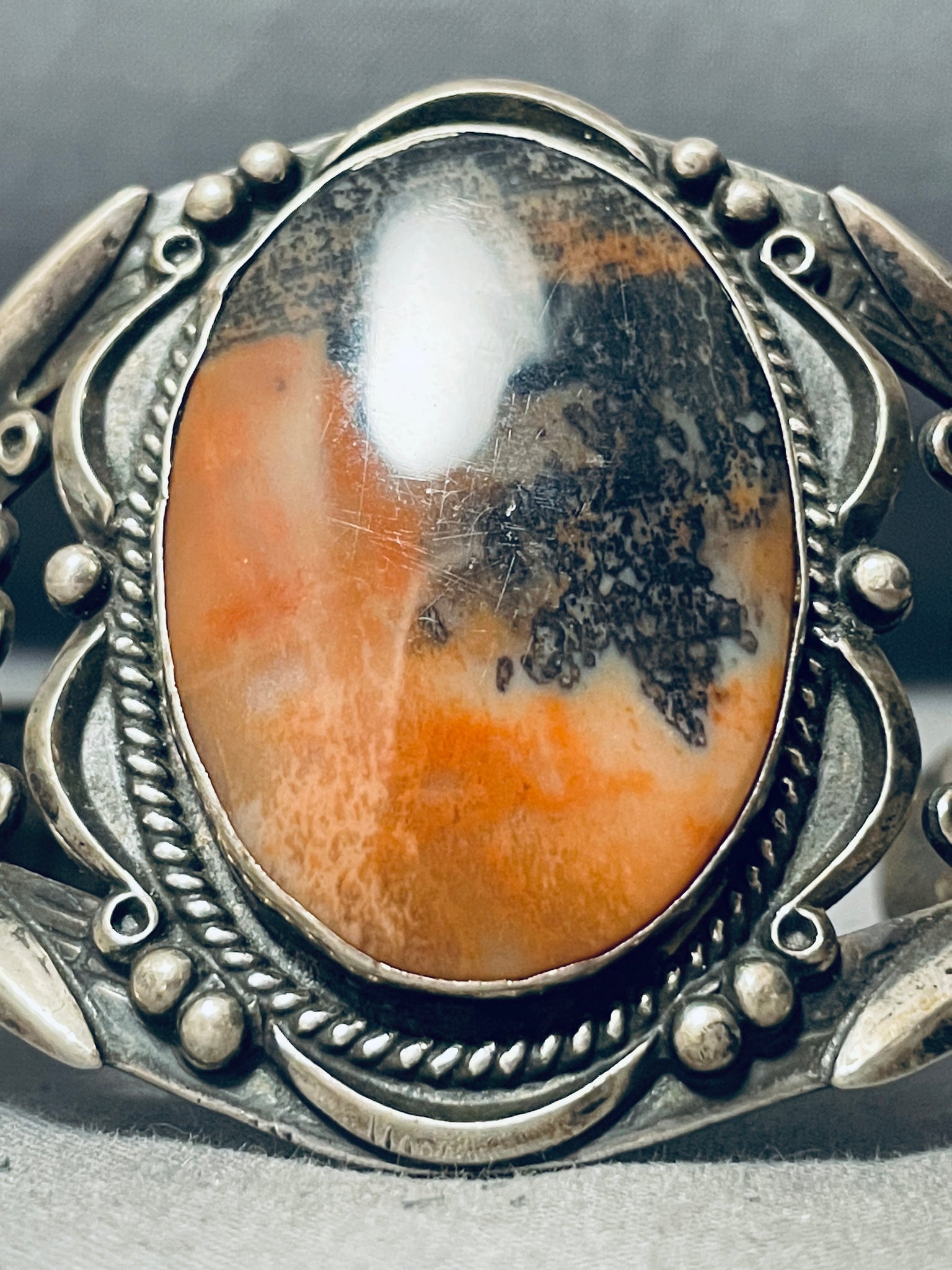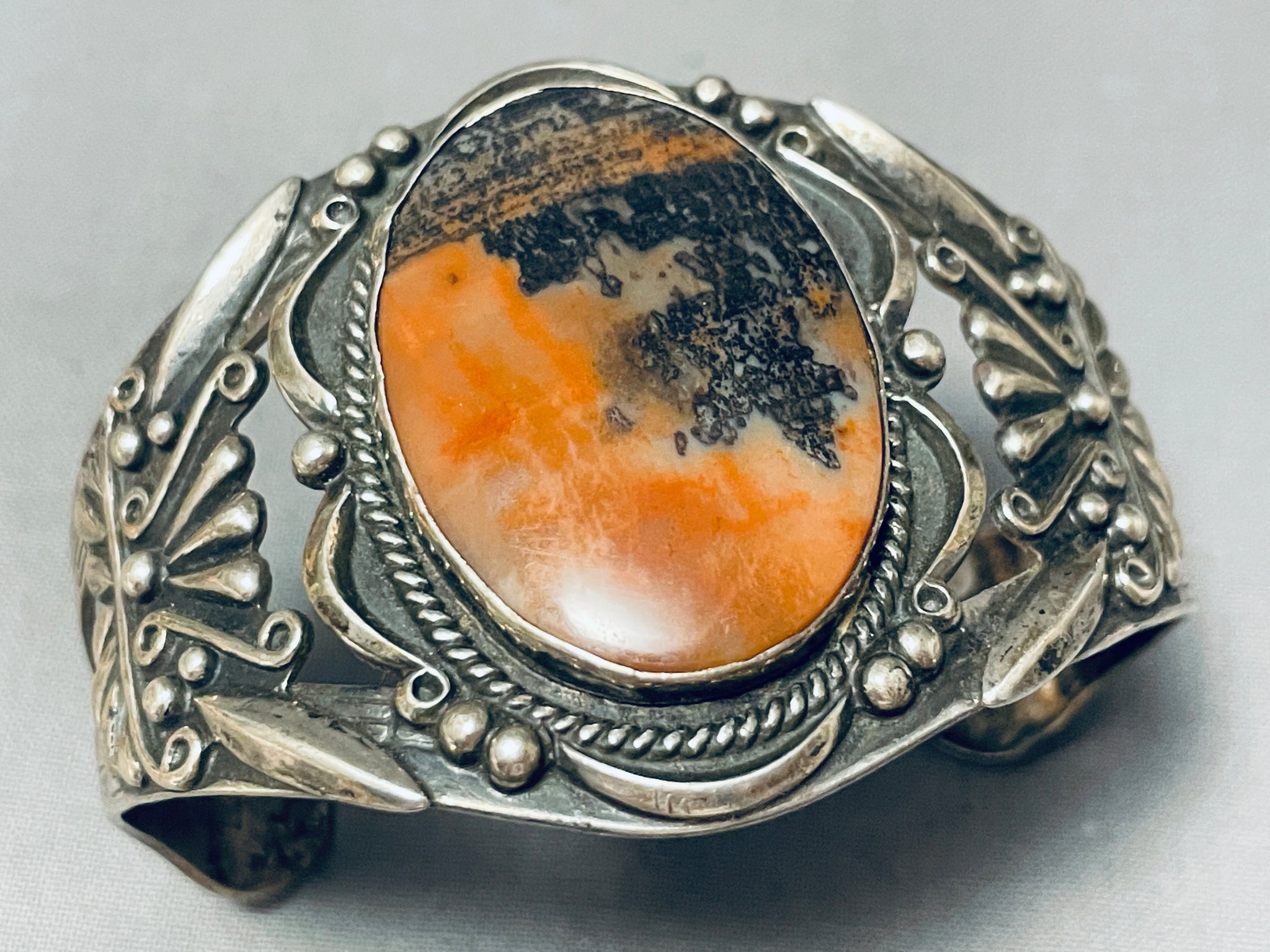Absolutely Incredible Vintage Native American Navajo Petrified Wood Sterling Silver Bracelet