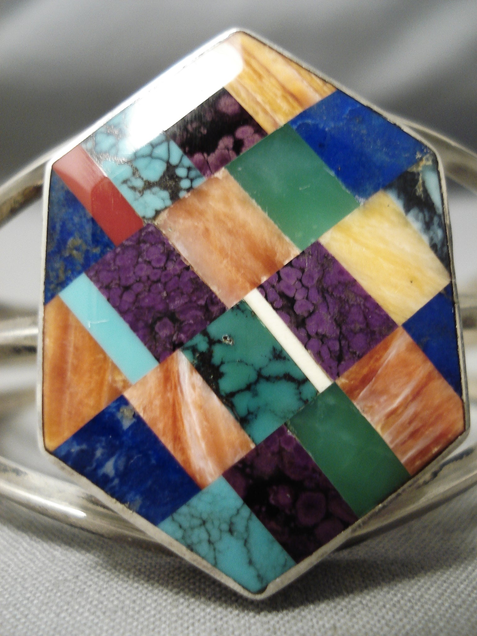 Absolutely Incredible Vintage Native American Navajo Turquoise Inlay Sterling Silver Bracelet