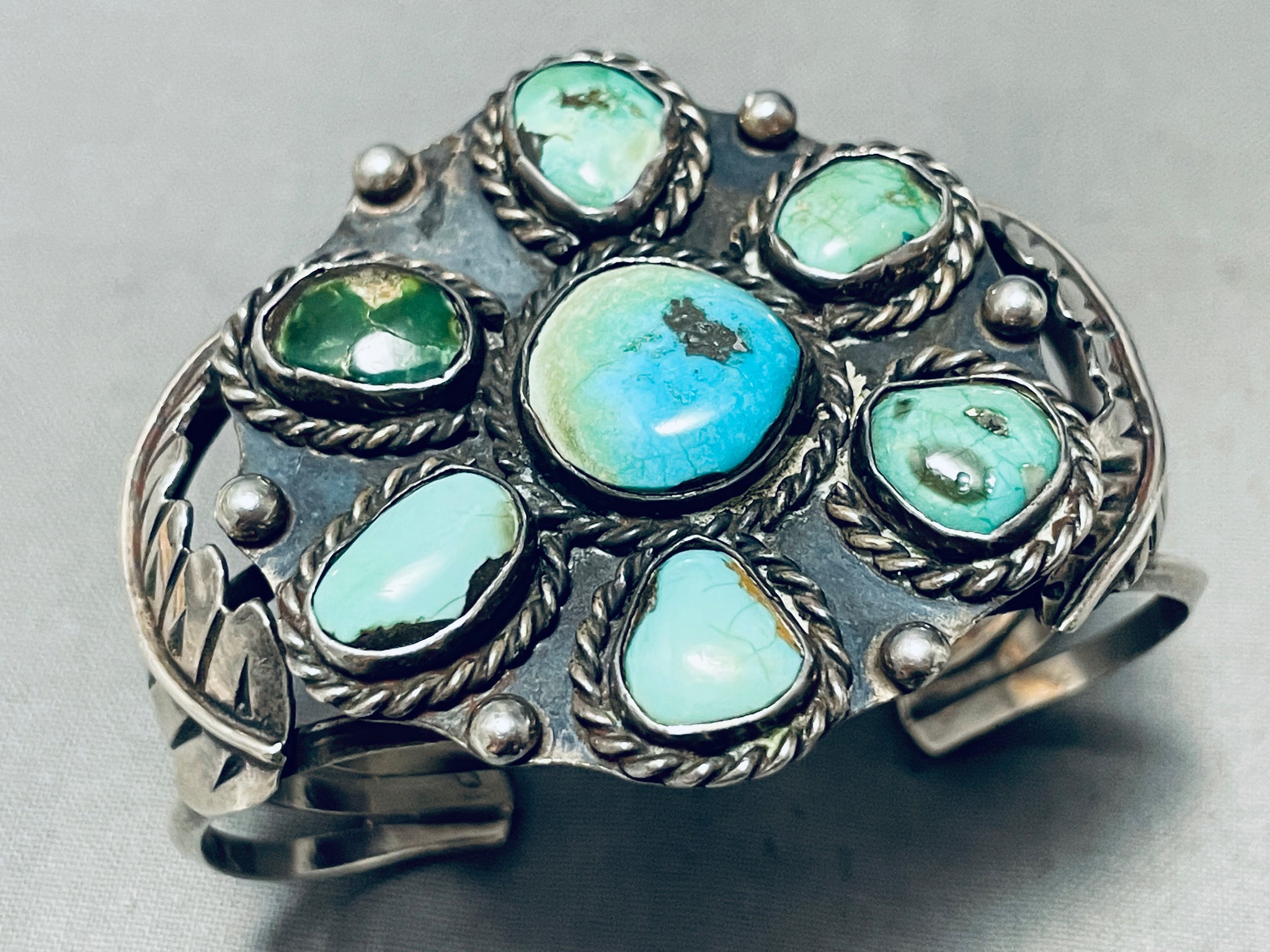 Absolutely Incredible Vintage Native American Navajo Turquoise Leaf Sterling Silver Bracelet