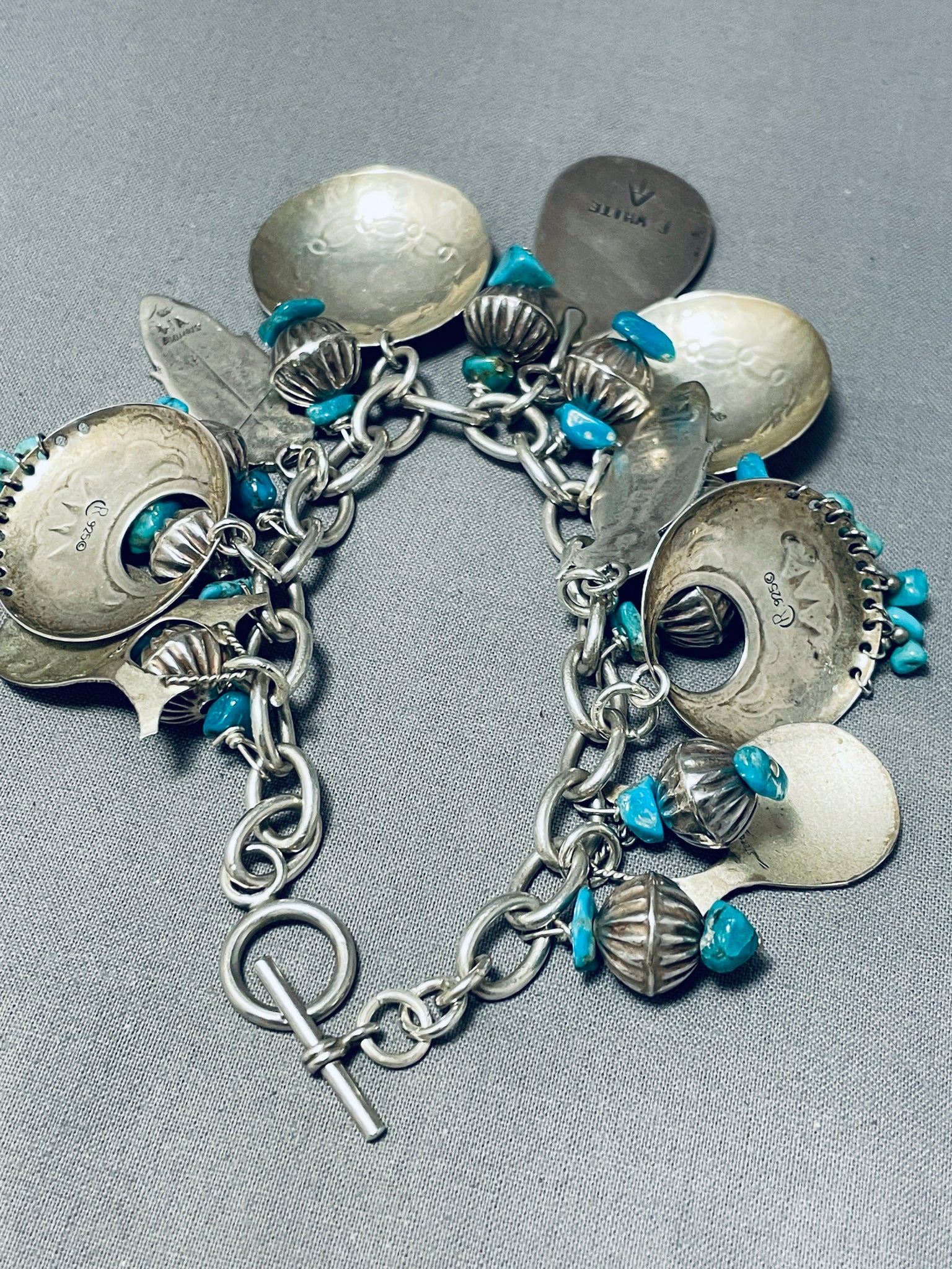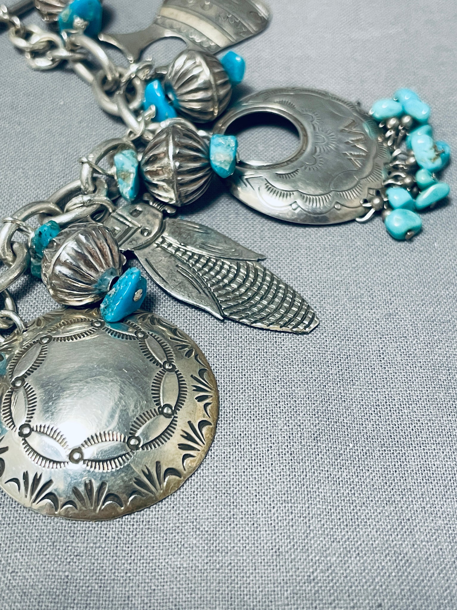 Absolutely Incredible Vintage Native American Navajo Turquoise Sterling Silver Charm Bracelet