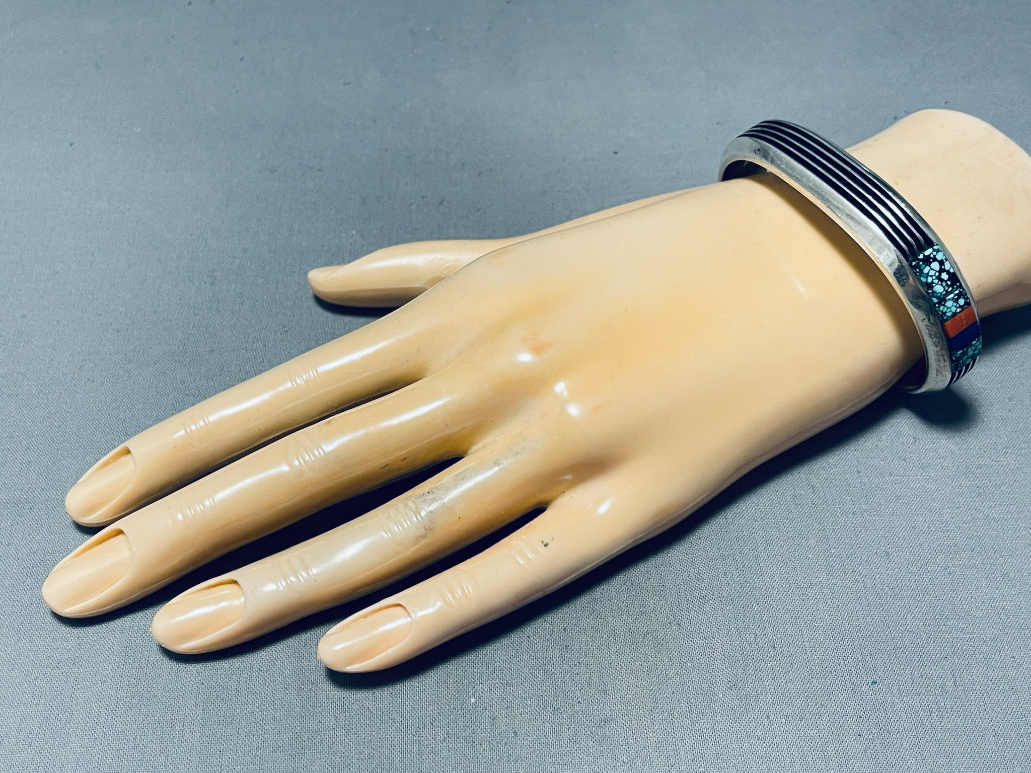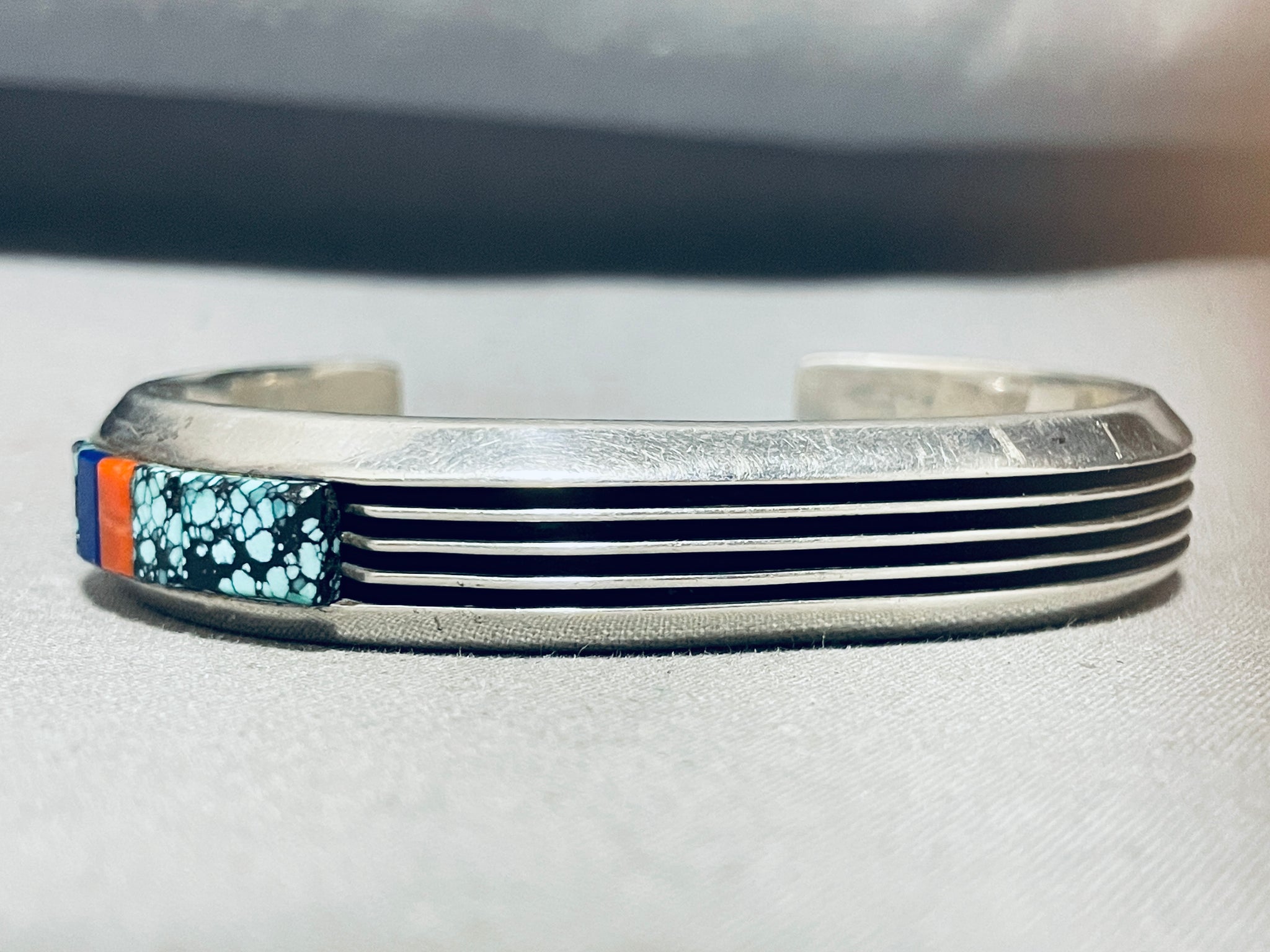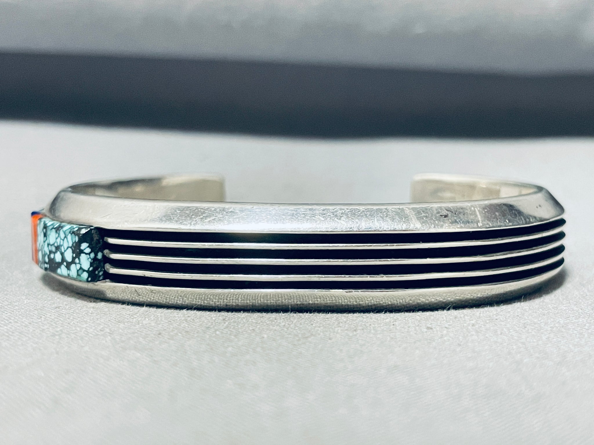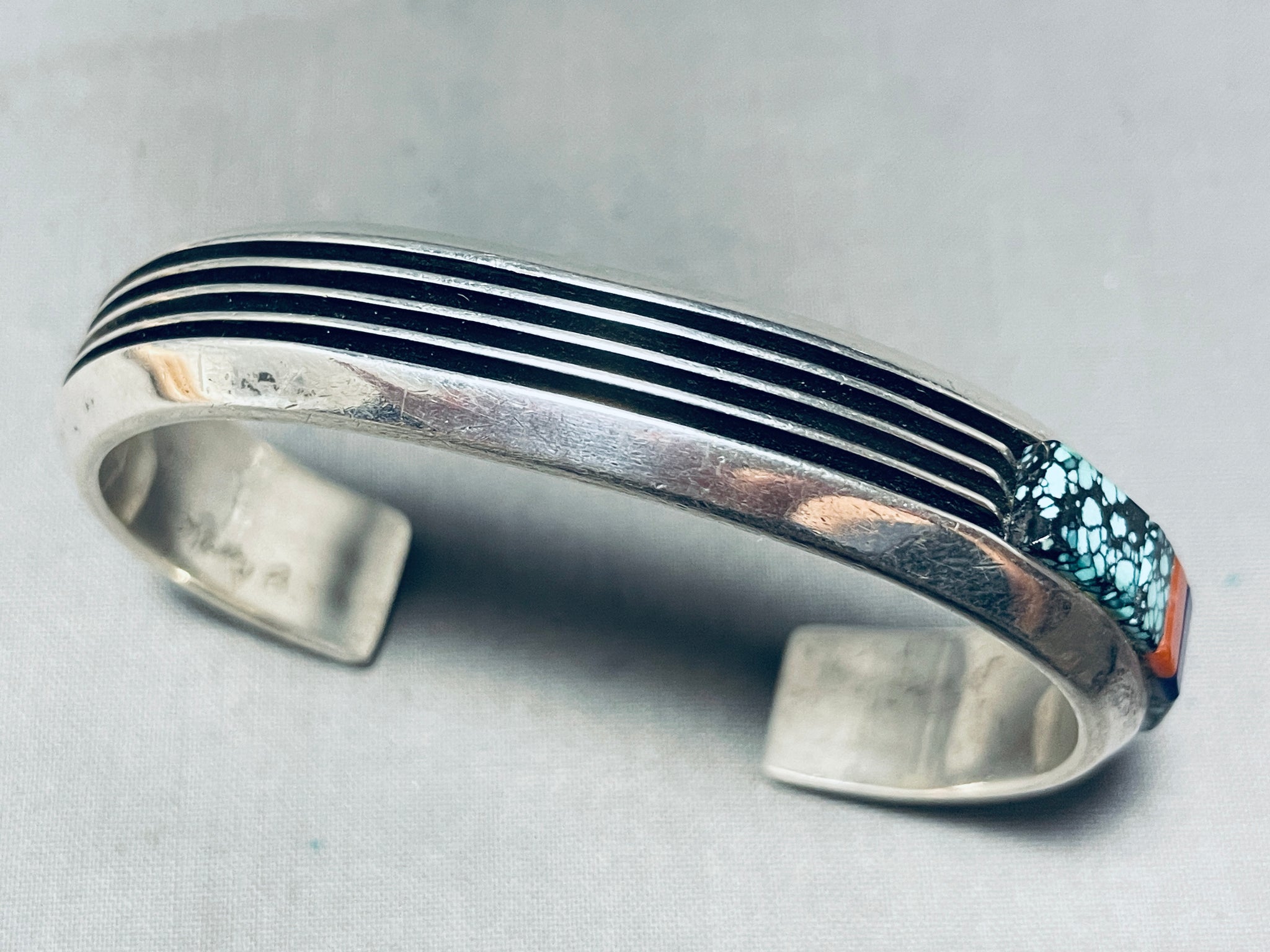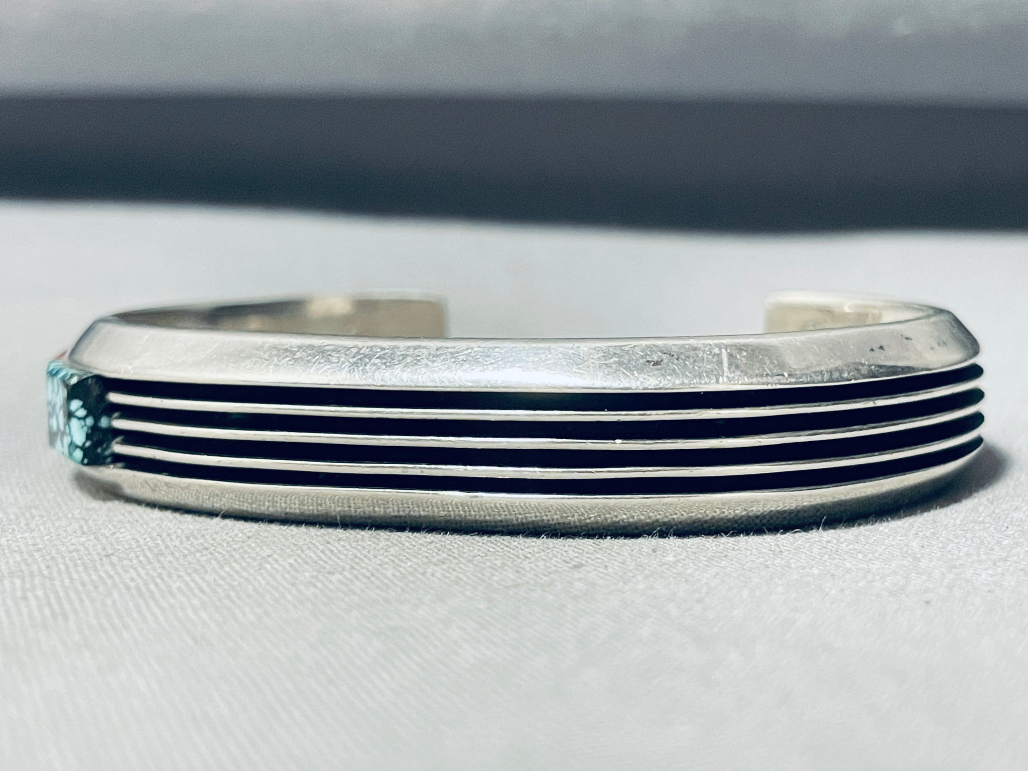 Abstract Vintage Native American Navajo Spiderweb Turquoise Sterling Silver Bracelet