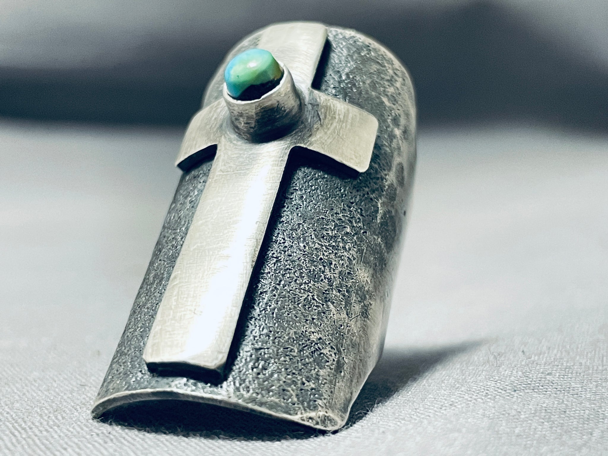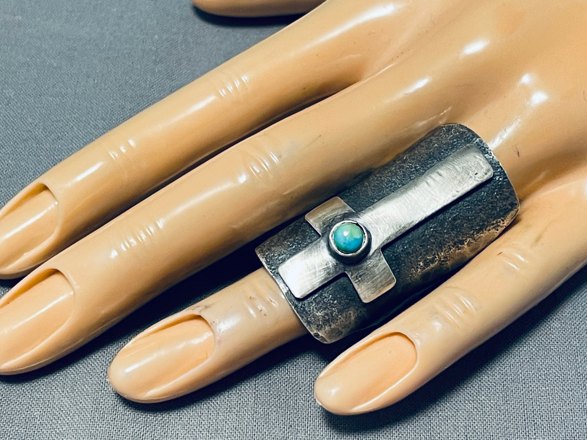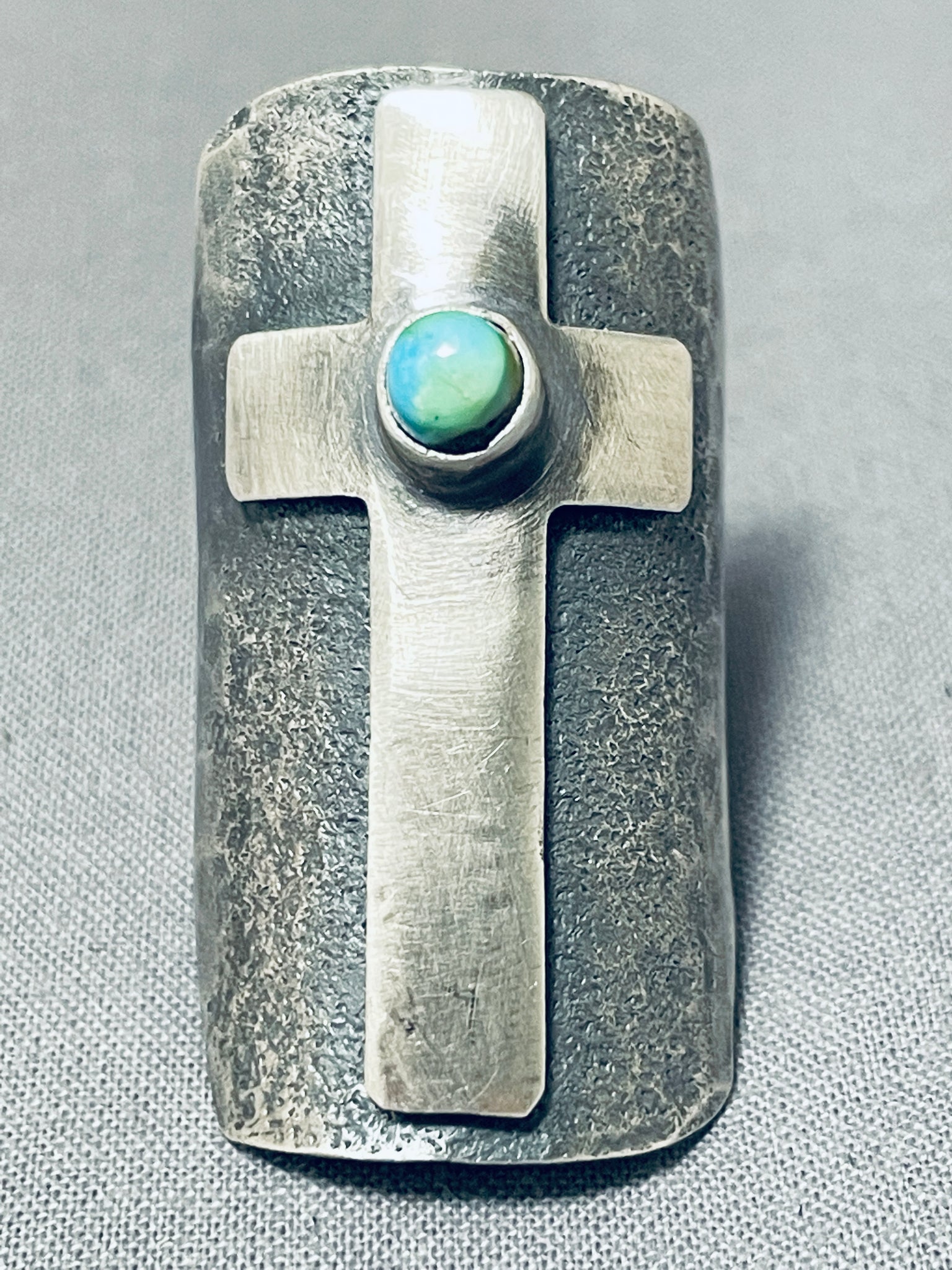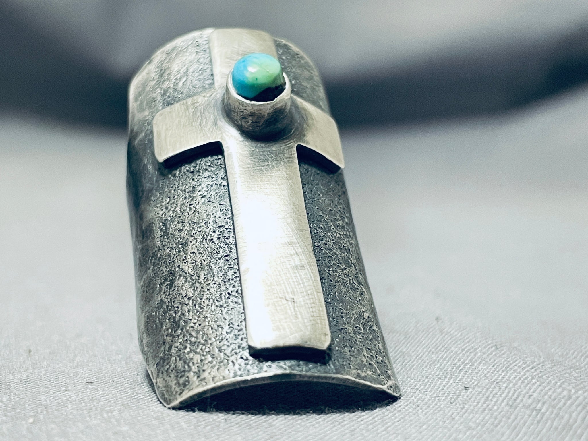 Advanced Silver Work Native American Navajo Royston Turquois Cross Sterling Silver Ring