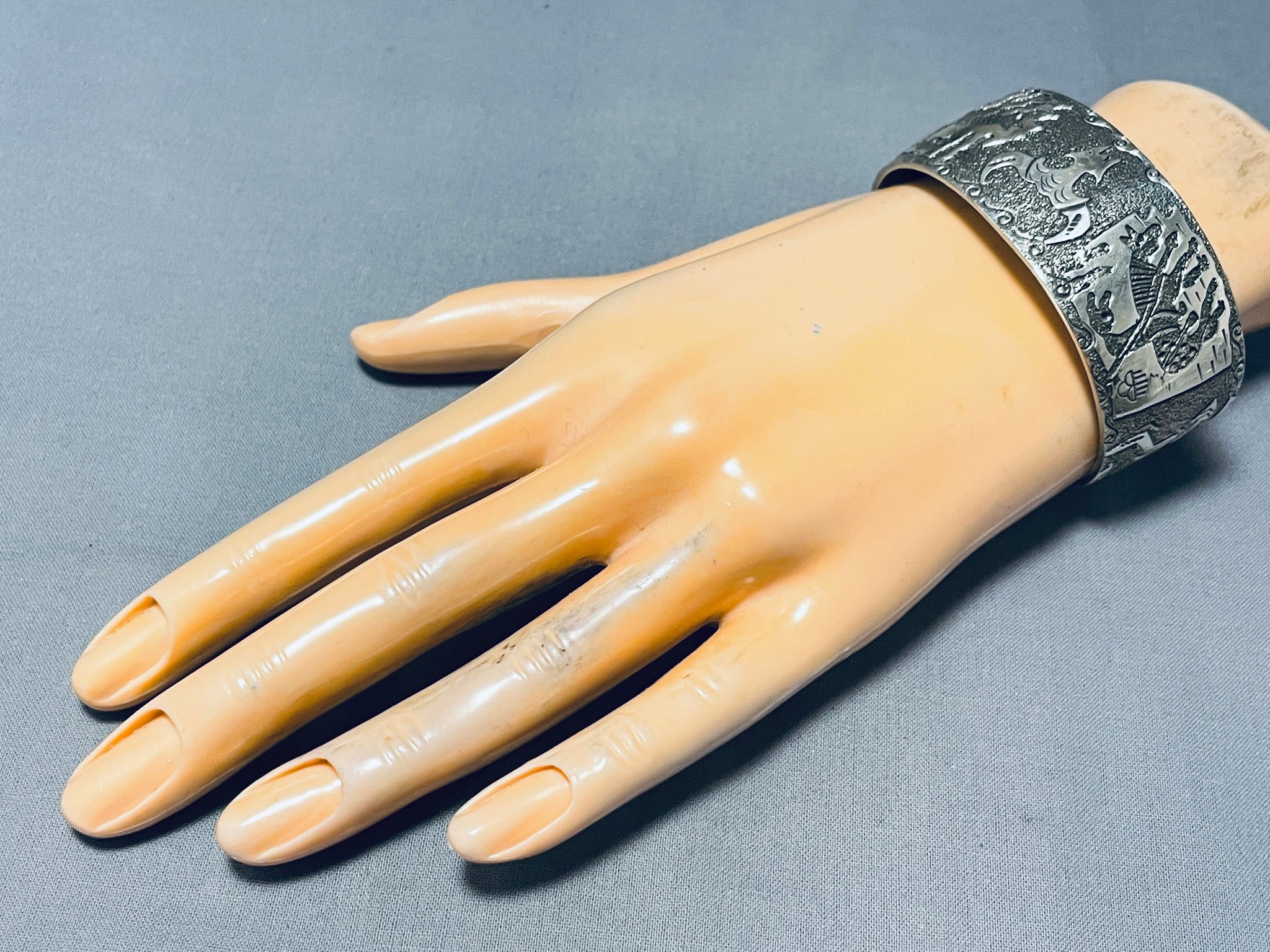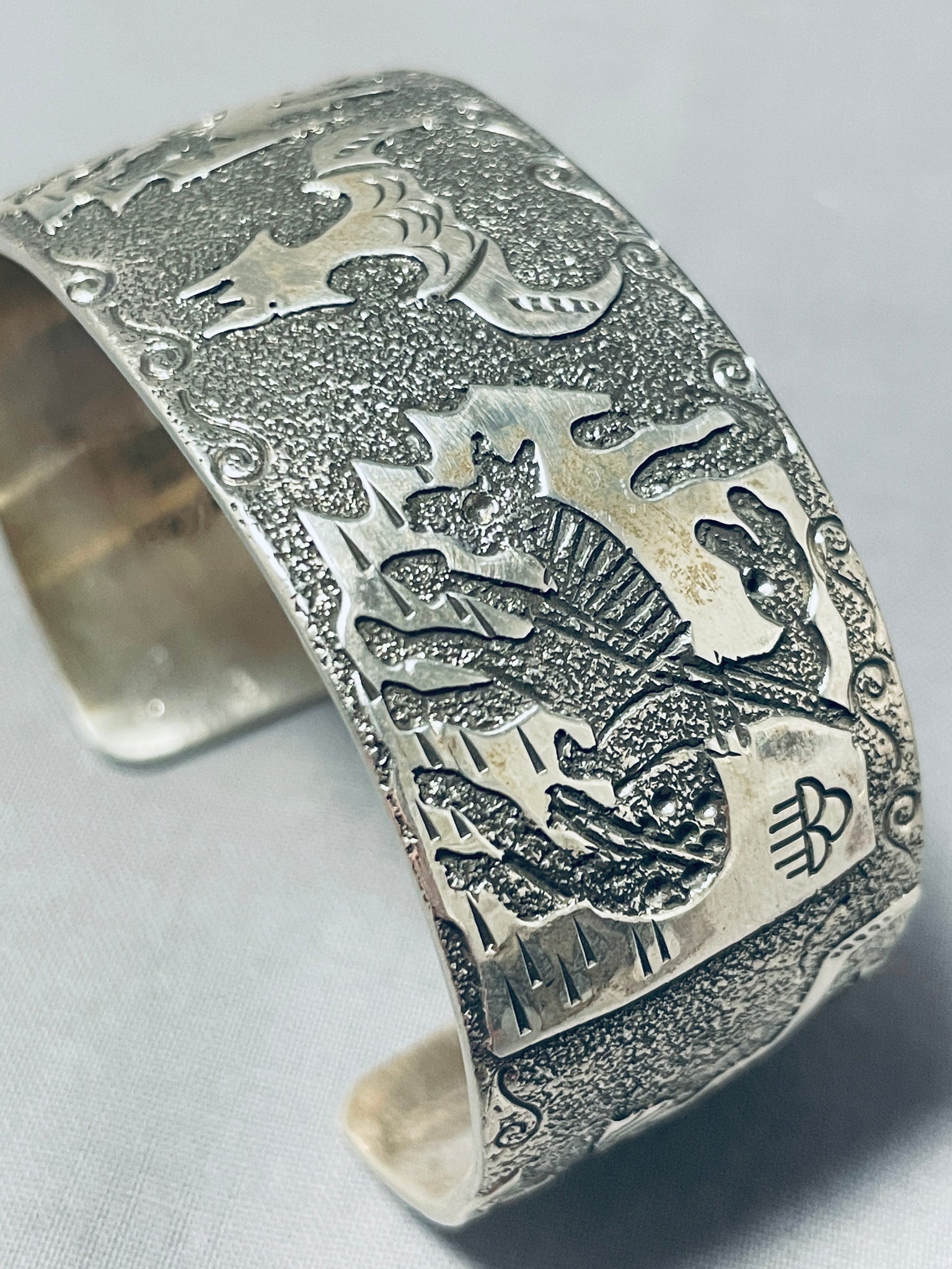 Advanced Silver Work Native American Navajo Sterling Bracelet Cuff
