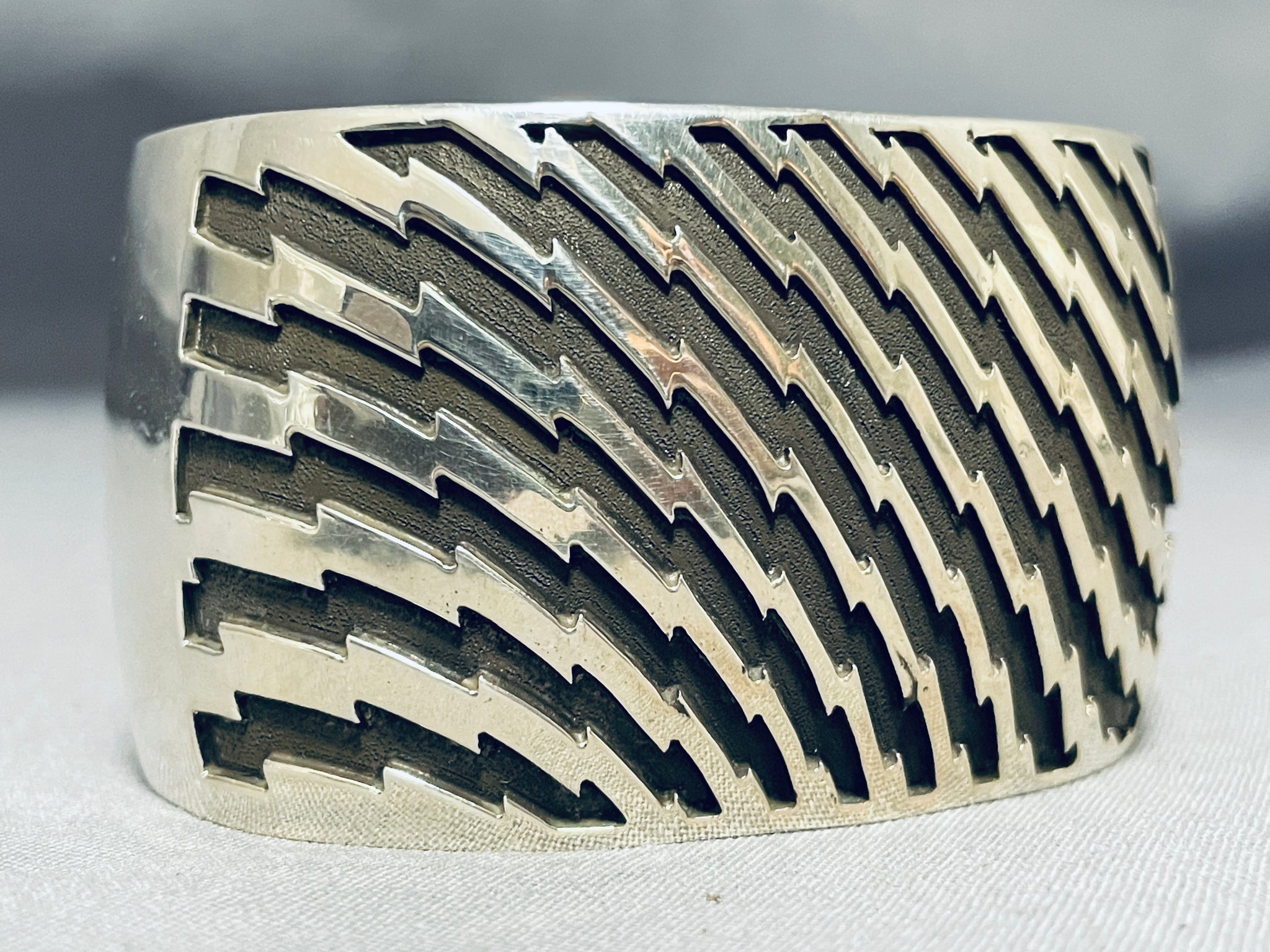 Advanced Silver Work!! Quality Native American Navajo Sterling Silver Wide Bracelet