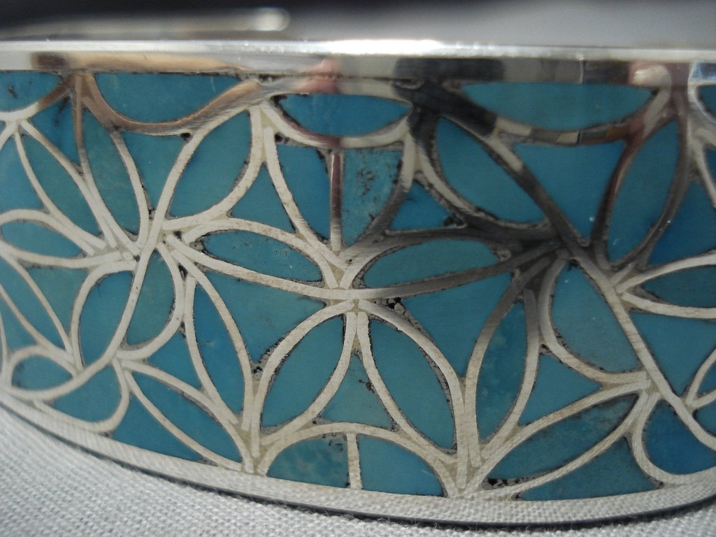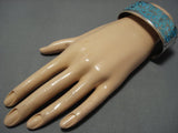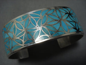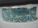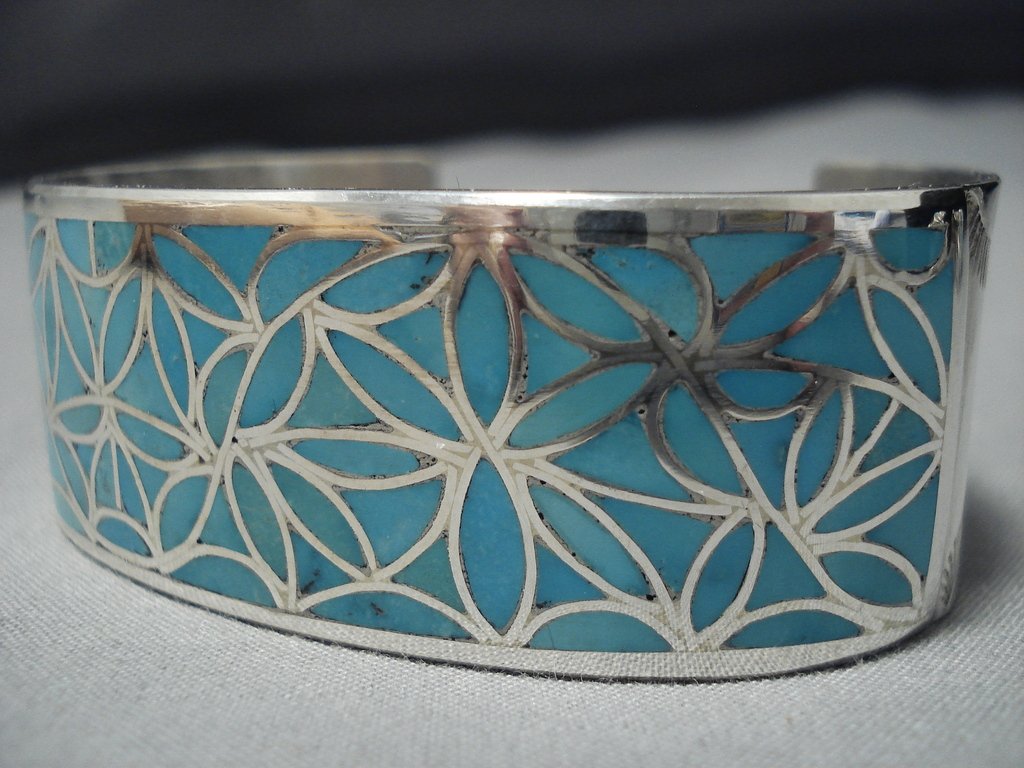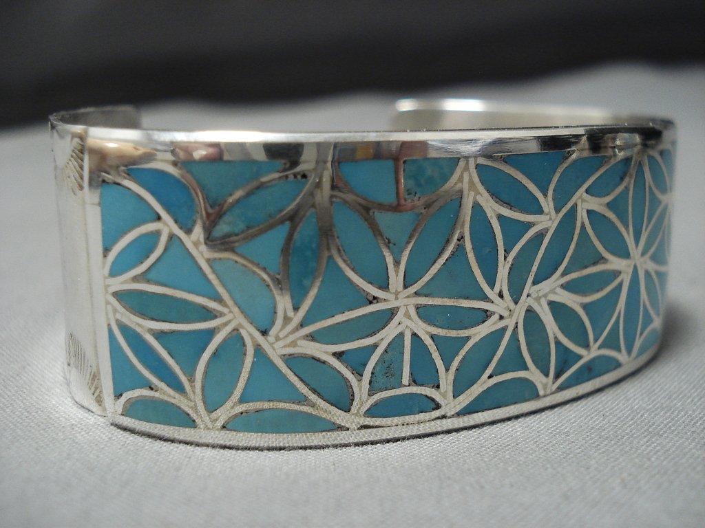 Advanced Skill Turquoise Inlay Native American Jewelry Zuni Sterling Silver Bracelet
