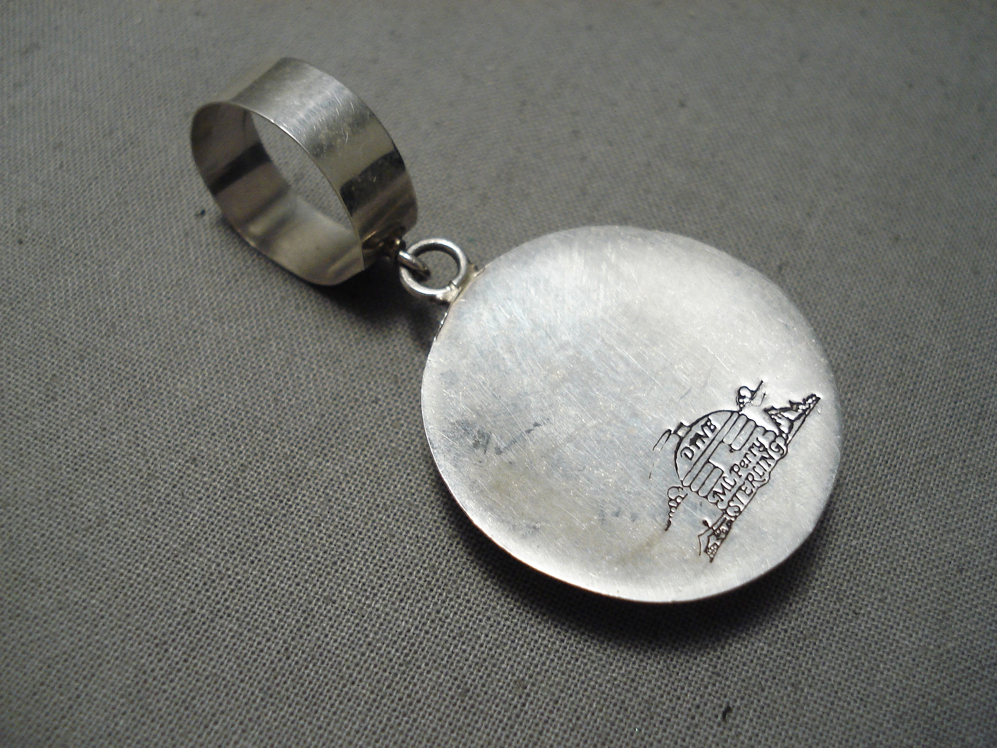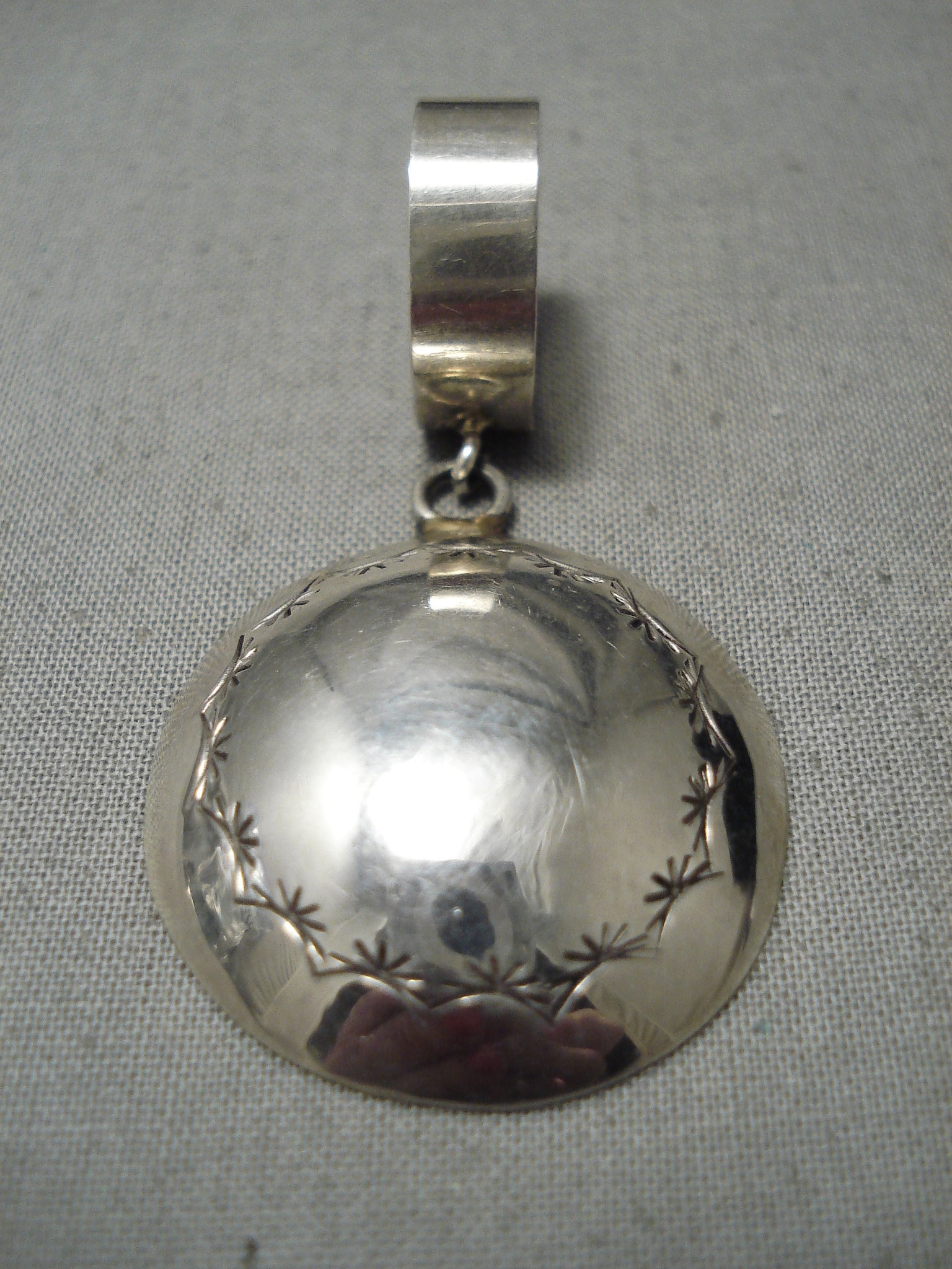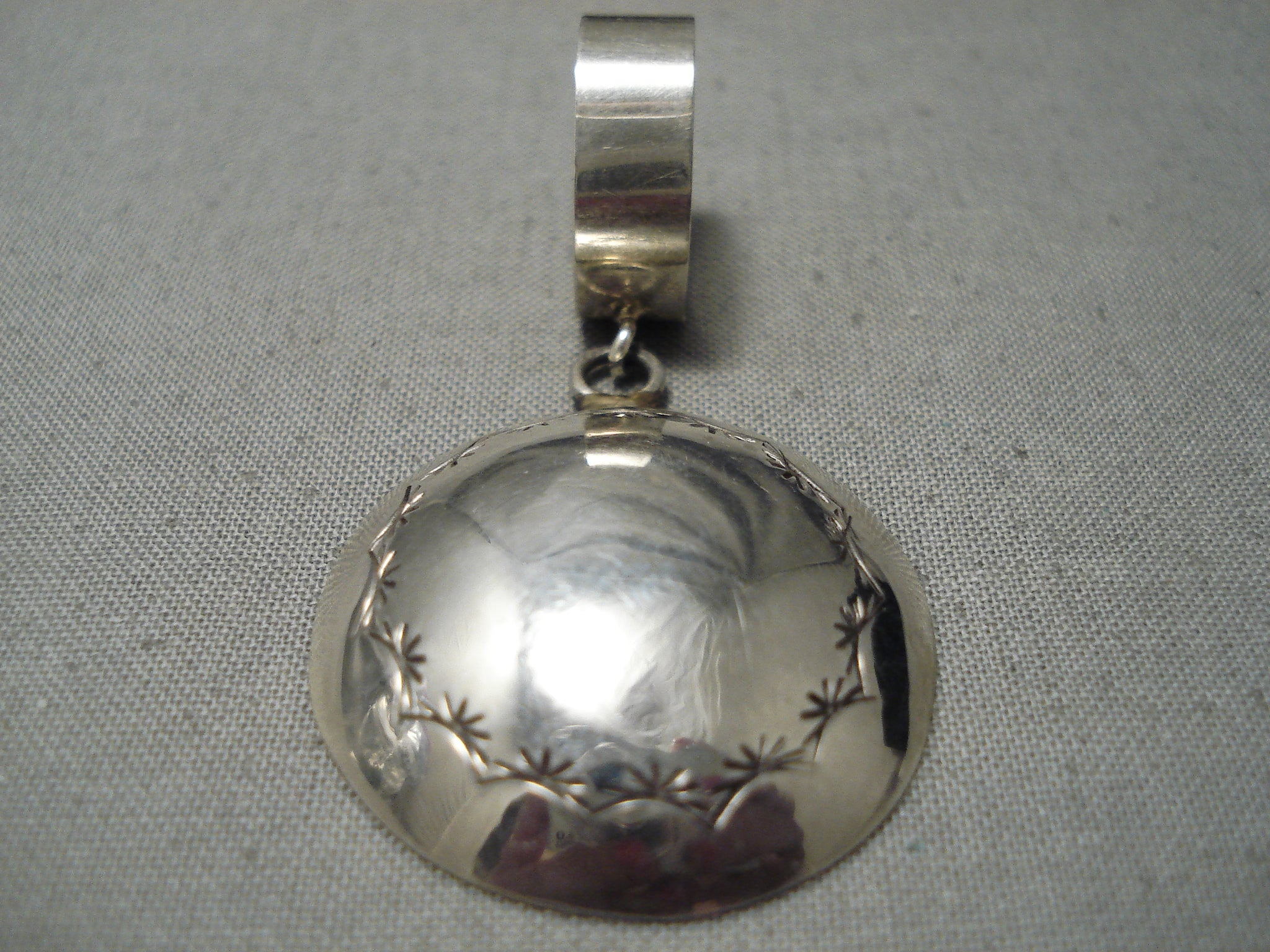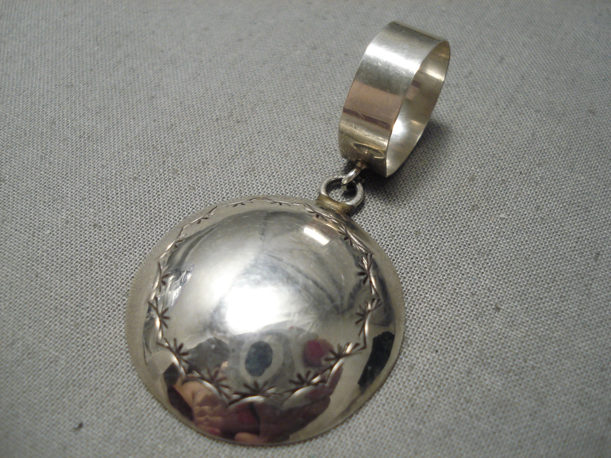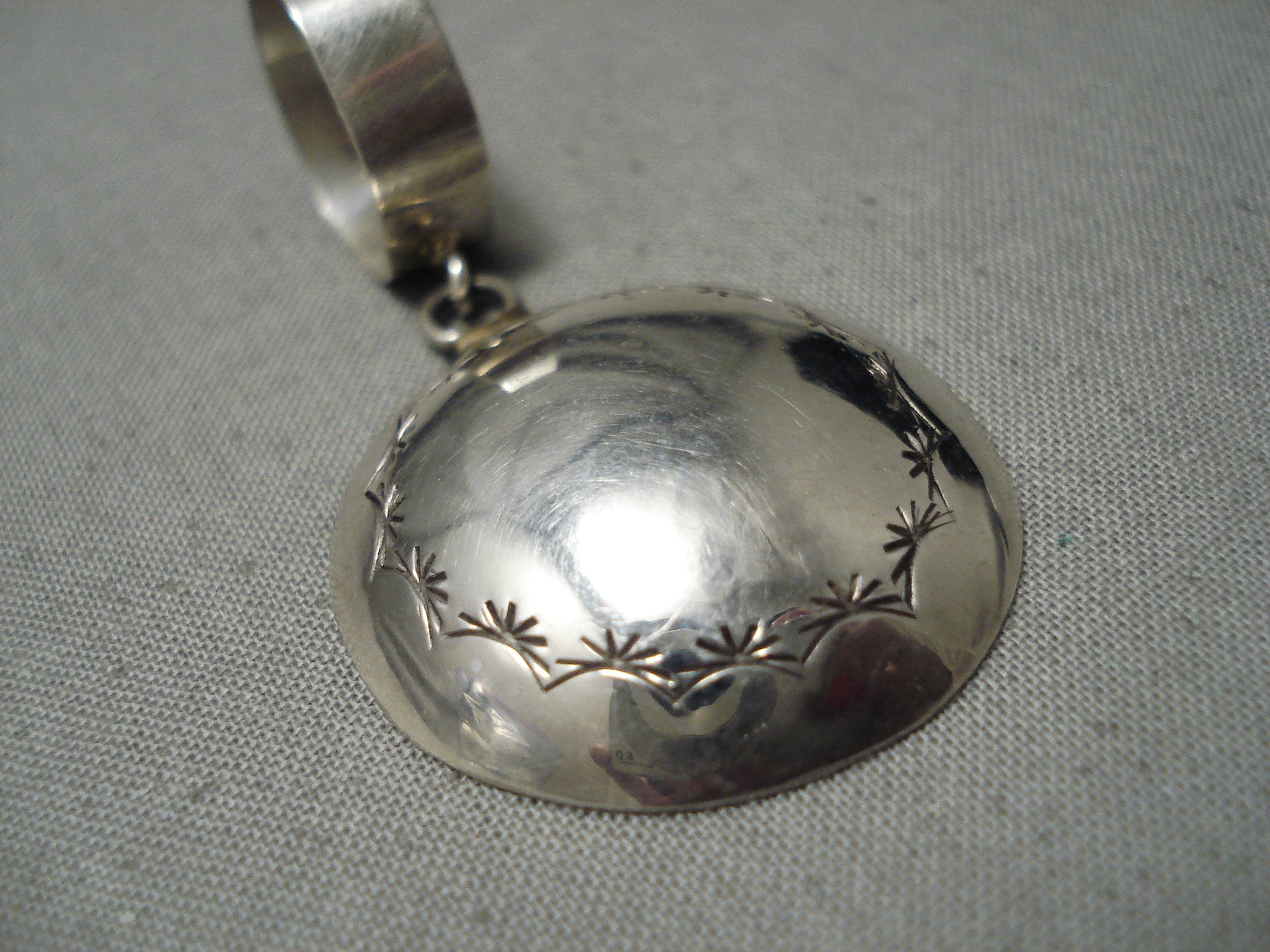 Advanced Technique Hand Tooled Vintage Native American Navajo Sterling Silver Button Pendant
