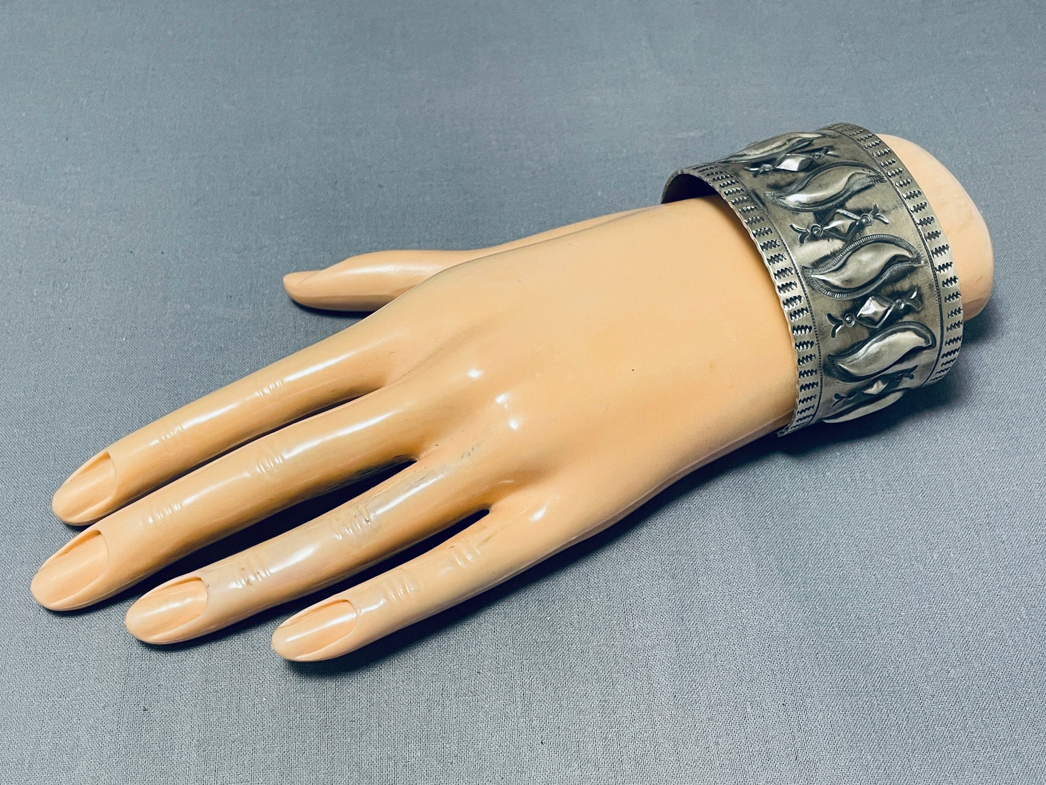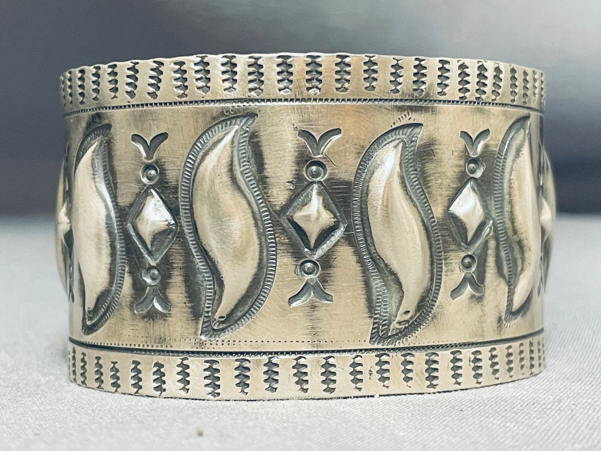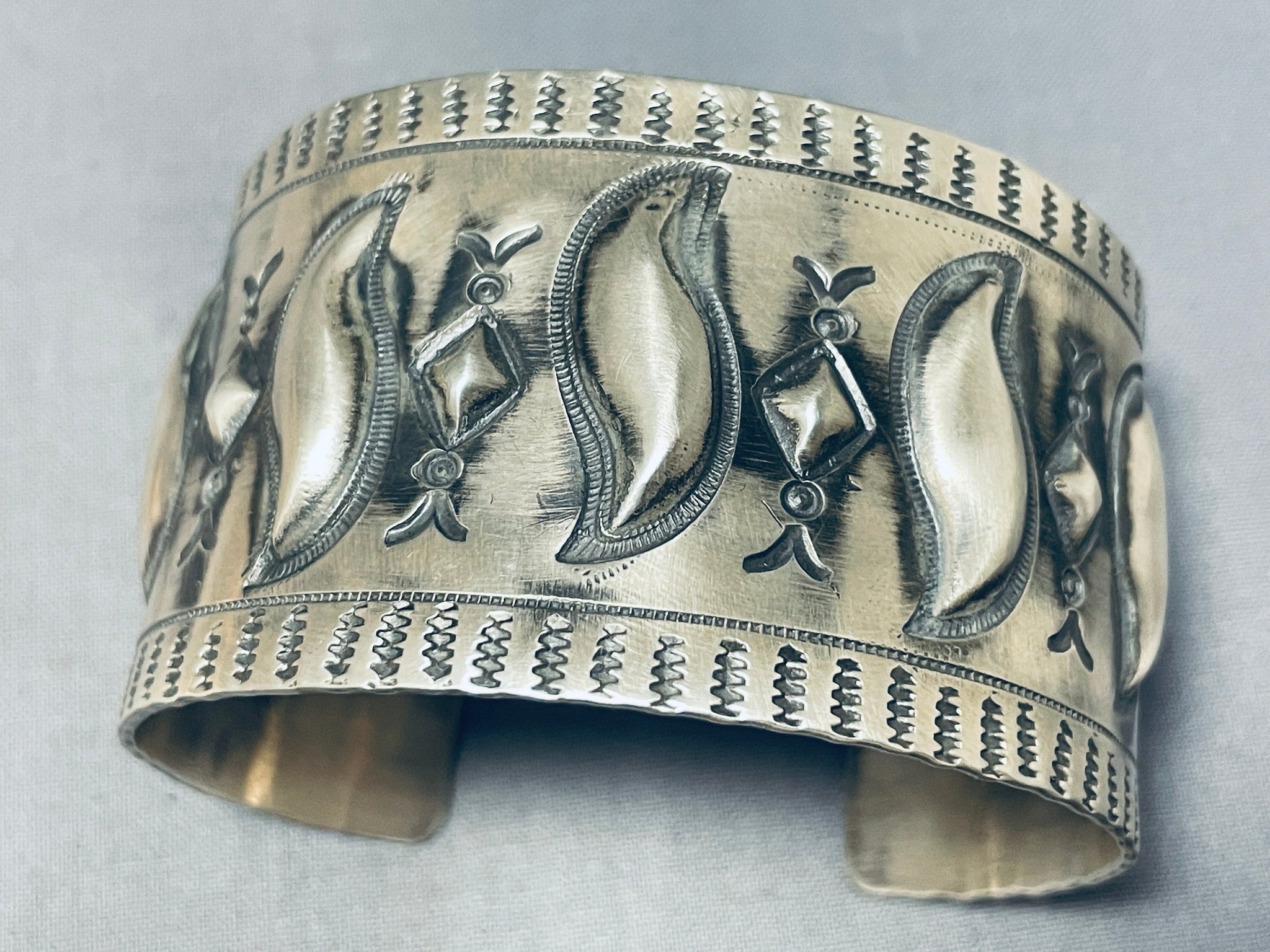 Al Cleveland Dramatic Native American Navajo Sterling Silver Bracelet Signed