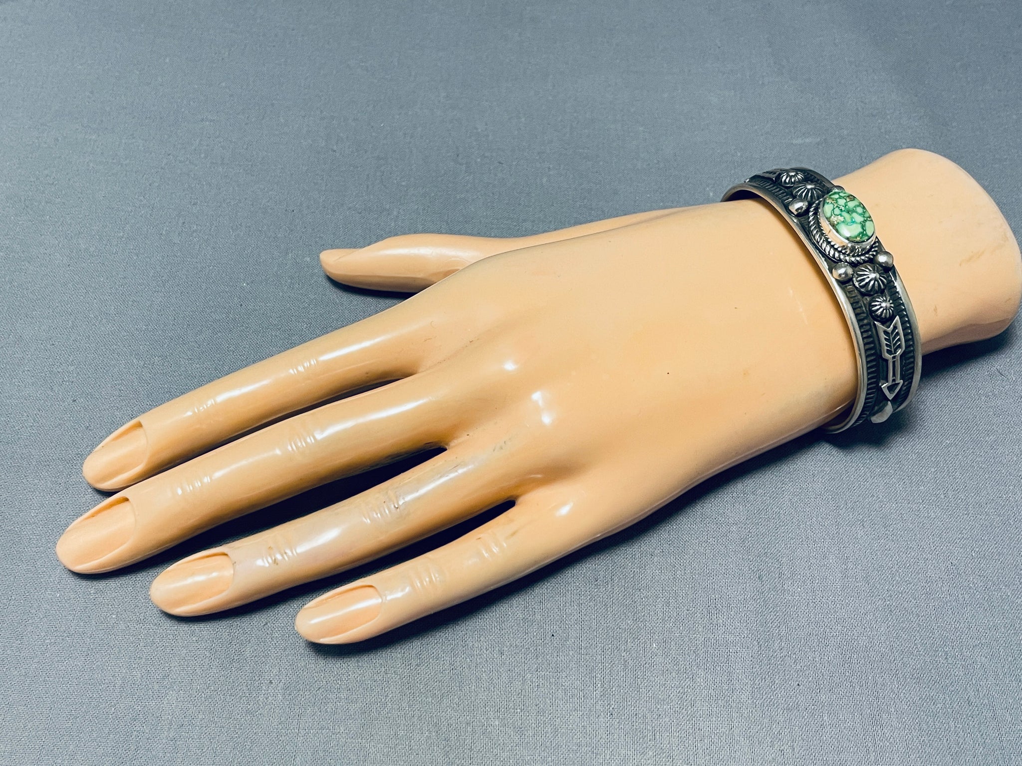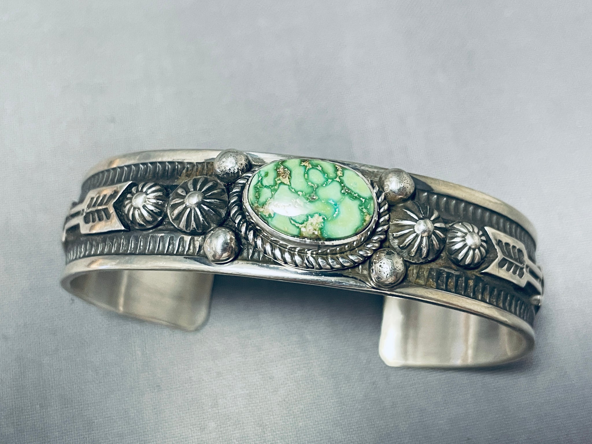Al Jake Native American Navajo High Grade Carico Lake Turquoise Sterling Silver Bracelet