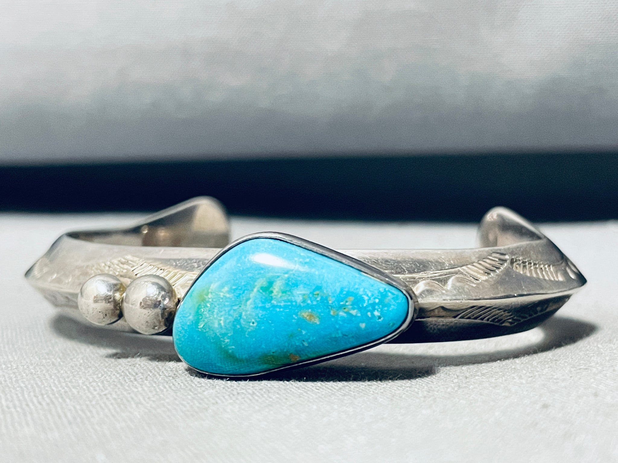 Al Lee Easter Blue Turquoise! Vintage Native American Navajo Sterling Silver Bracelet