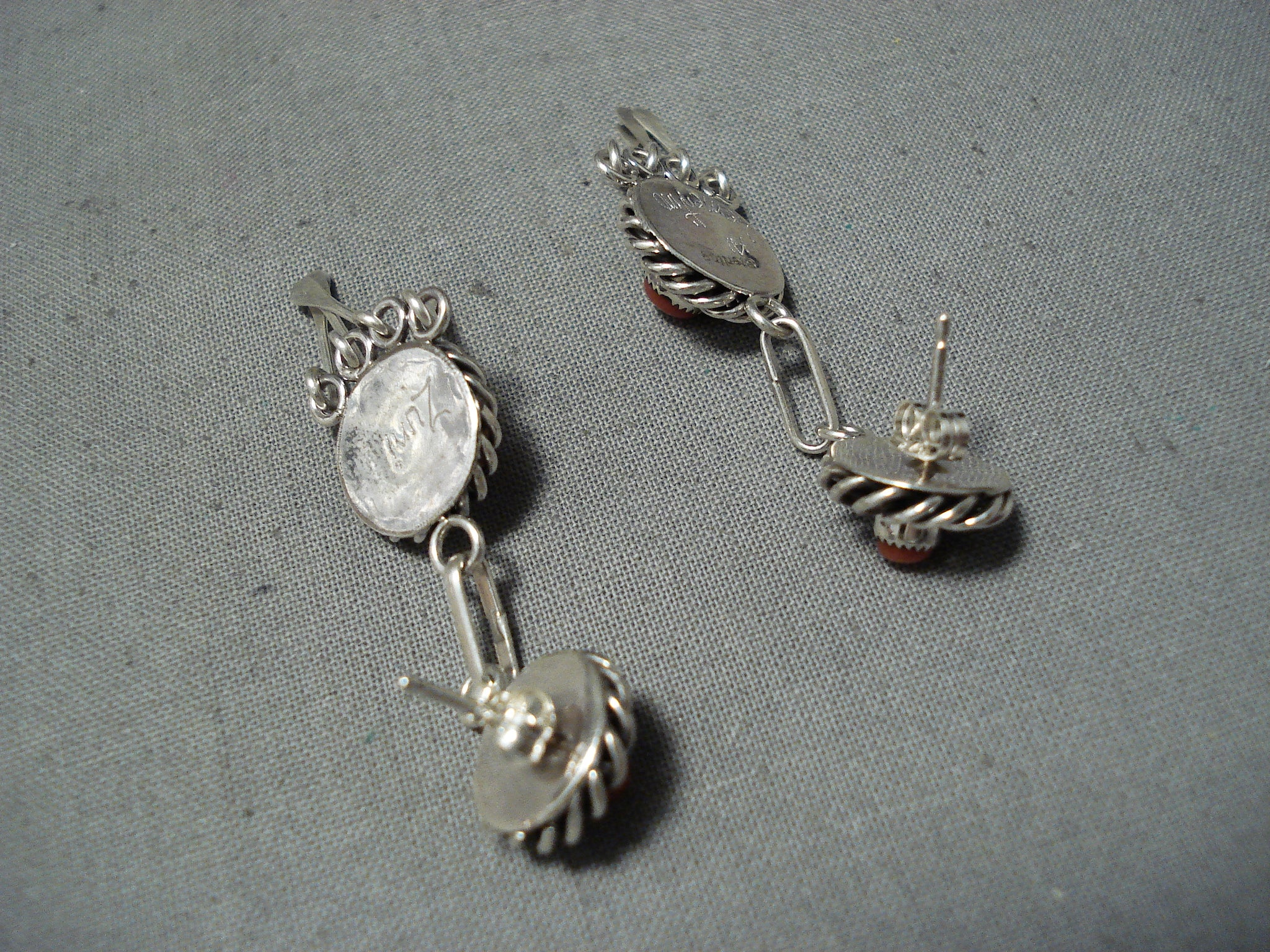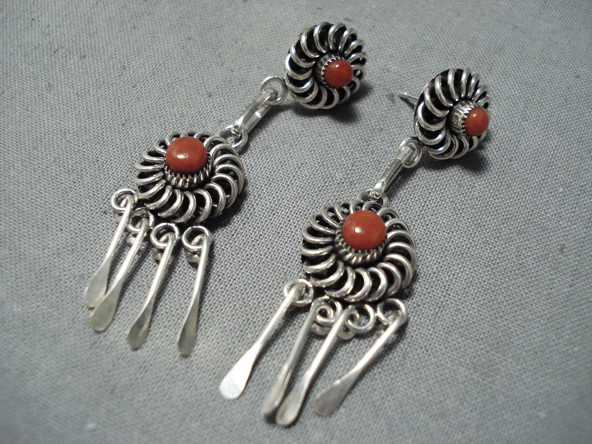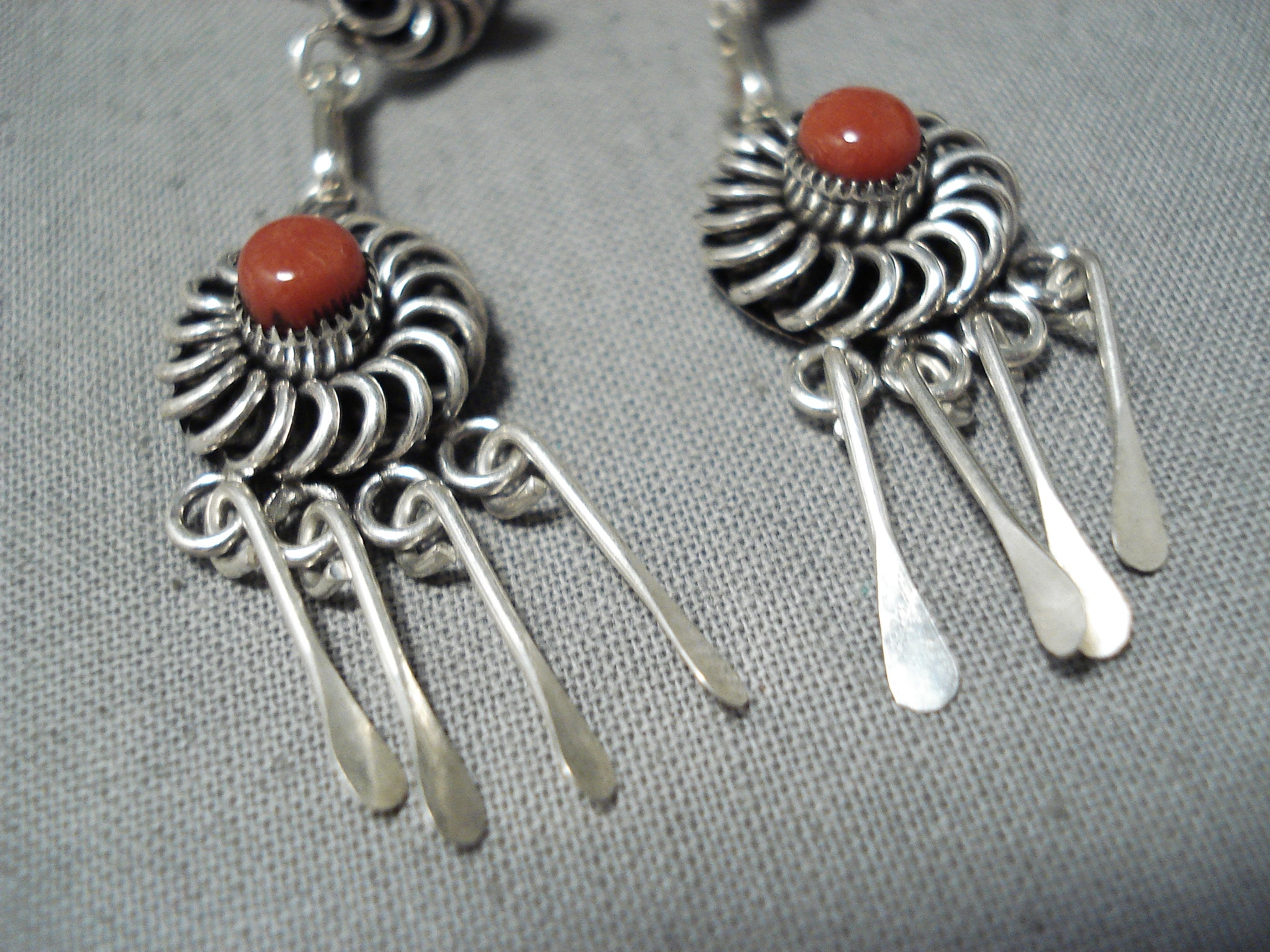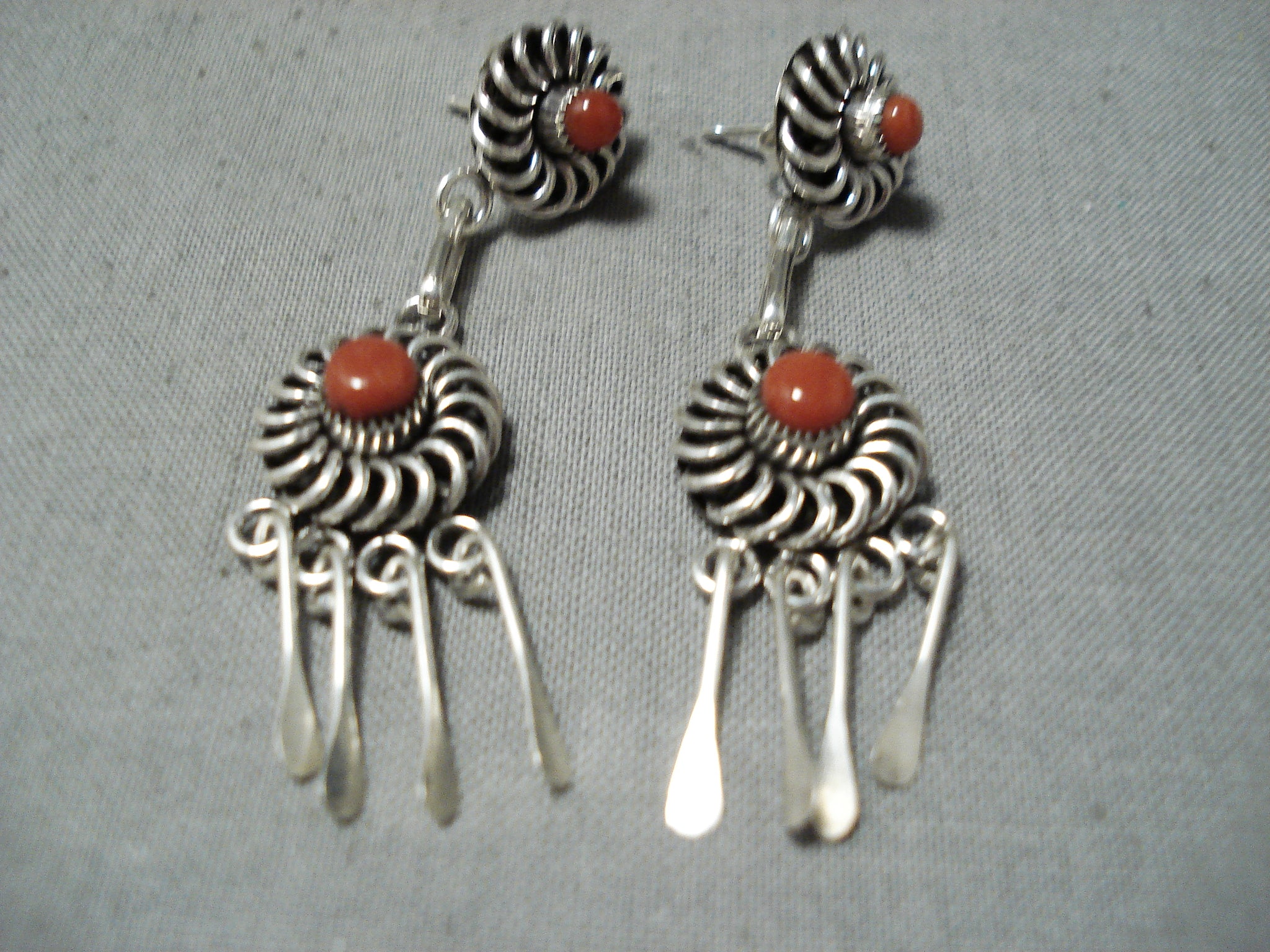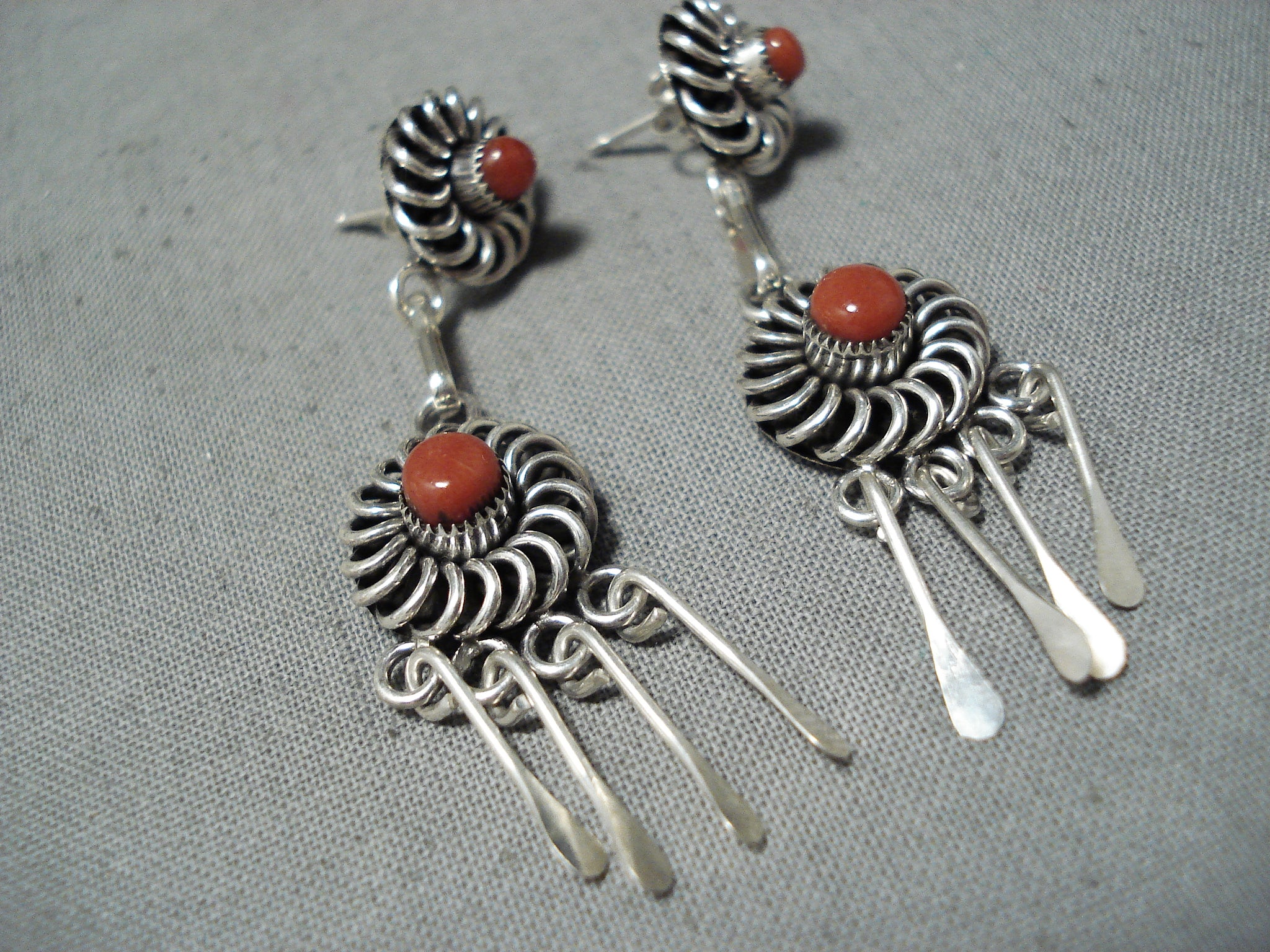 Al Lementino Fantastic Zuni Coral Sterling Silver Earrings Native American