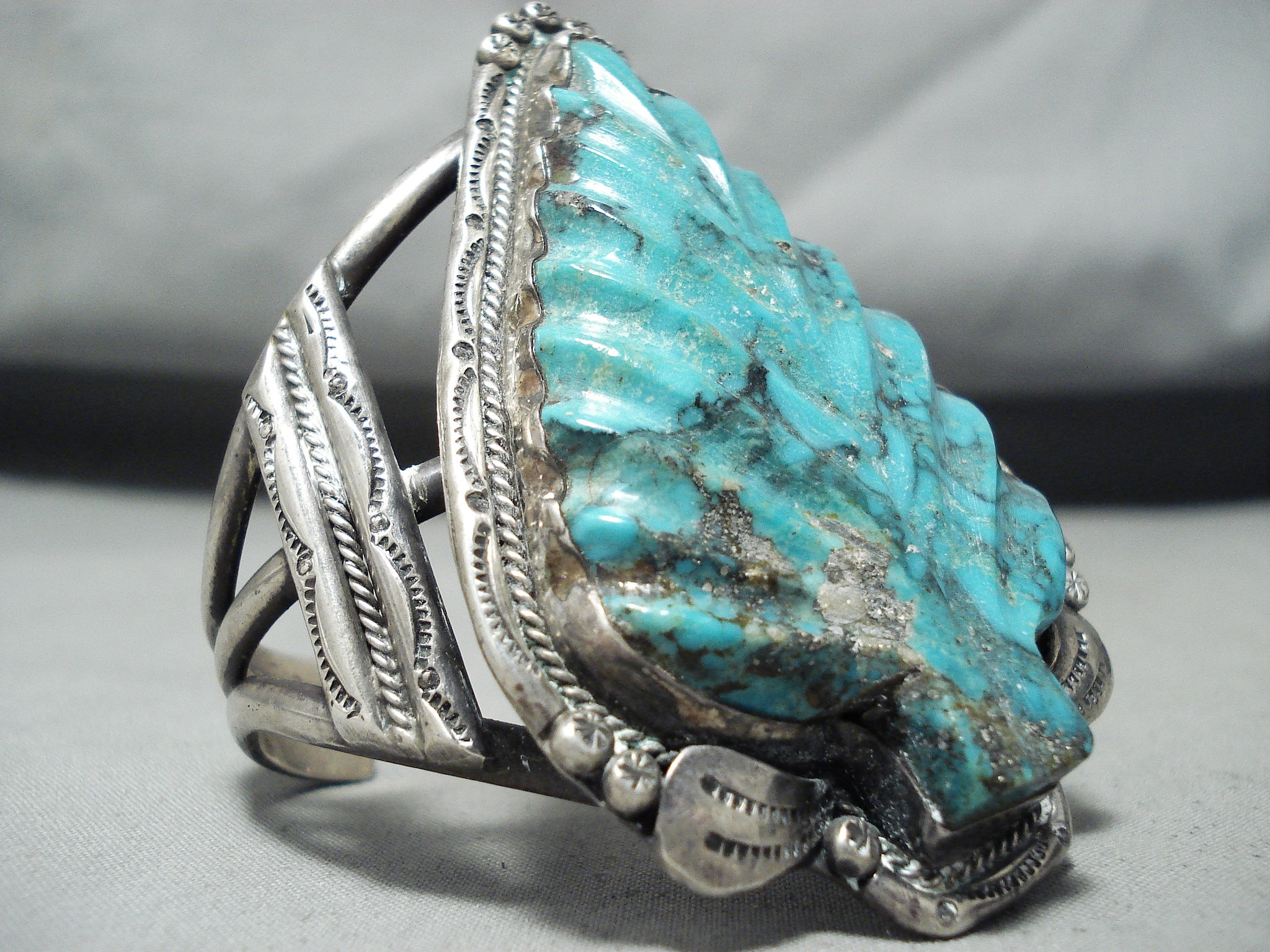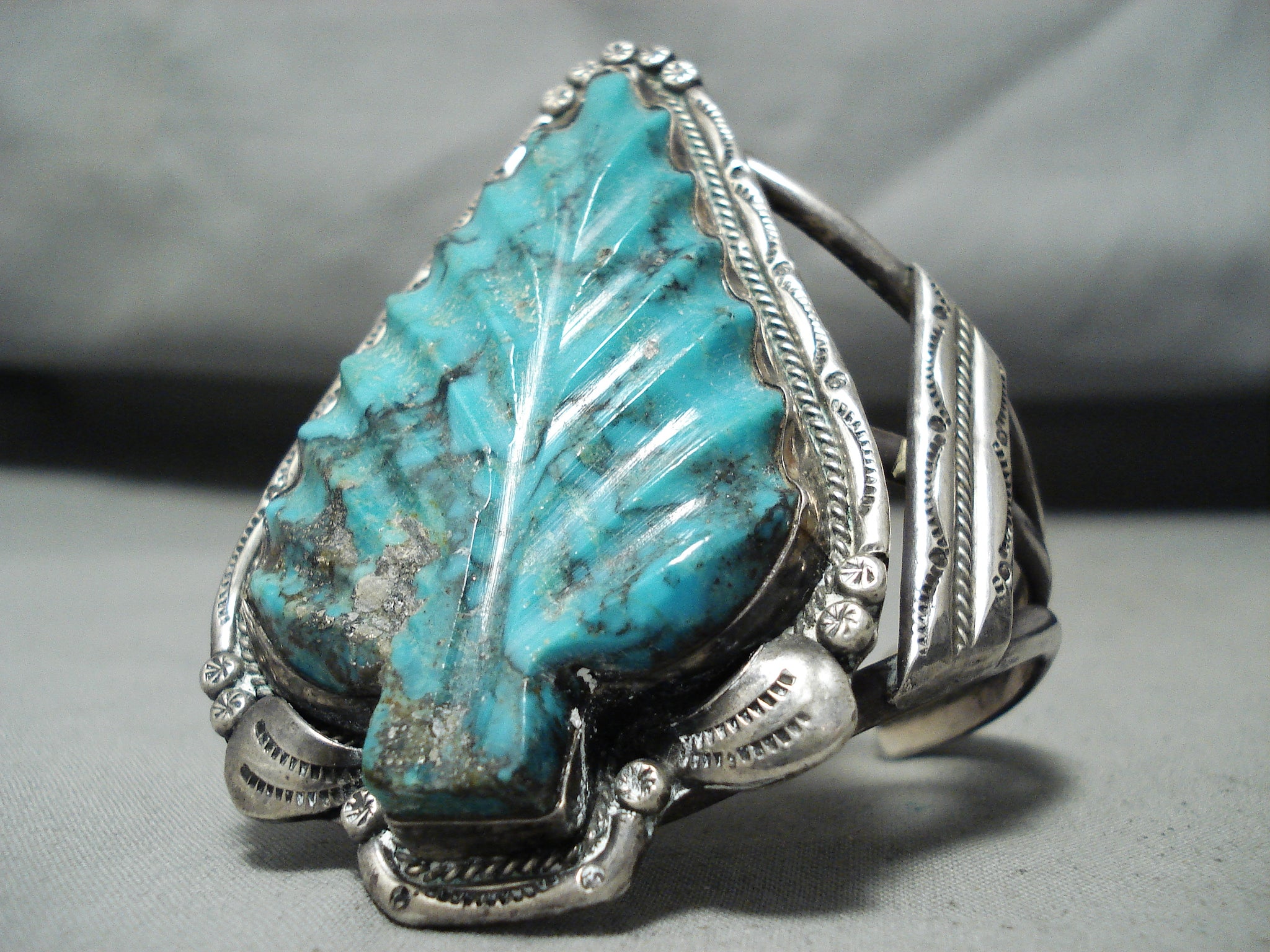 Albert Platero Vintage Leaf Turquoise Native American Navajo Sterling Silver Bracelet