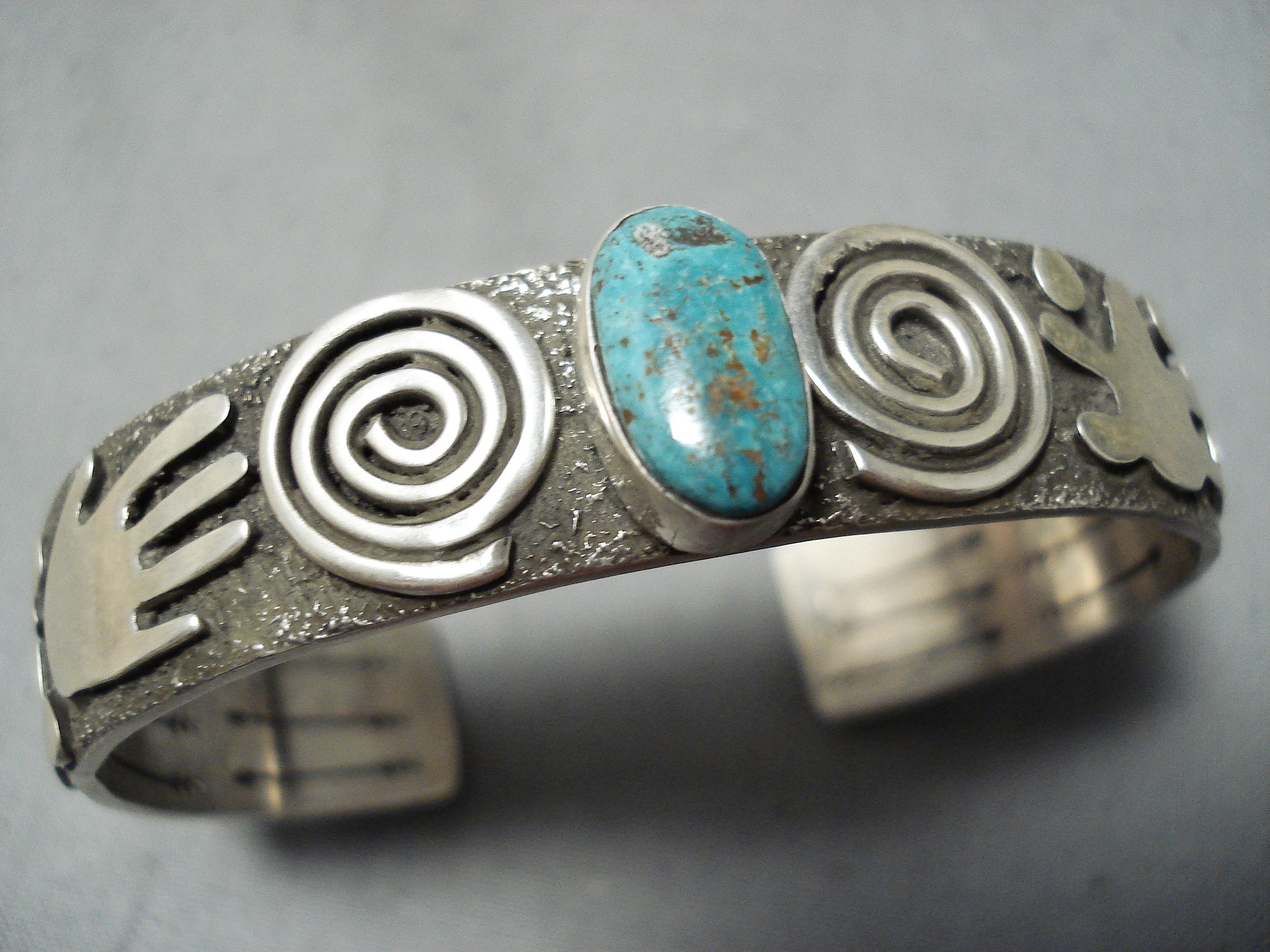 Alex Sanchez Navajo Kingman Turquoise Sterling Silver Bracelet Native American