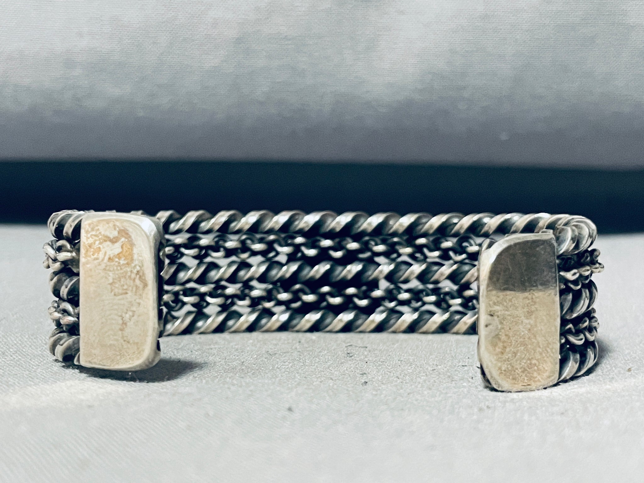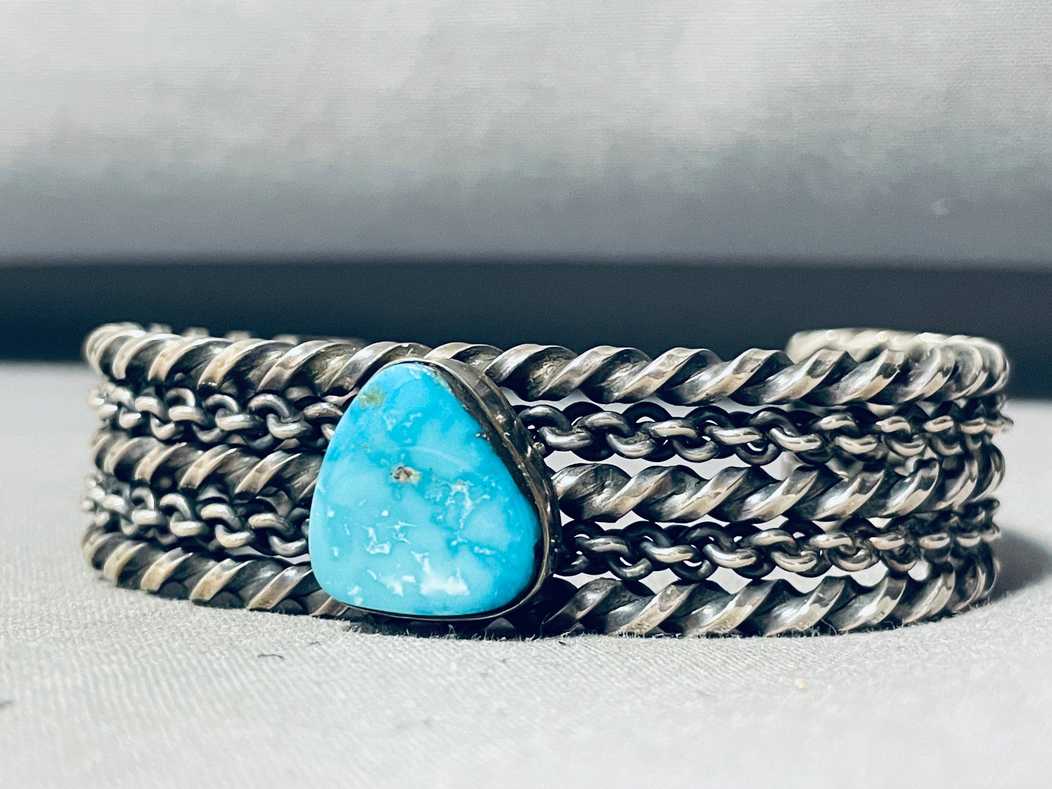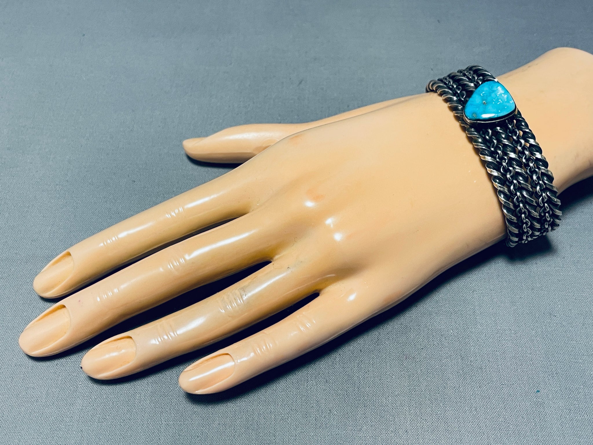 All Coils!!!! Vintage Native American Navajo Turquoise Sterling Silver Sturdy Bracelet
