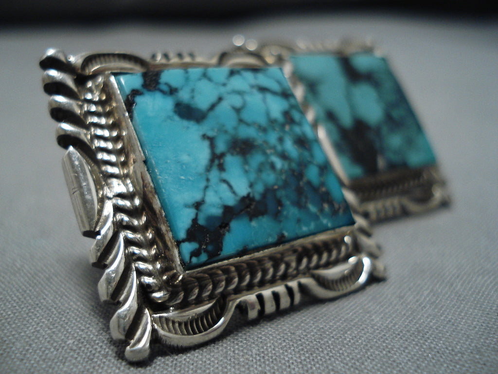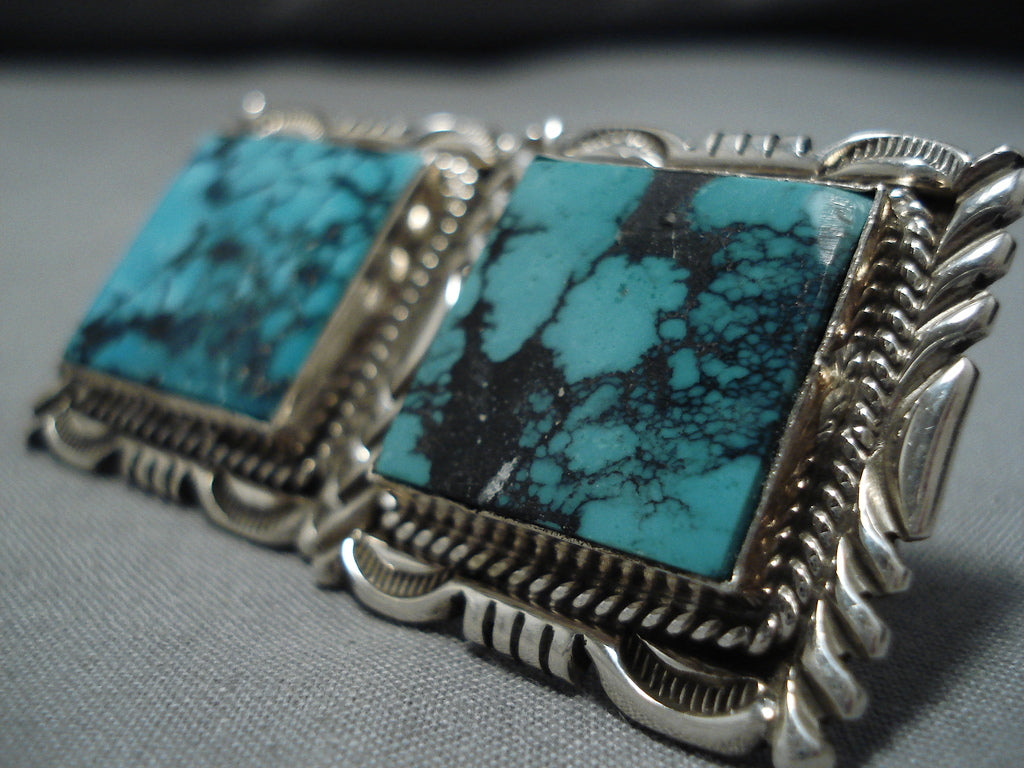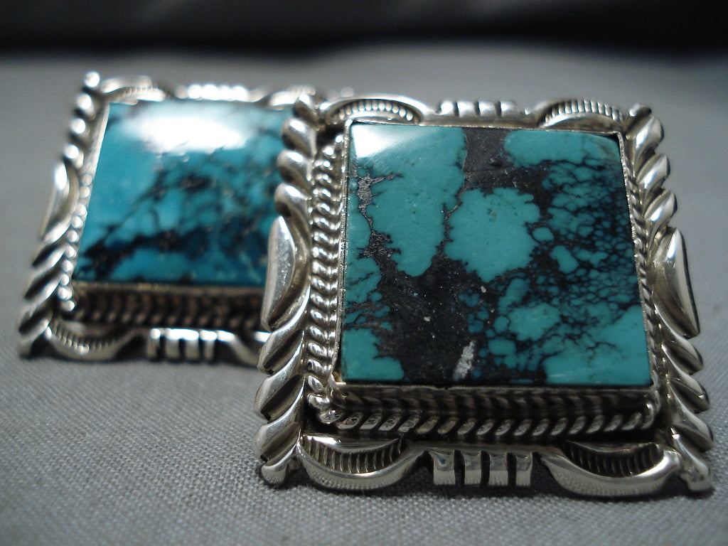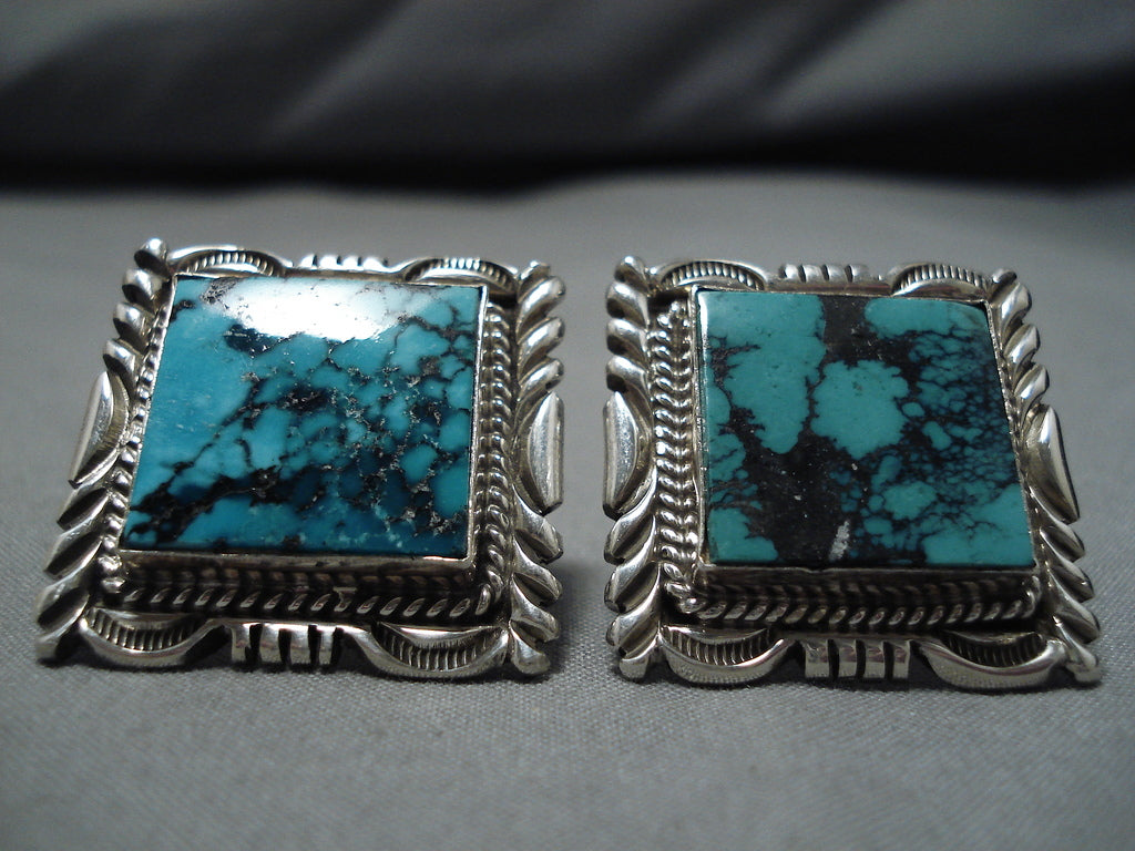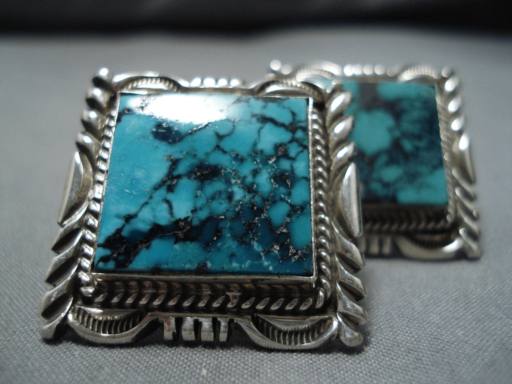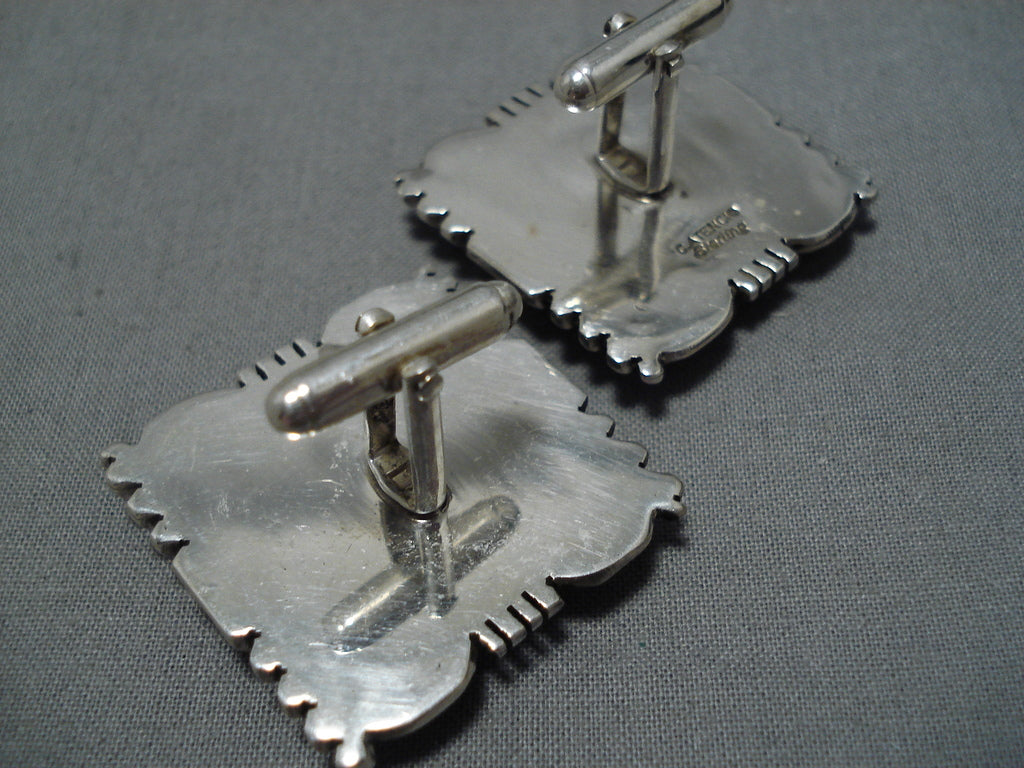 Amazing Cecil Atencio Vintage Native American Navajo Turquoise Sterling Silver Cufflinks