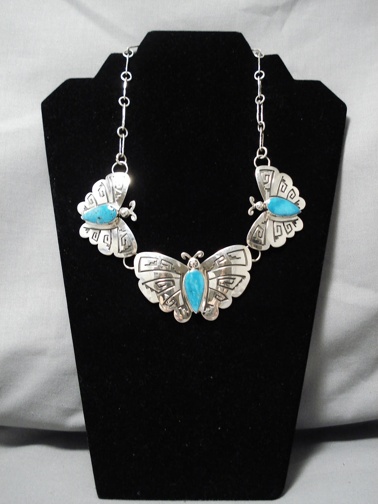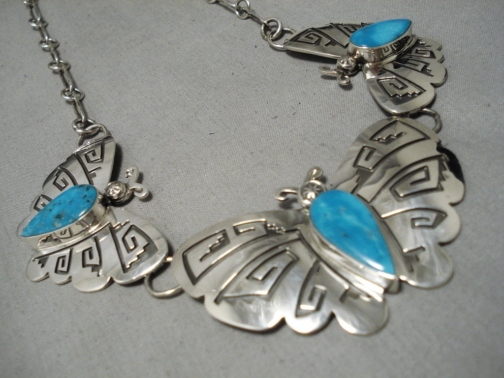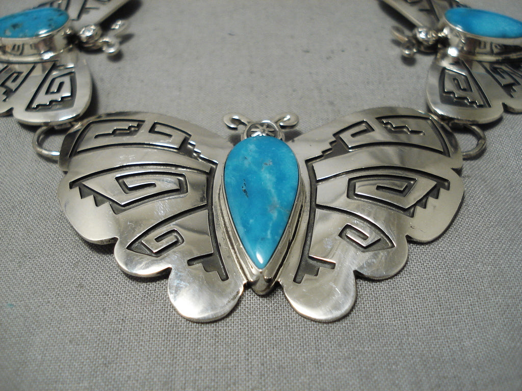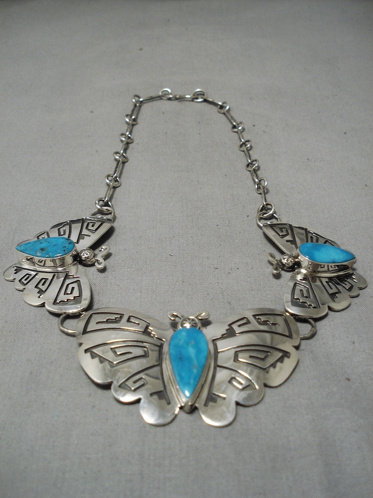 Amazing Everett Teller Vintage Native American Navajo Teardrop Turquoise Necklace Old