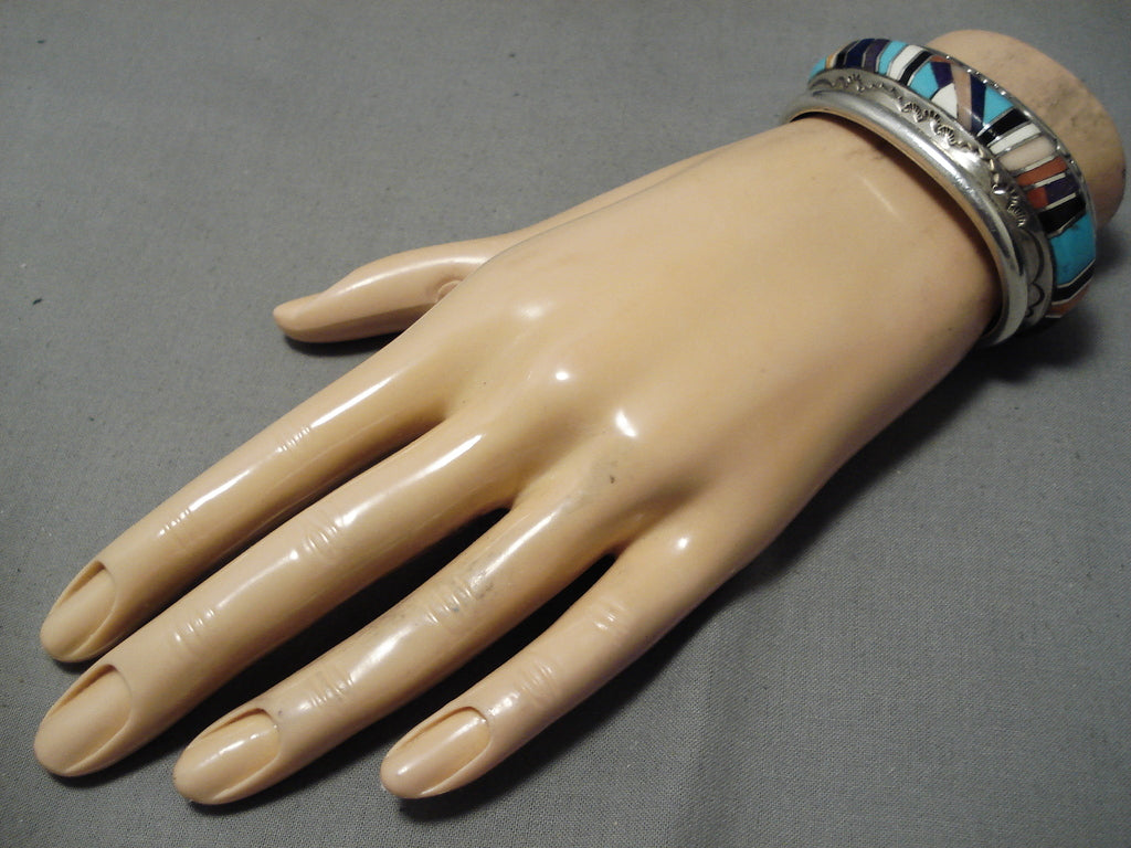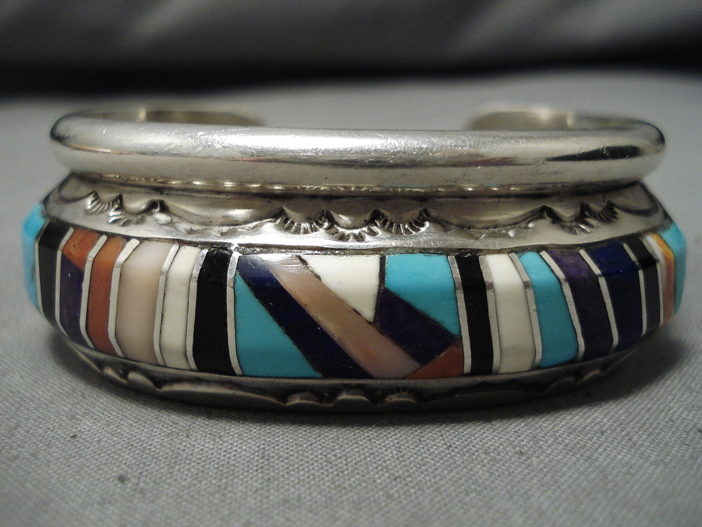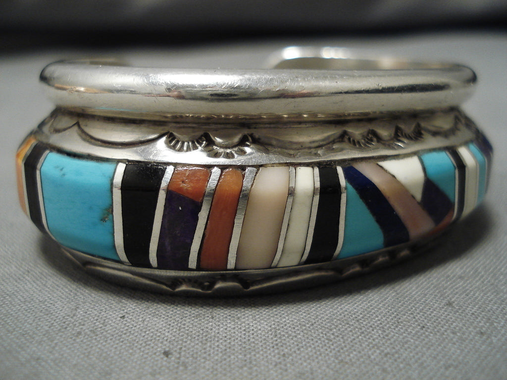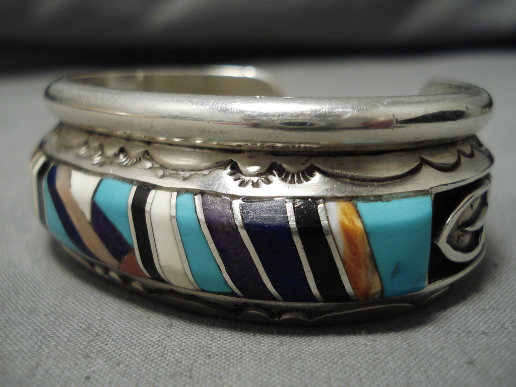 Amazing Jimmy Frank Vintage Native American Navajo Turquoise Sugulite Sterling Silver Bracelet