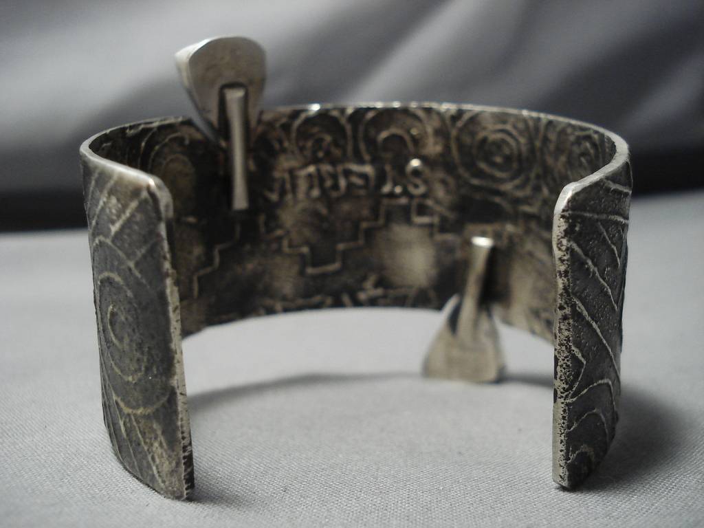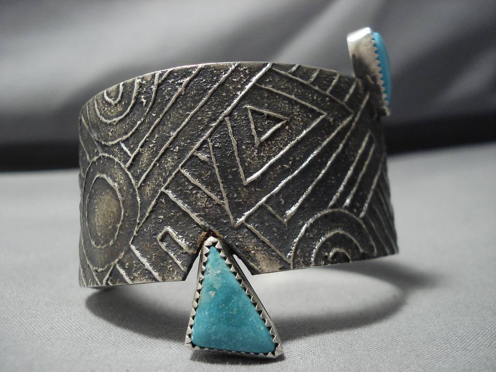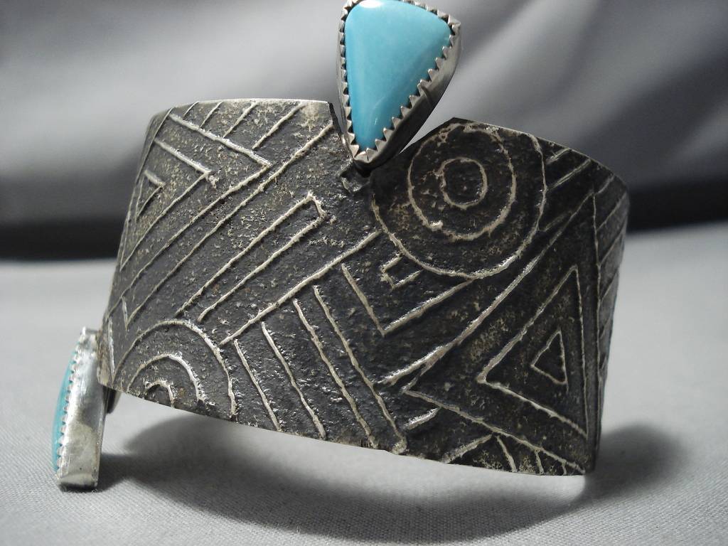 Amazing Modernist Sterling Silver Native American Duel Turquoise Bracelet Cuff