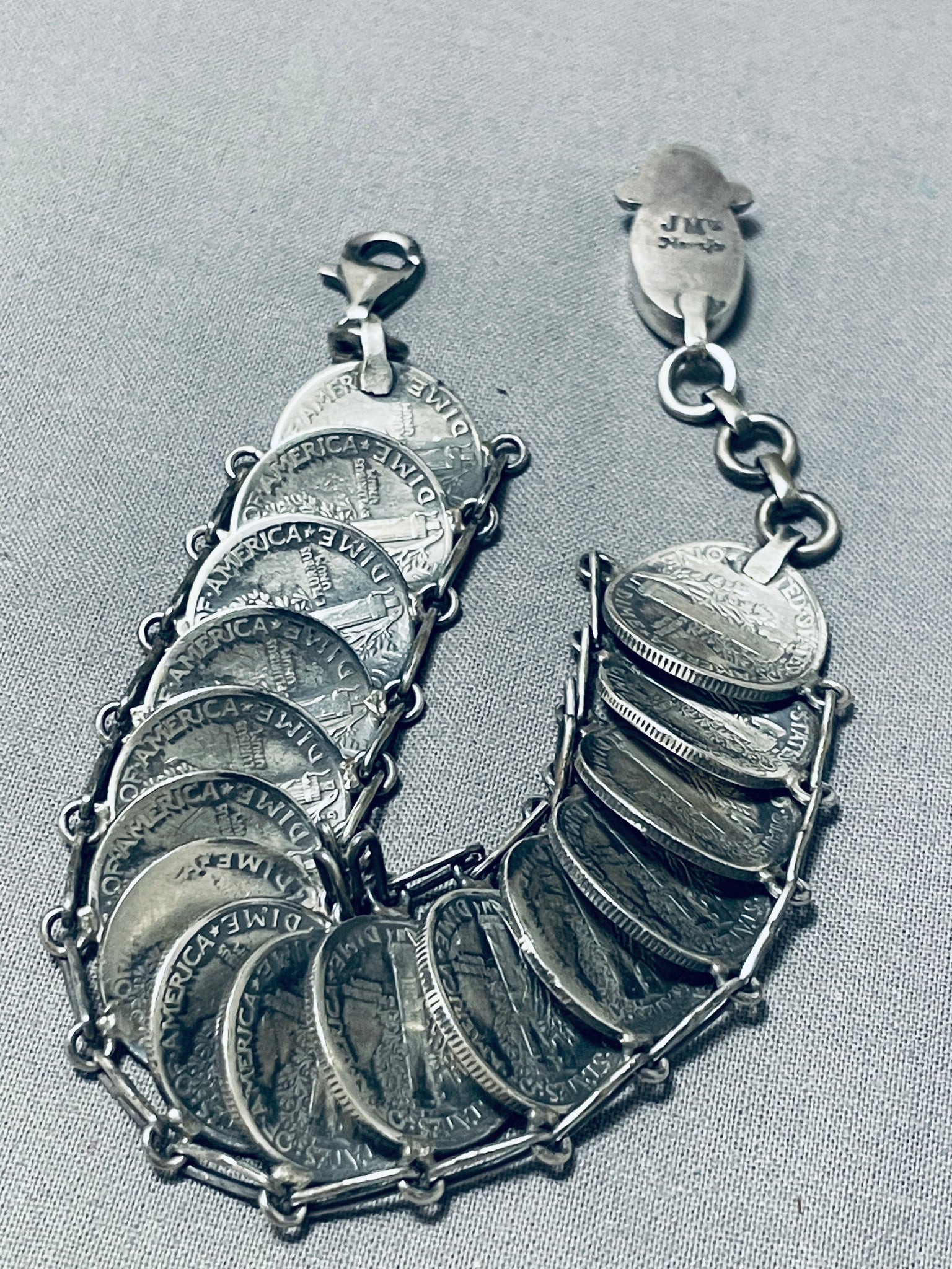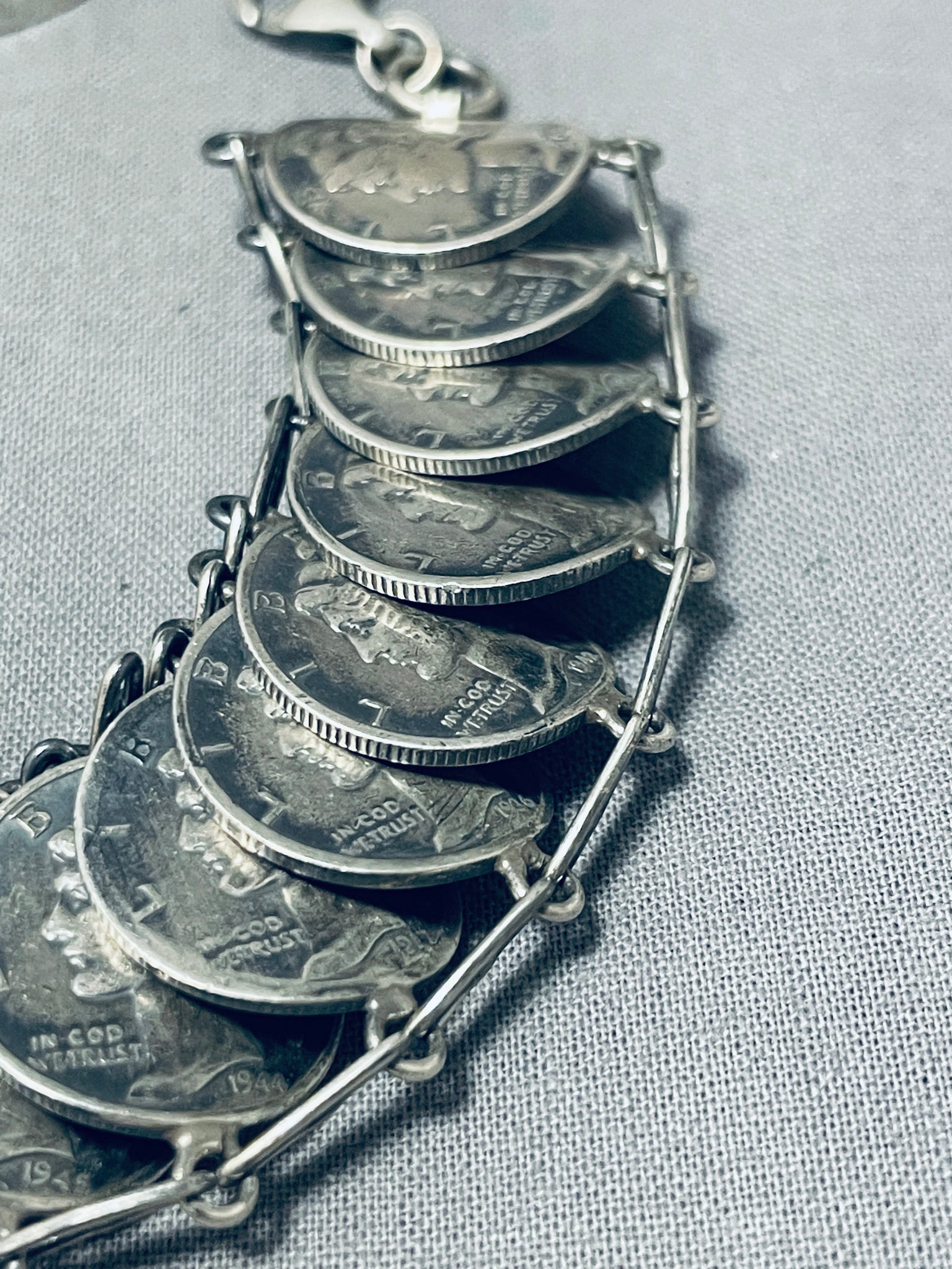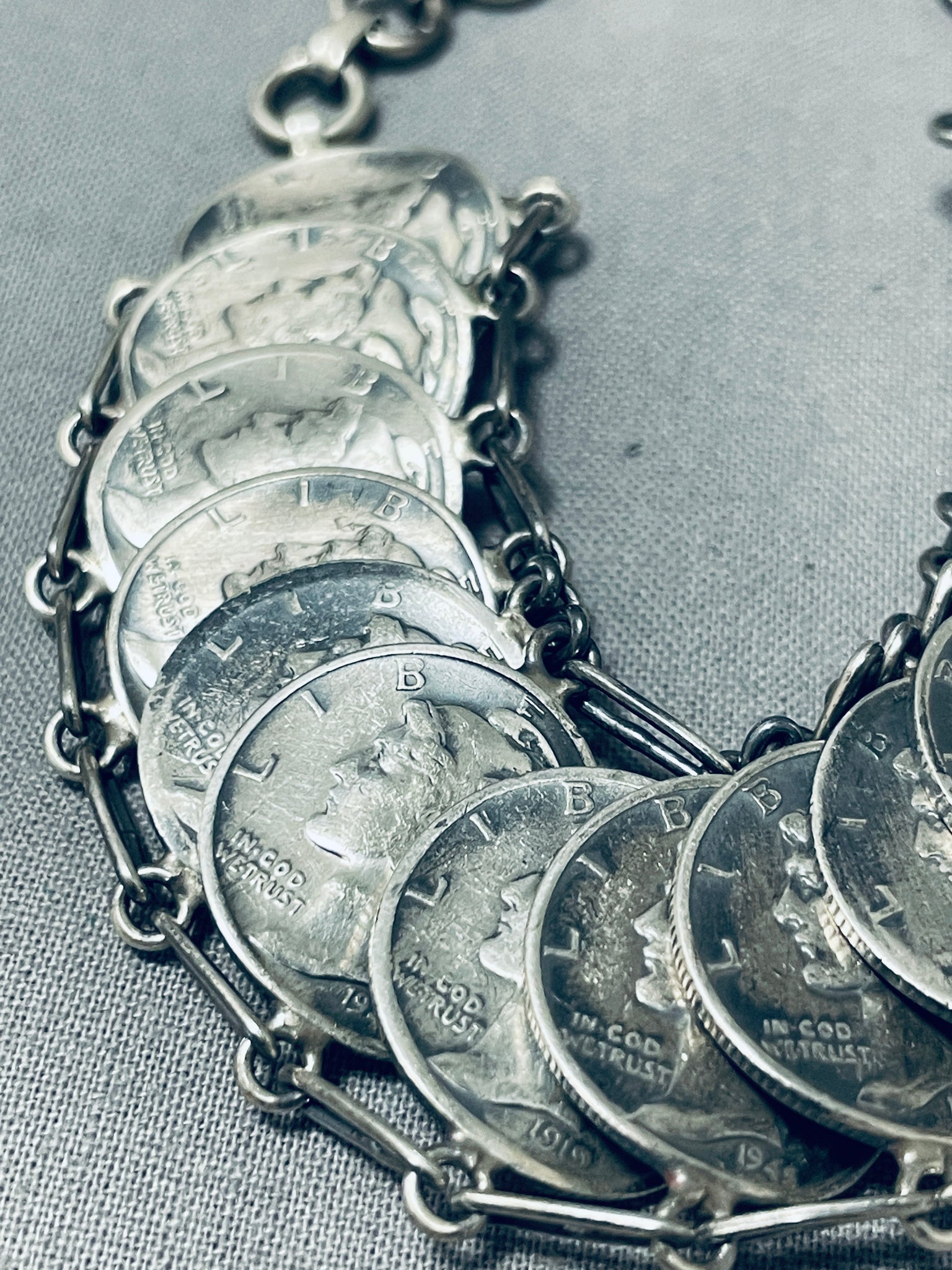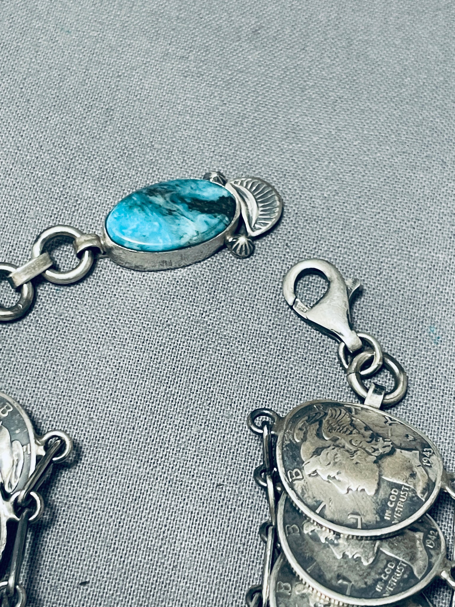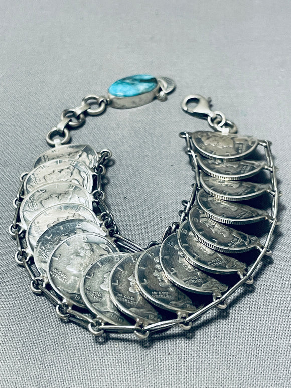 Amazing Native American Navajo Blue Diamond Turquoise & Mercury Dimes Sterling Silver Bracelet