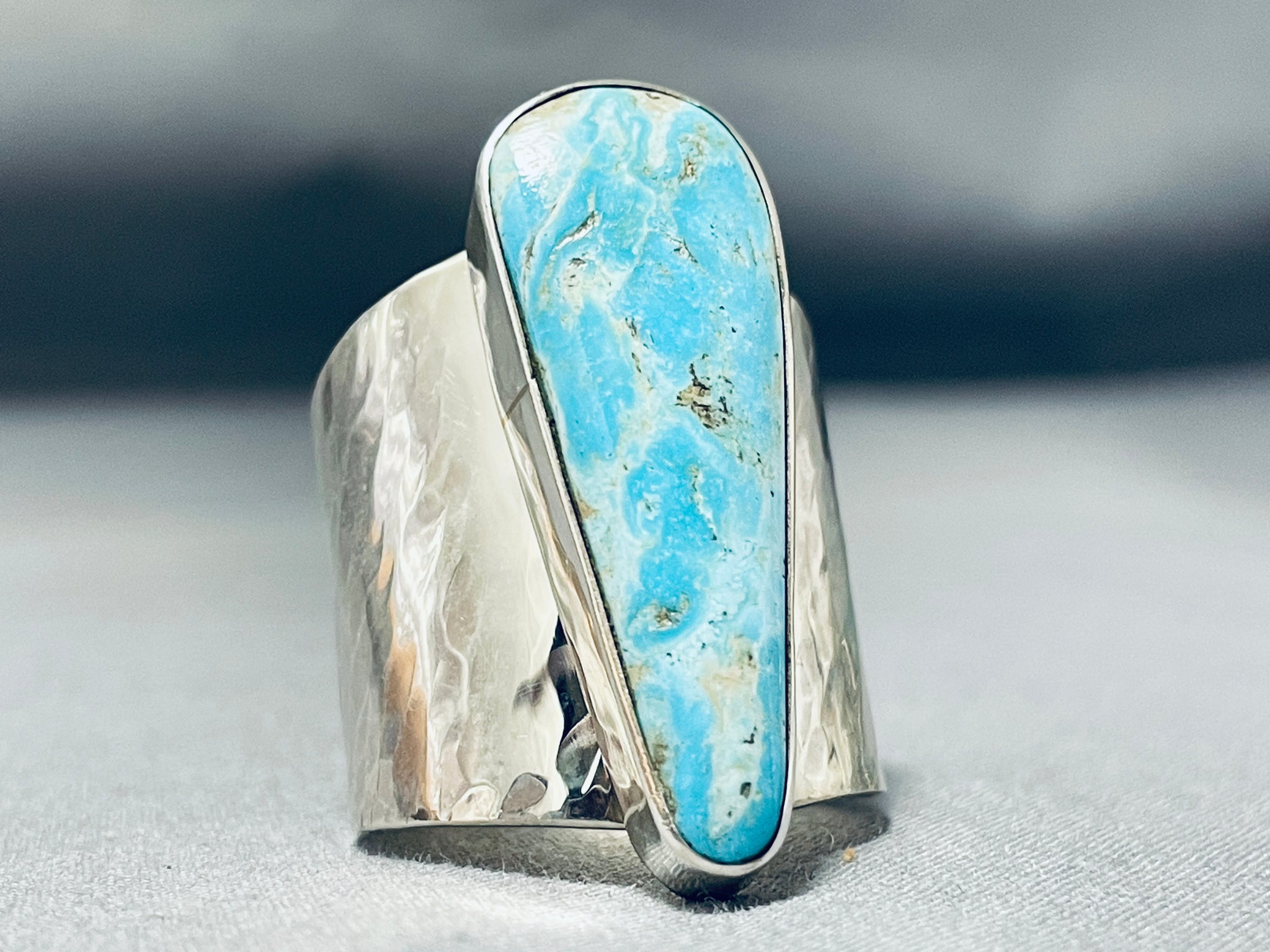 Amazing Native American Navajo Old Kingman Turquoise Sterling Silver Ring