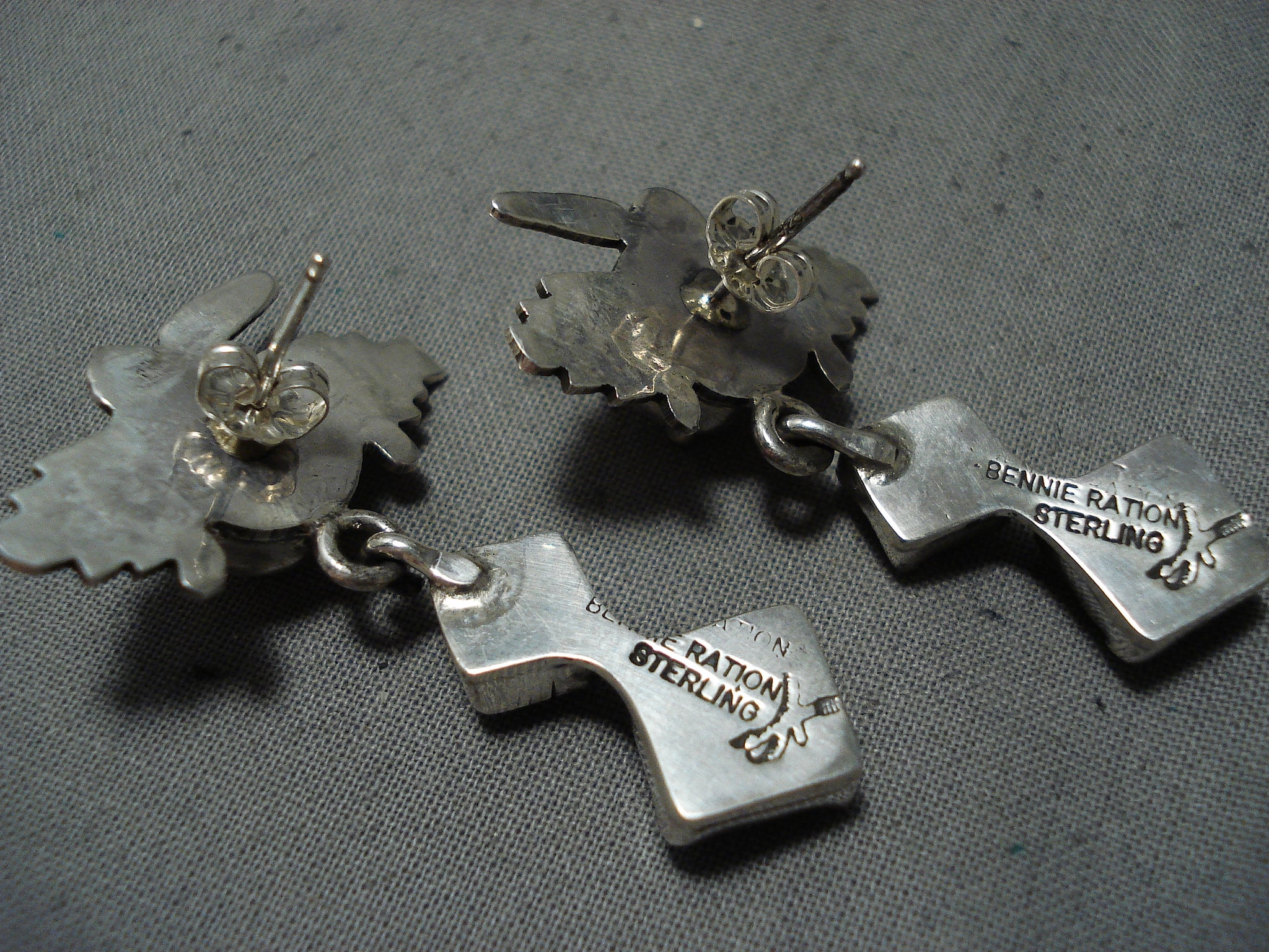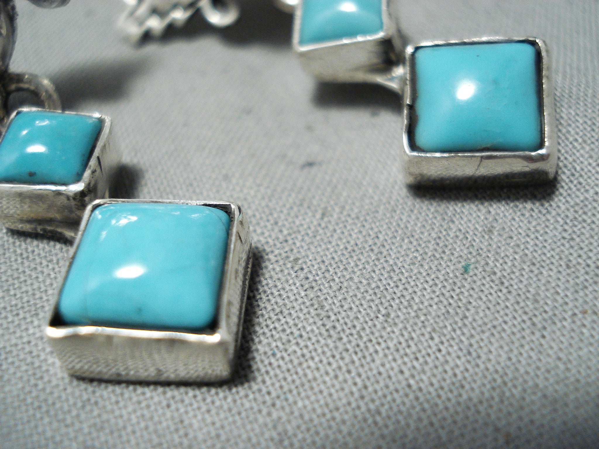 Amazing Native American Navajo Sleeping Beauty Turquoise Sterling Silver Kachina Earrings