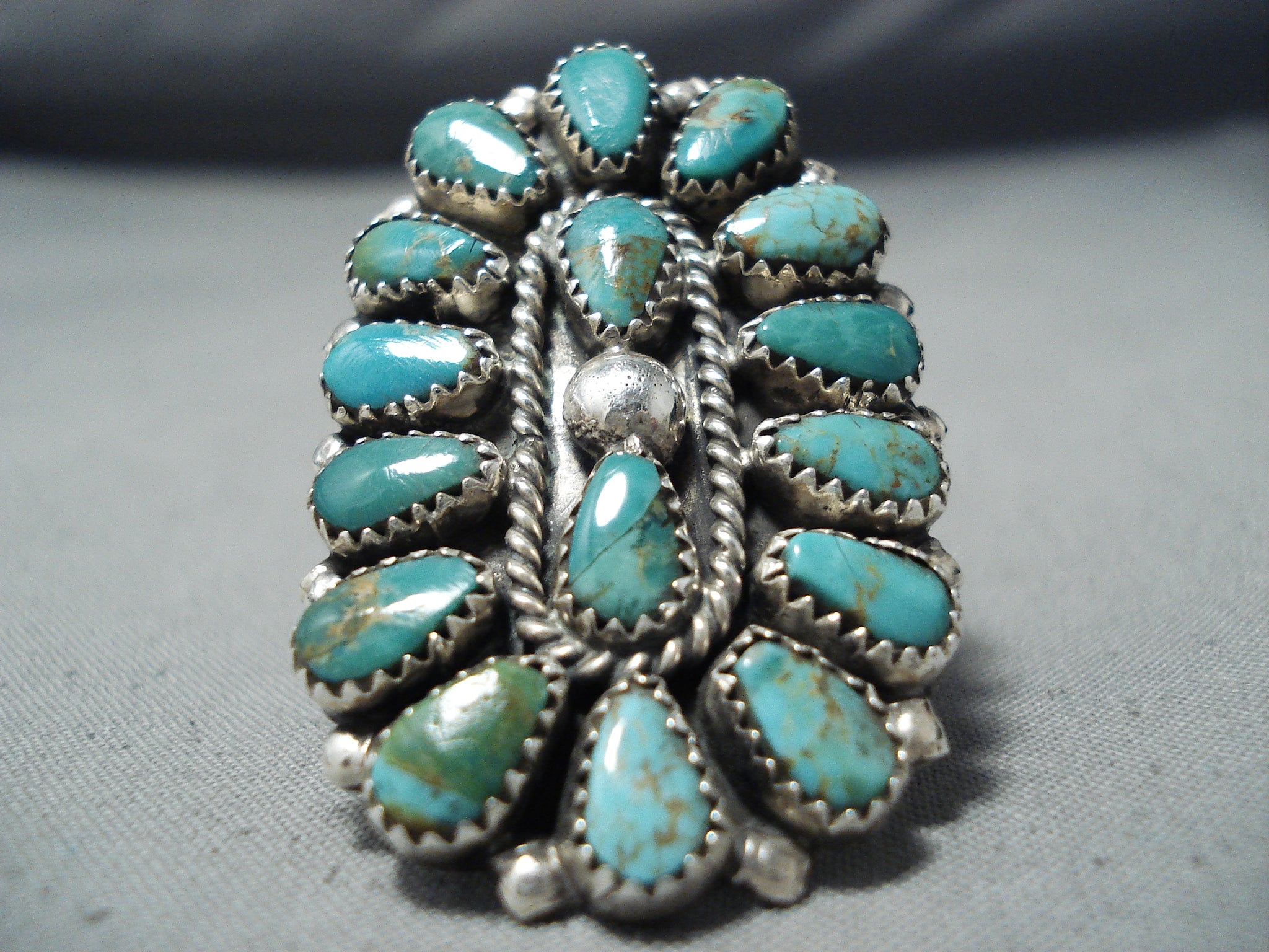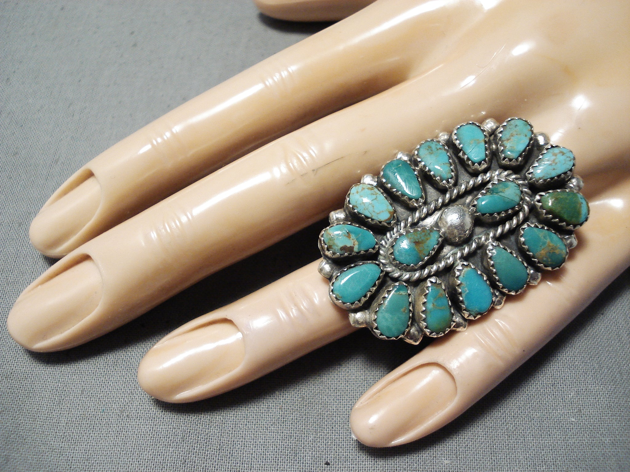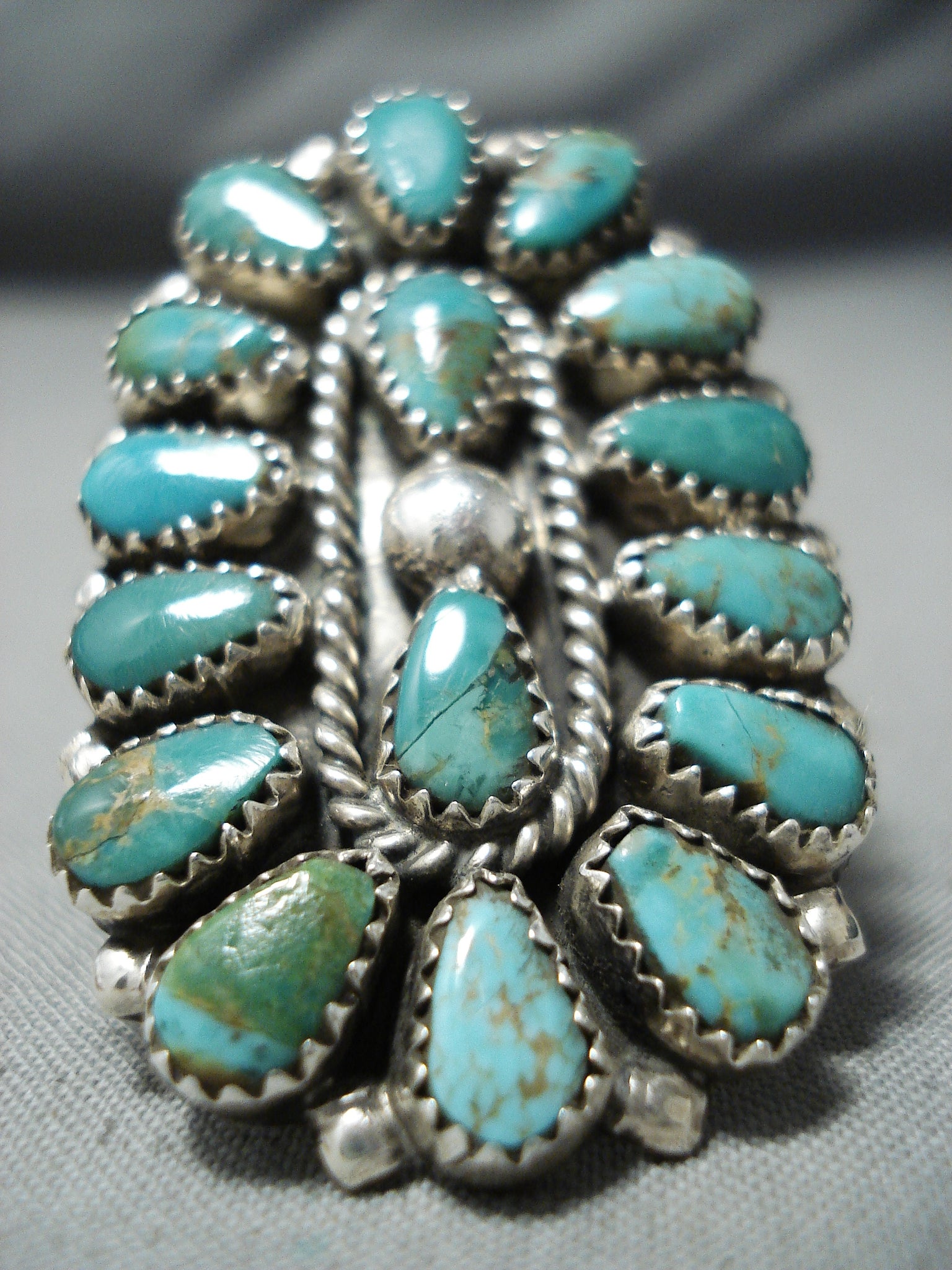 Amazing Navajo Royston Turquoise Cluster Sterling Silver Ring Native American