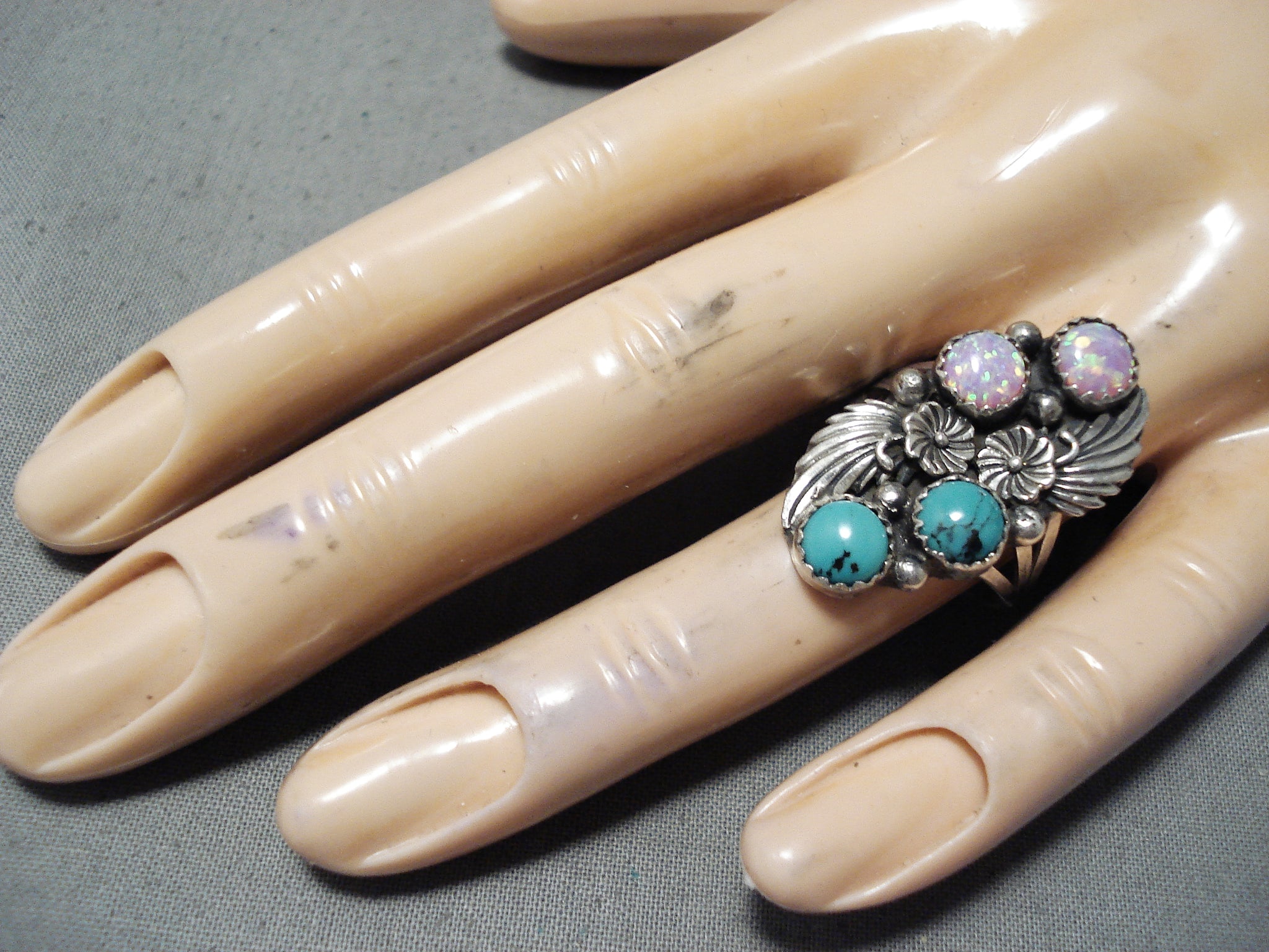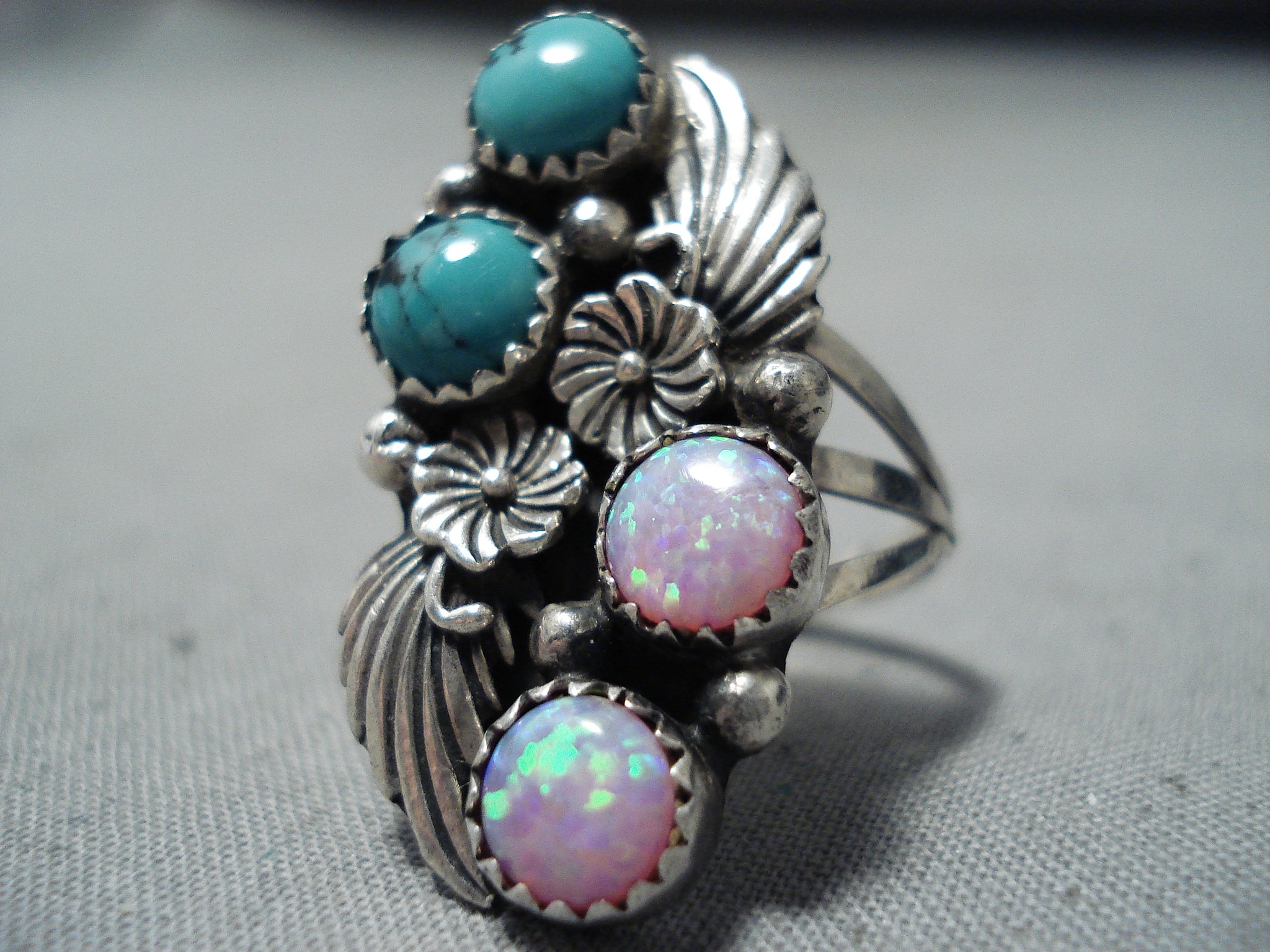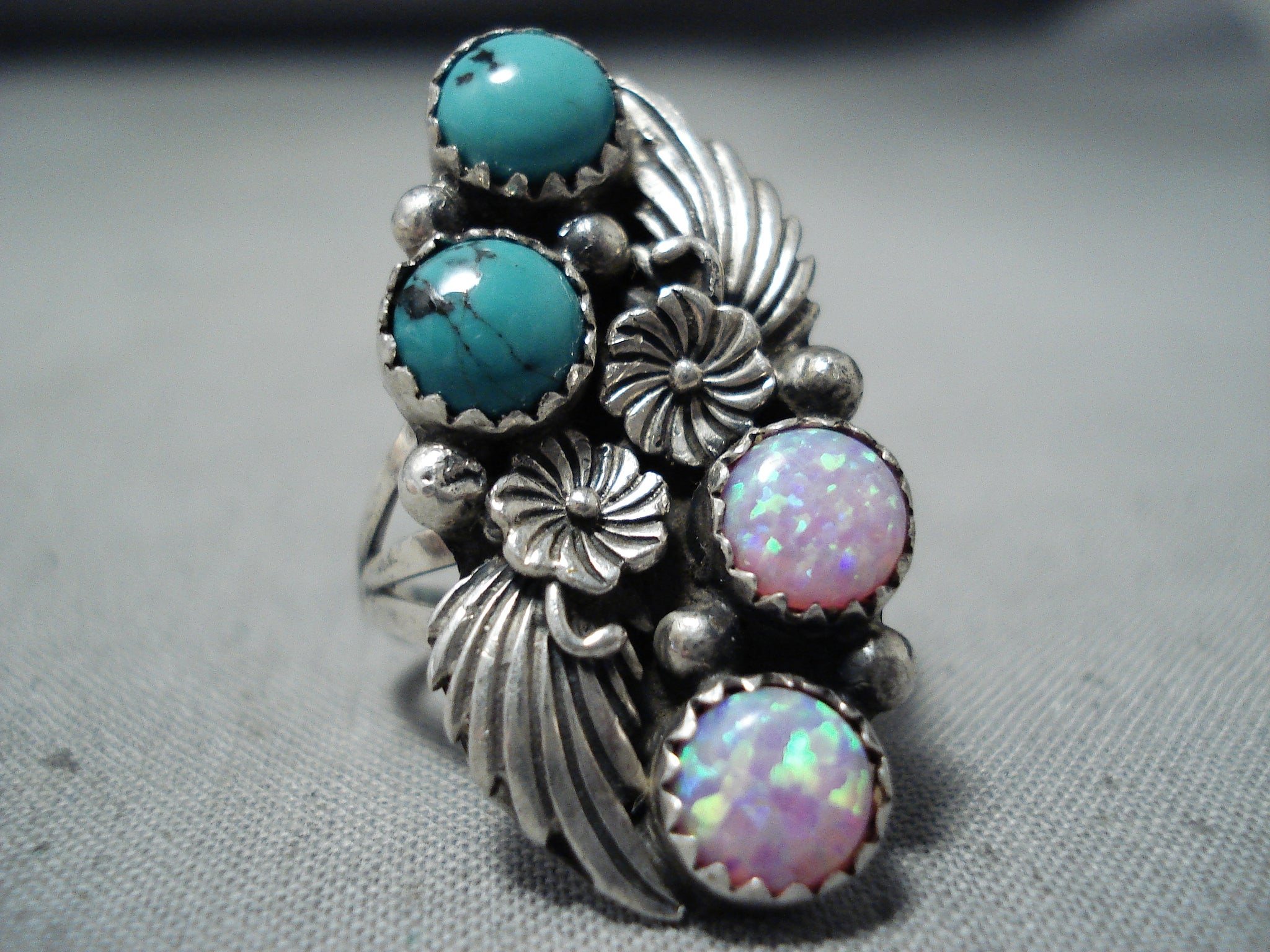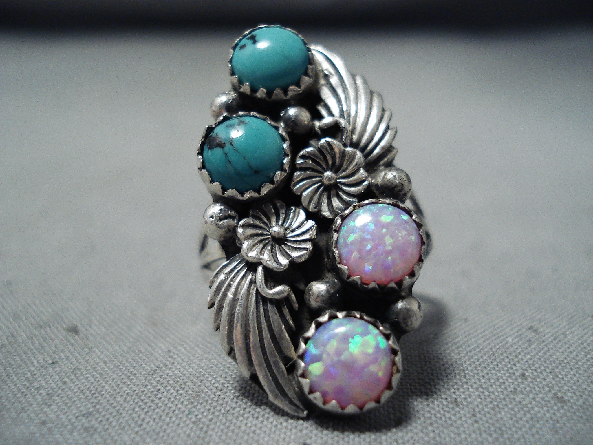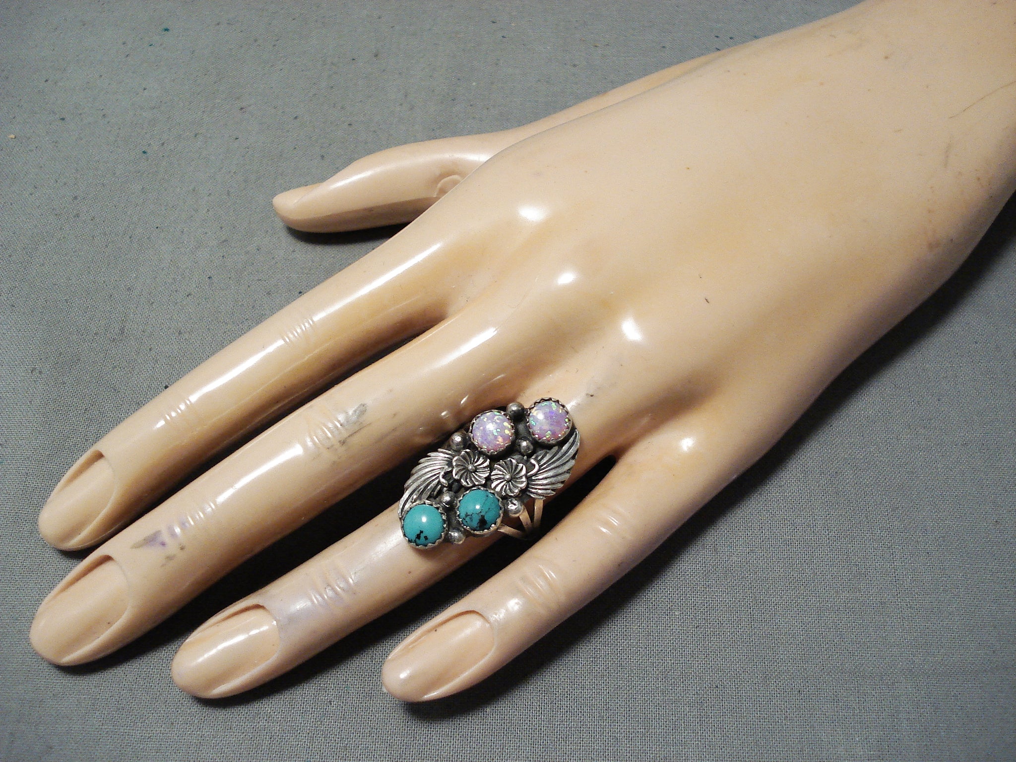 Amazing Navajo Turquoise & Opal Sterling Silver Ring Native American