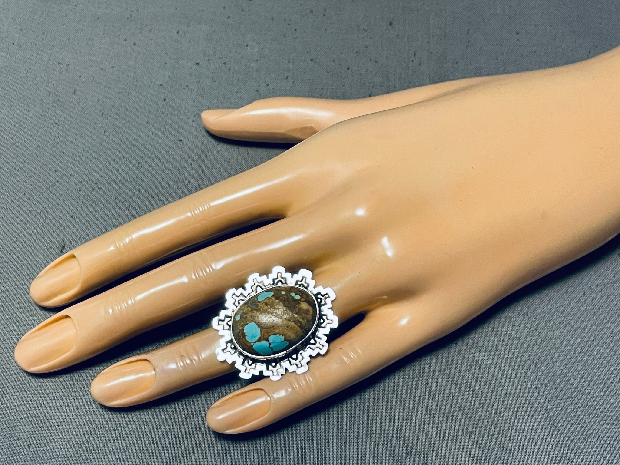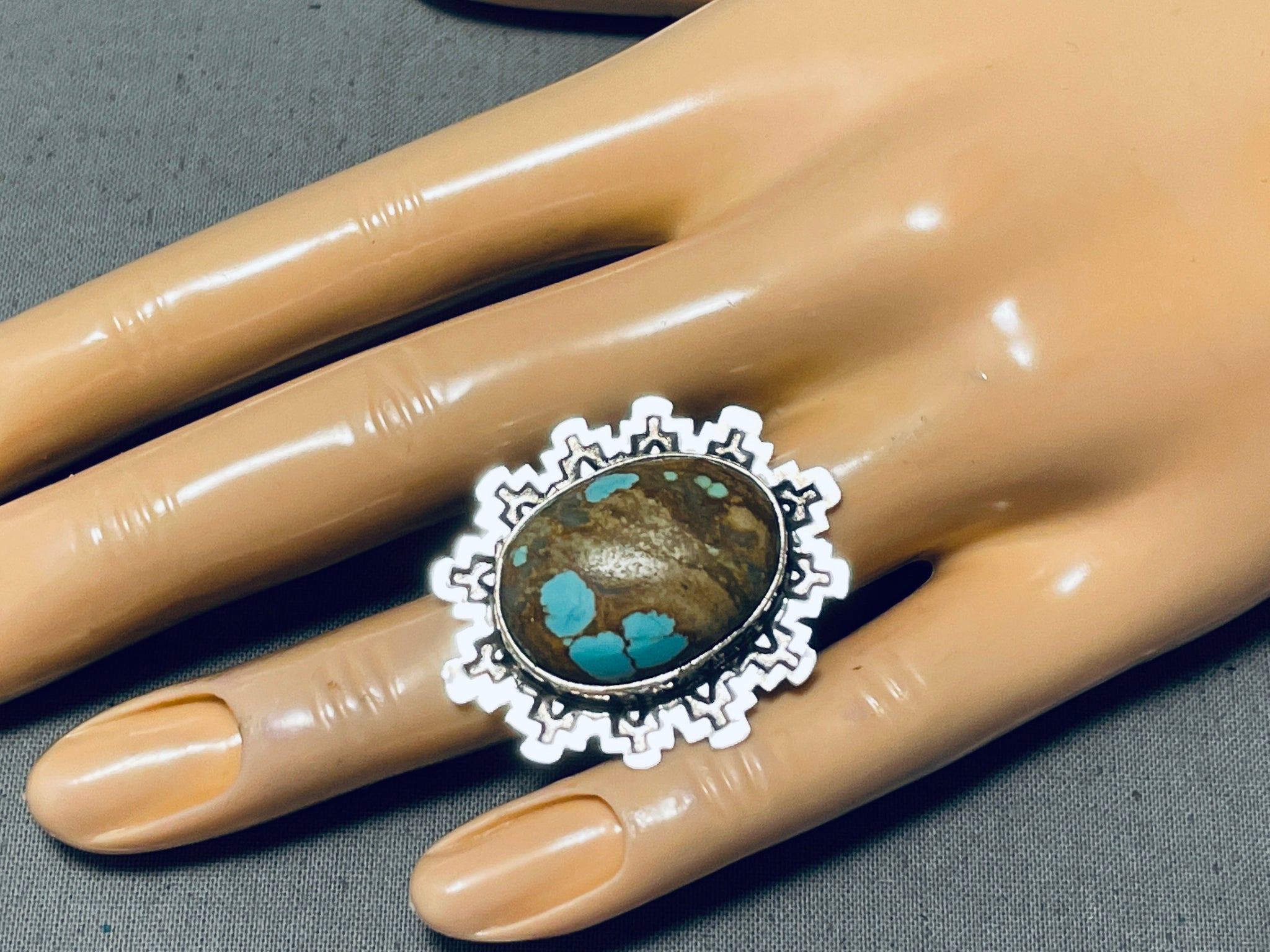 Amazing San Felipe Signed 8 Turquoise Sterling Silver Ring