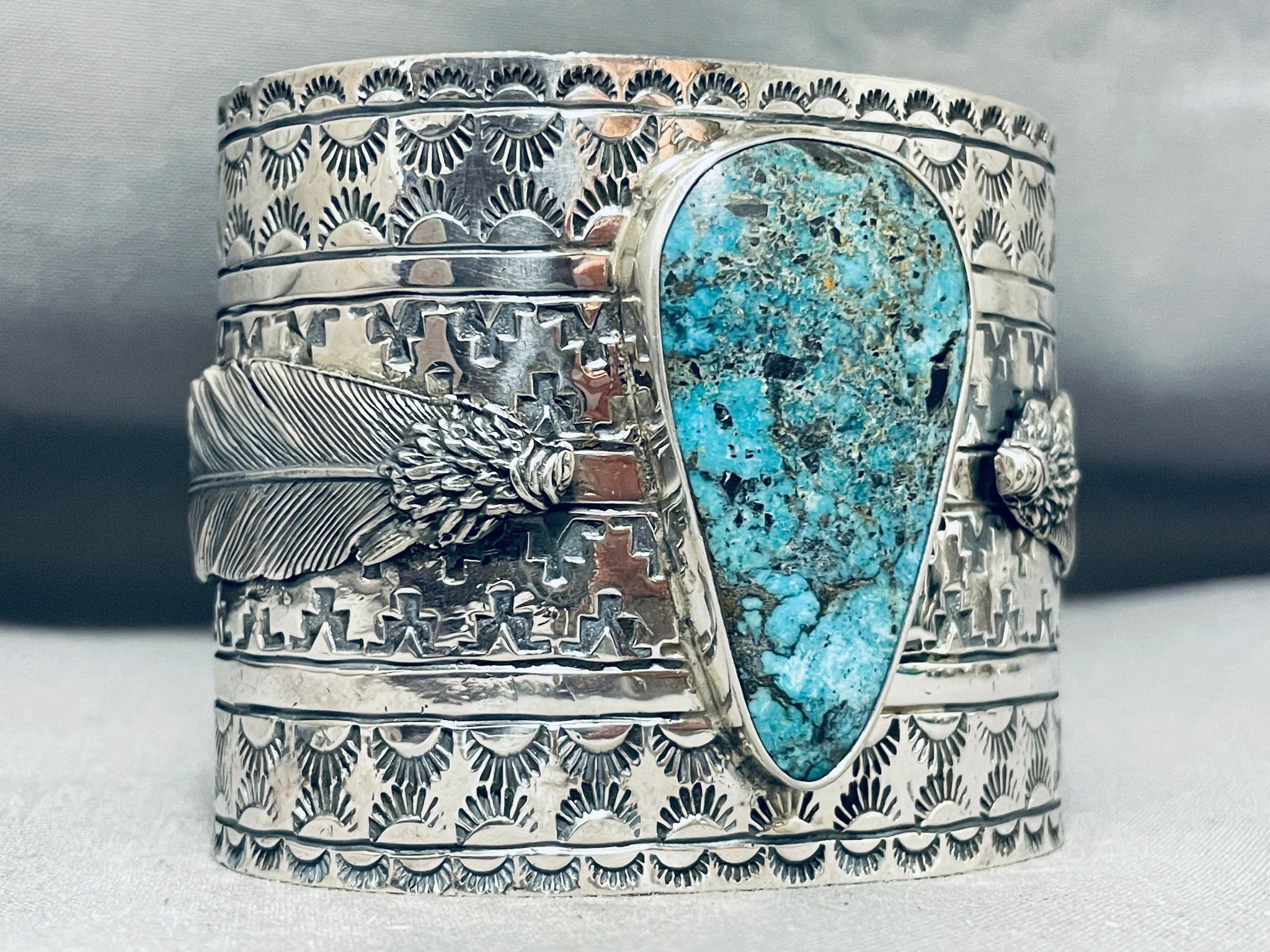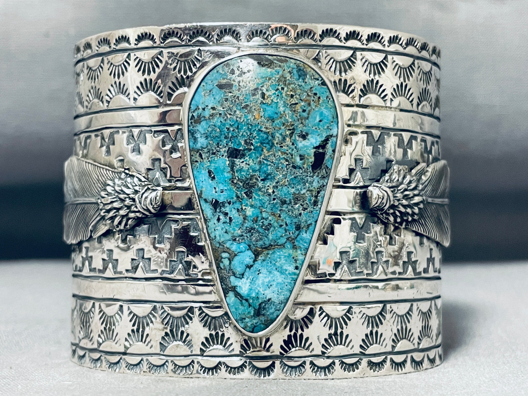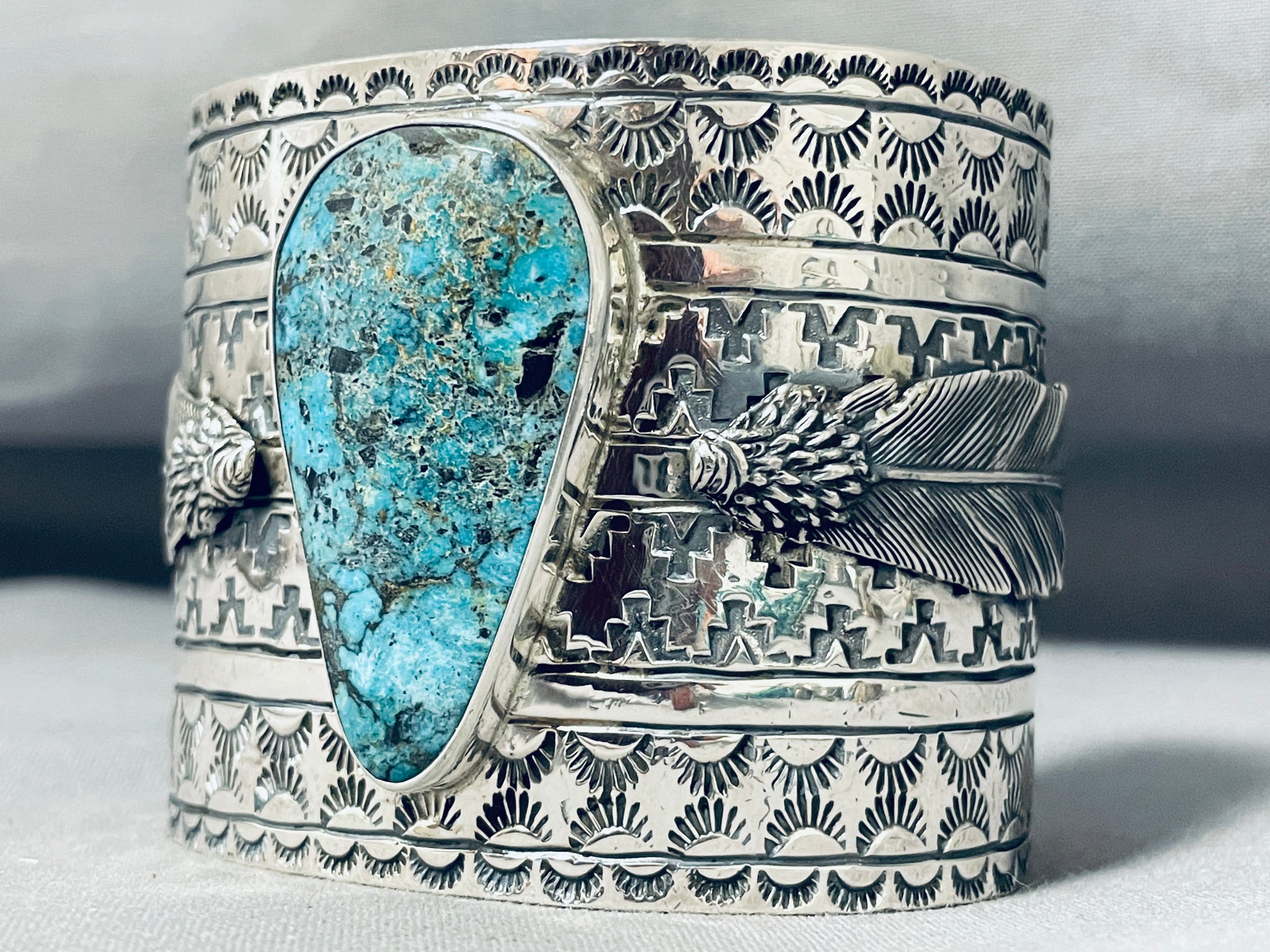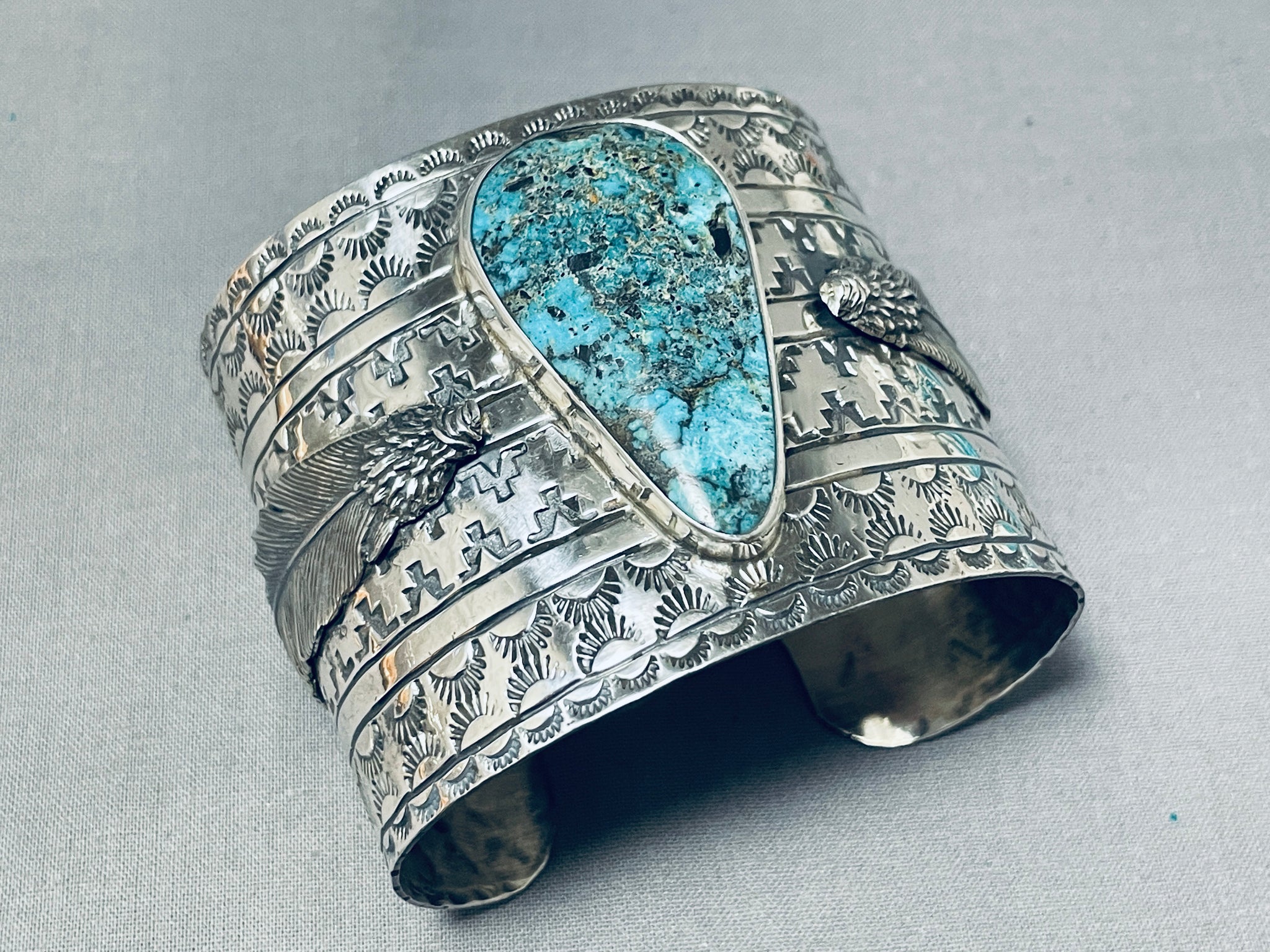 Amazing San Felipe Signed Blue Diamond Turquoise Sterling Silver Huge Bracelet