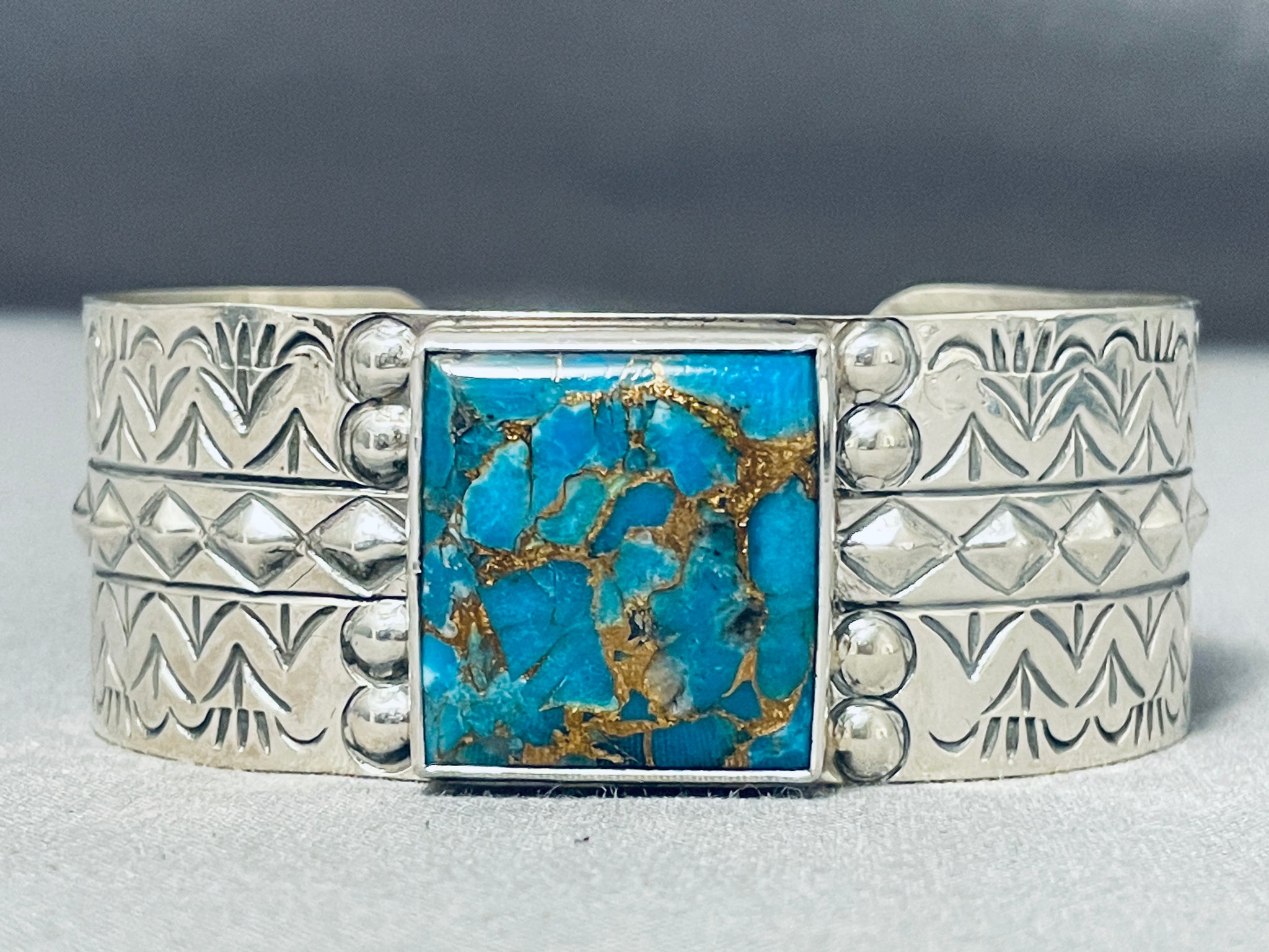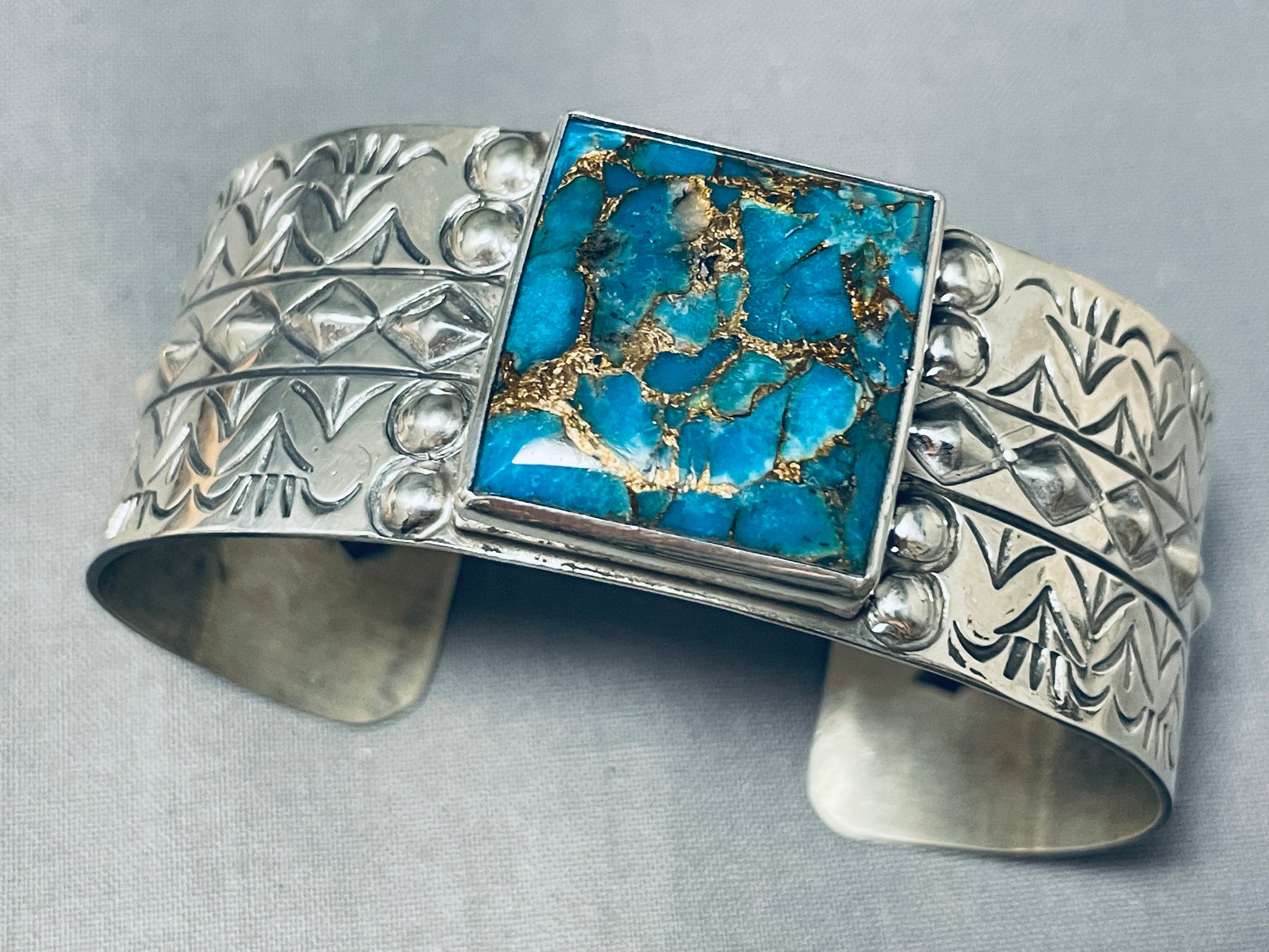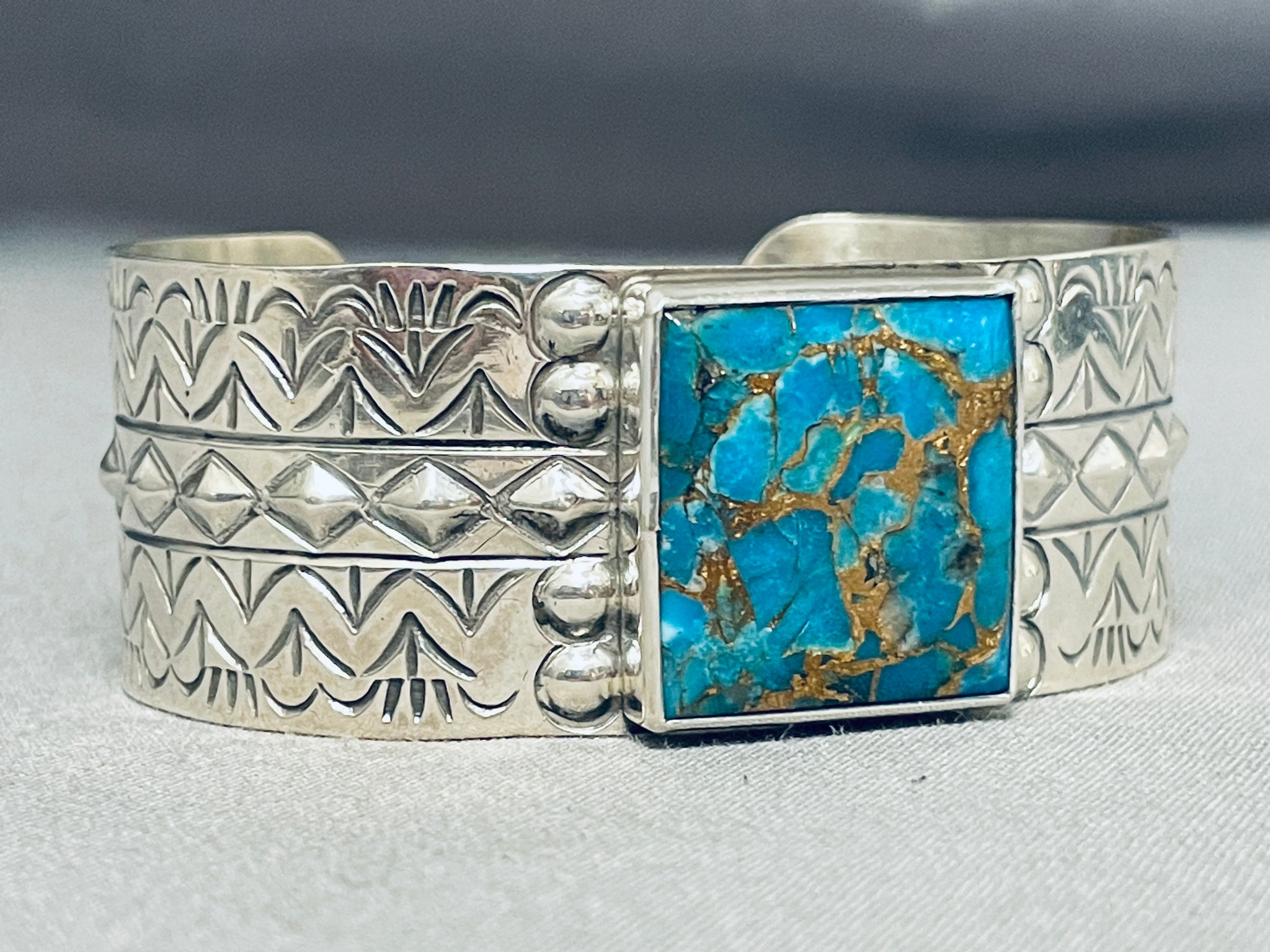 Amazing San Felipe Signed Pilot Mountain Sterling Silver Large Bracelet