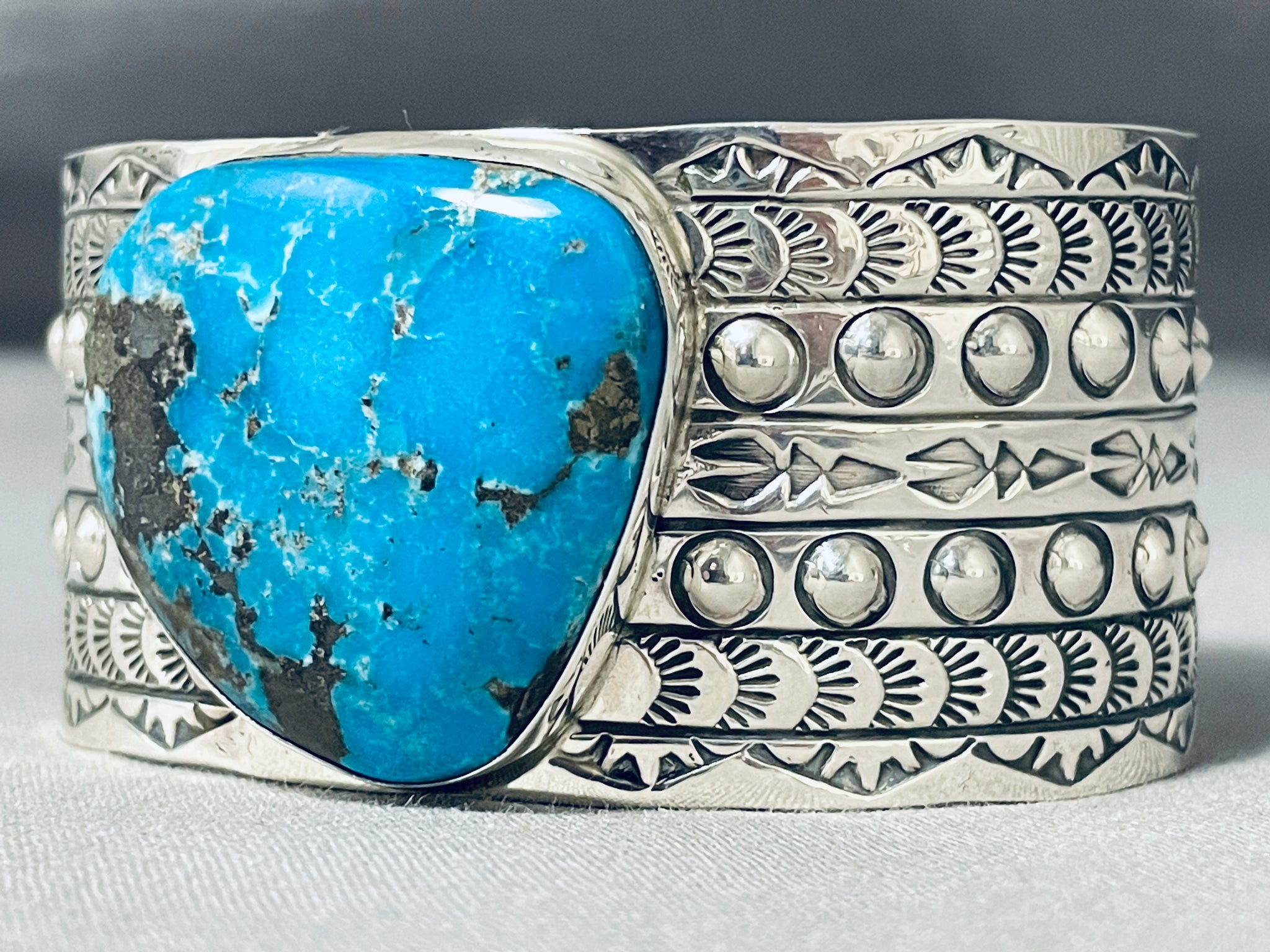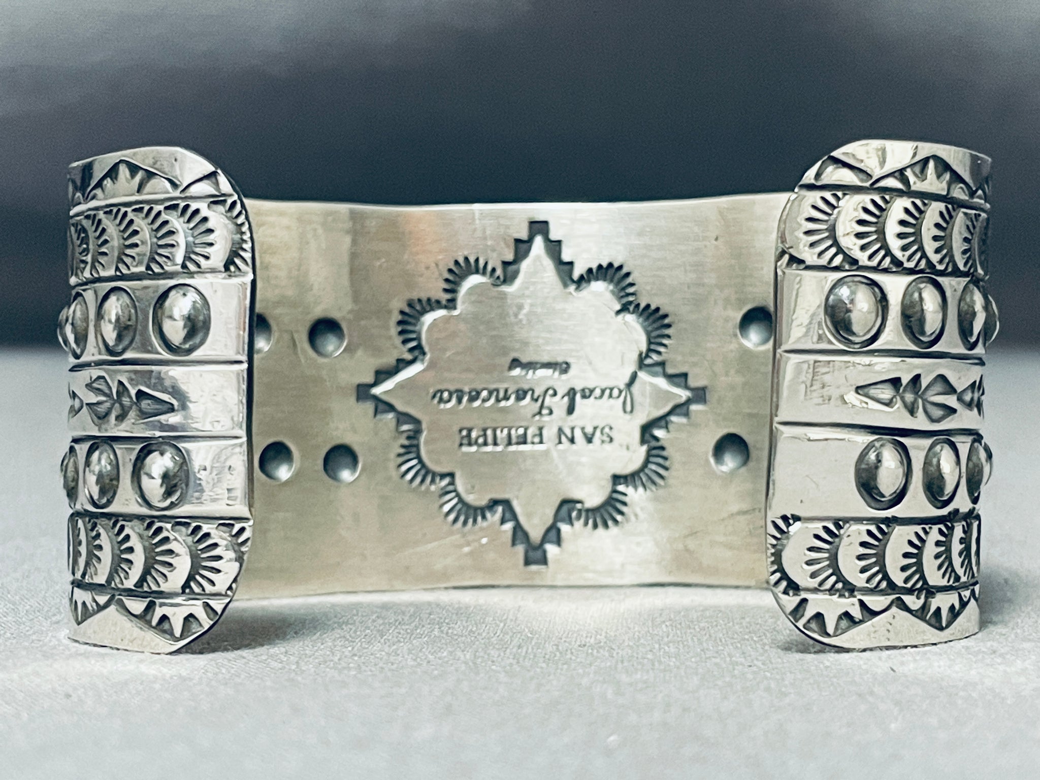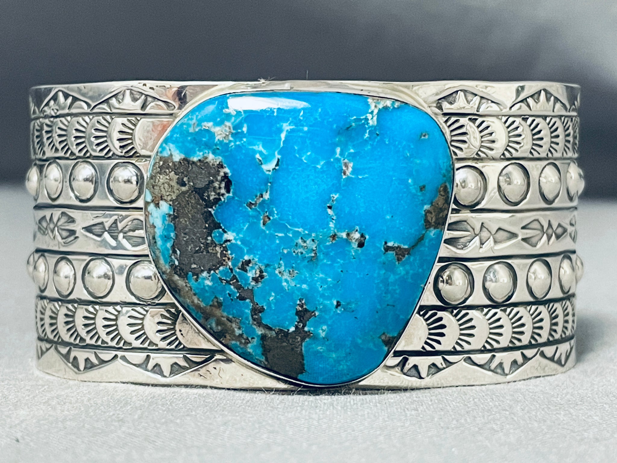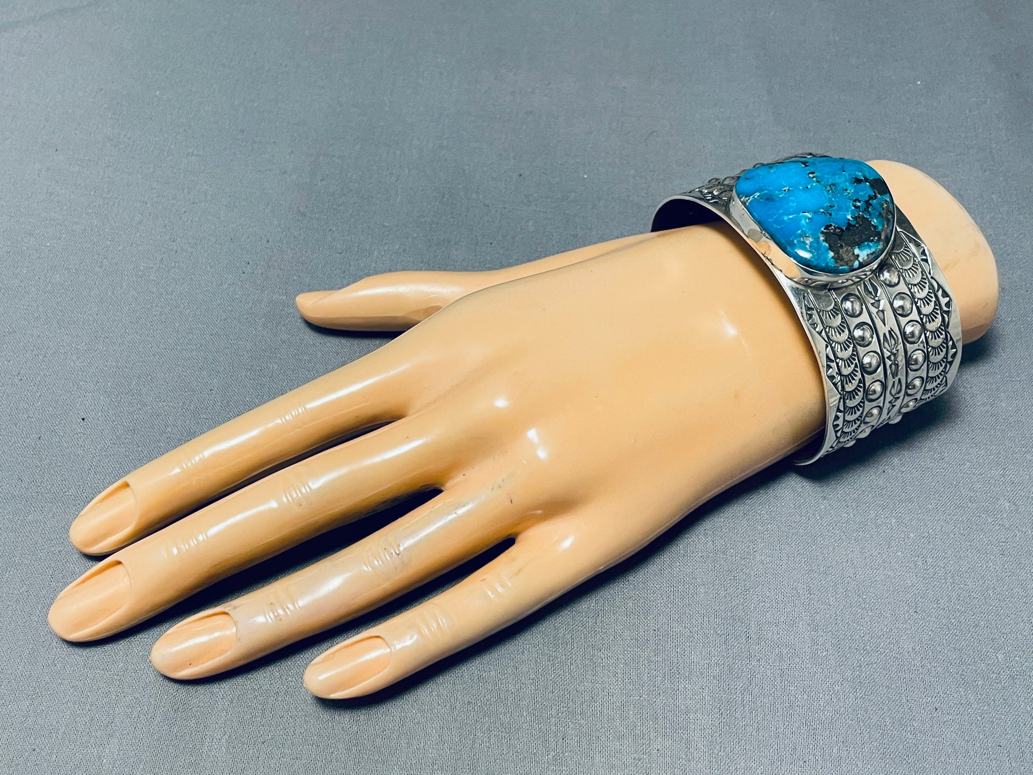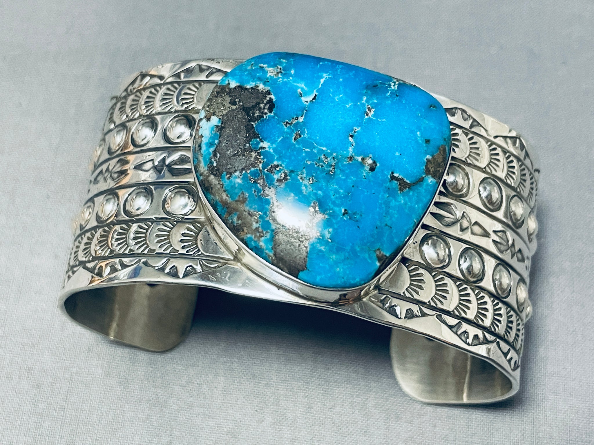 Amazing San Felipe Signed Pilot Mountain Turquoise Sterling Silver Huge Bracelet