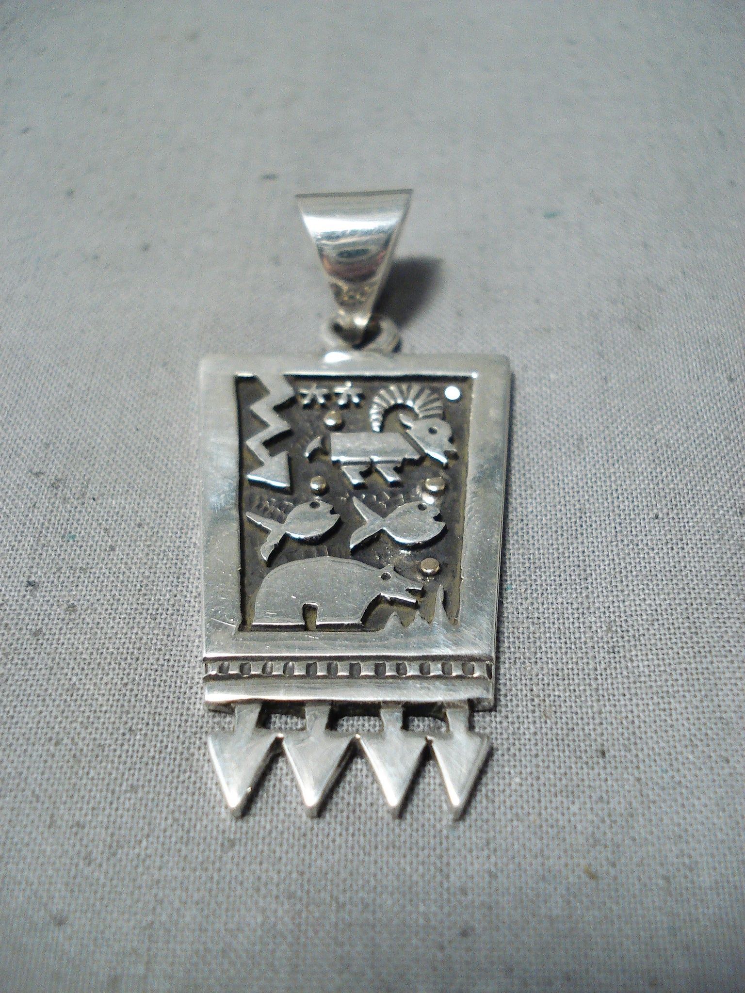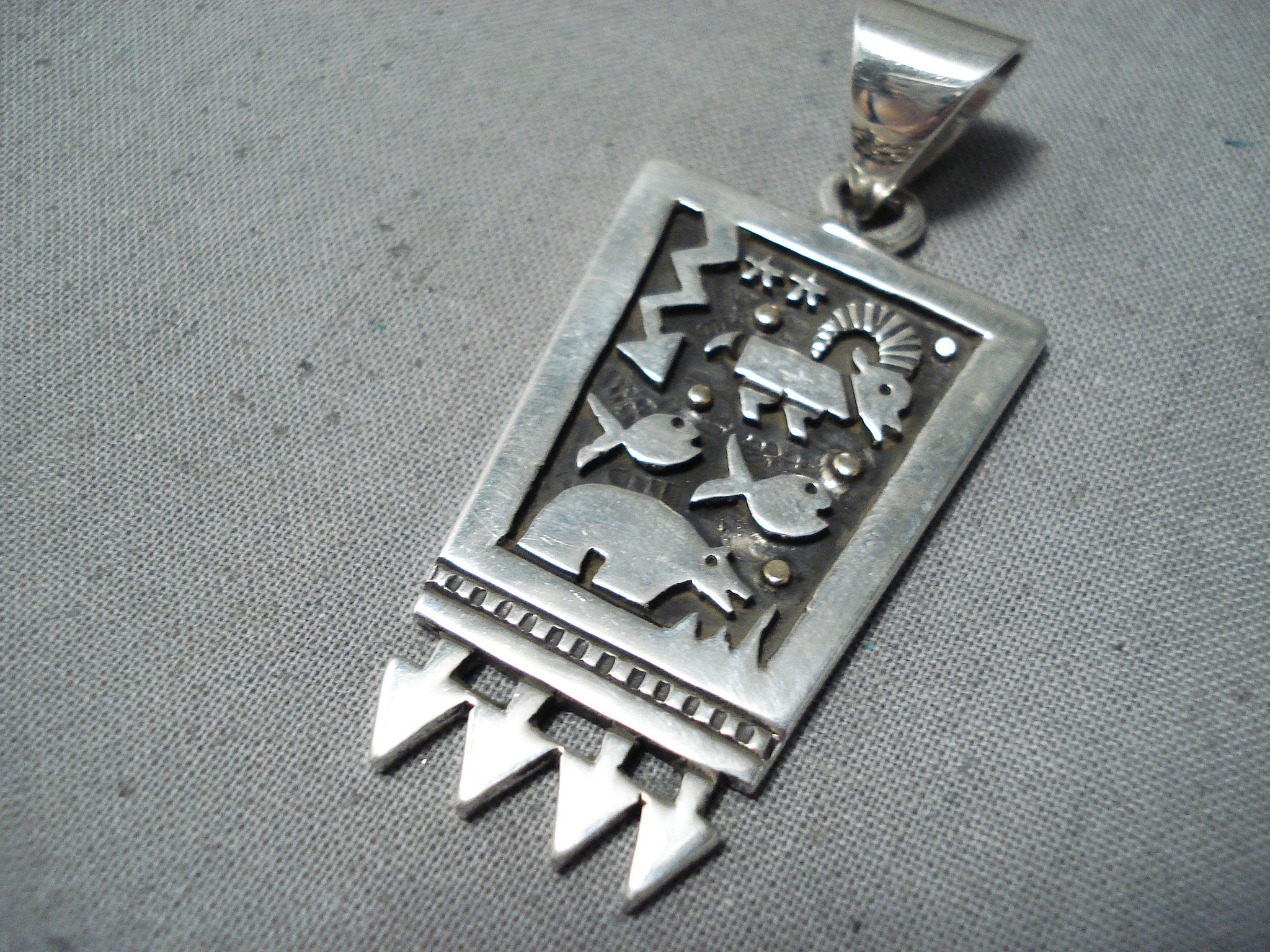 Amazing Santo Domingo Native American Sterling Silver 14k Gold Pendant