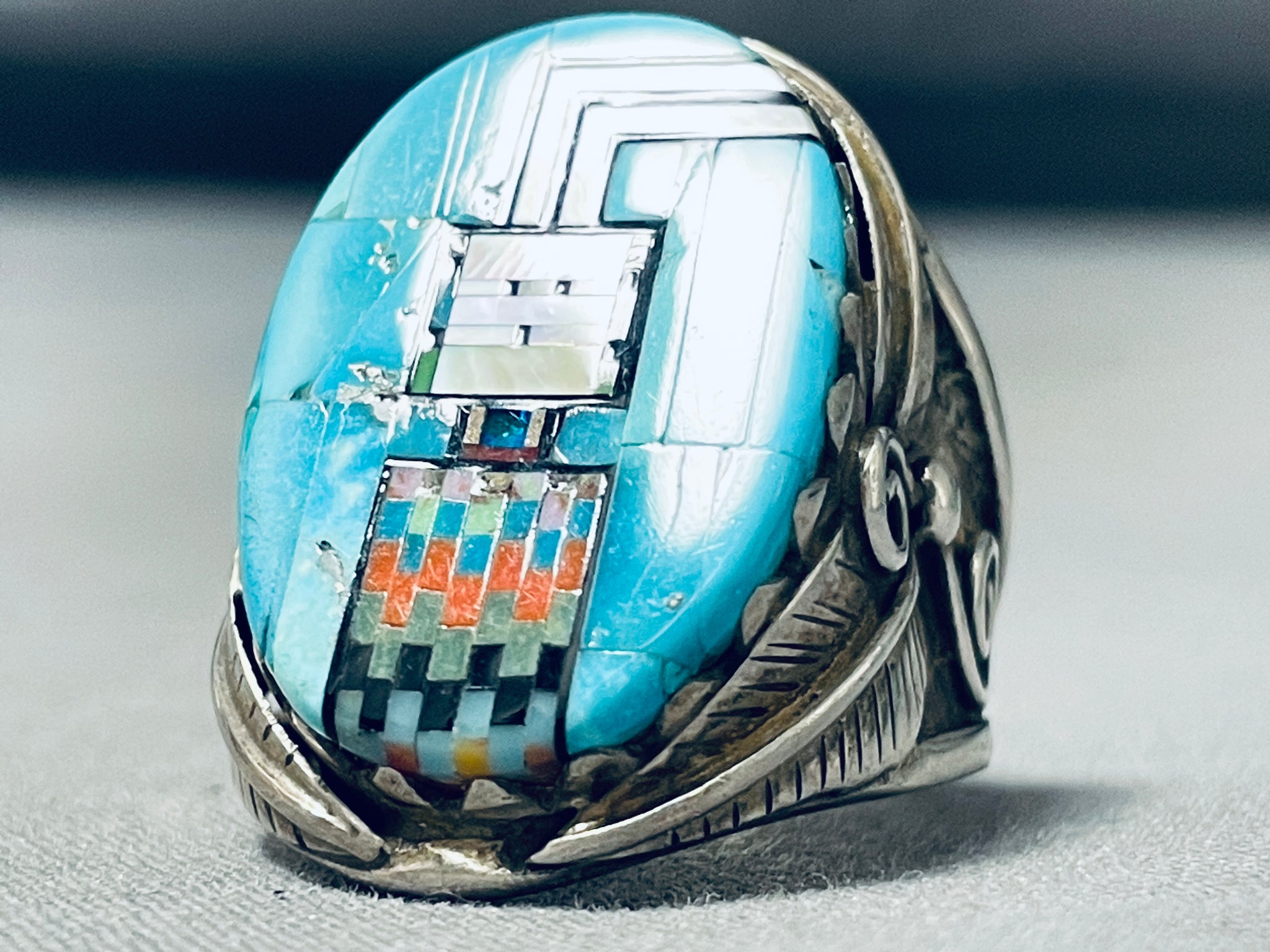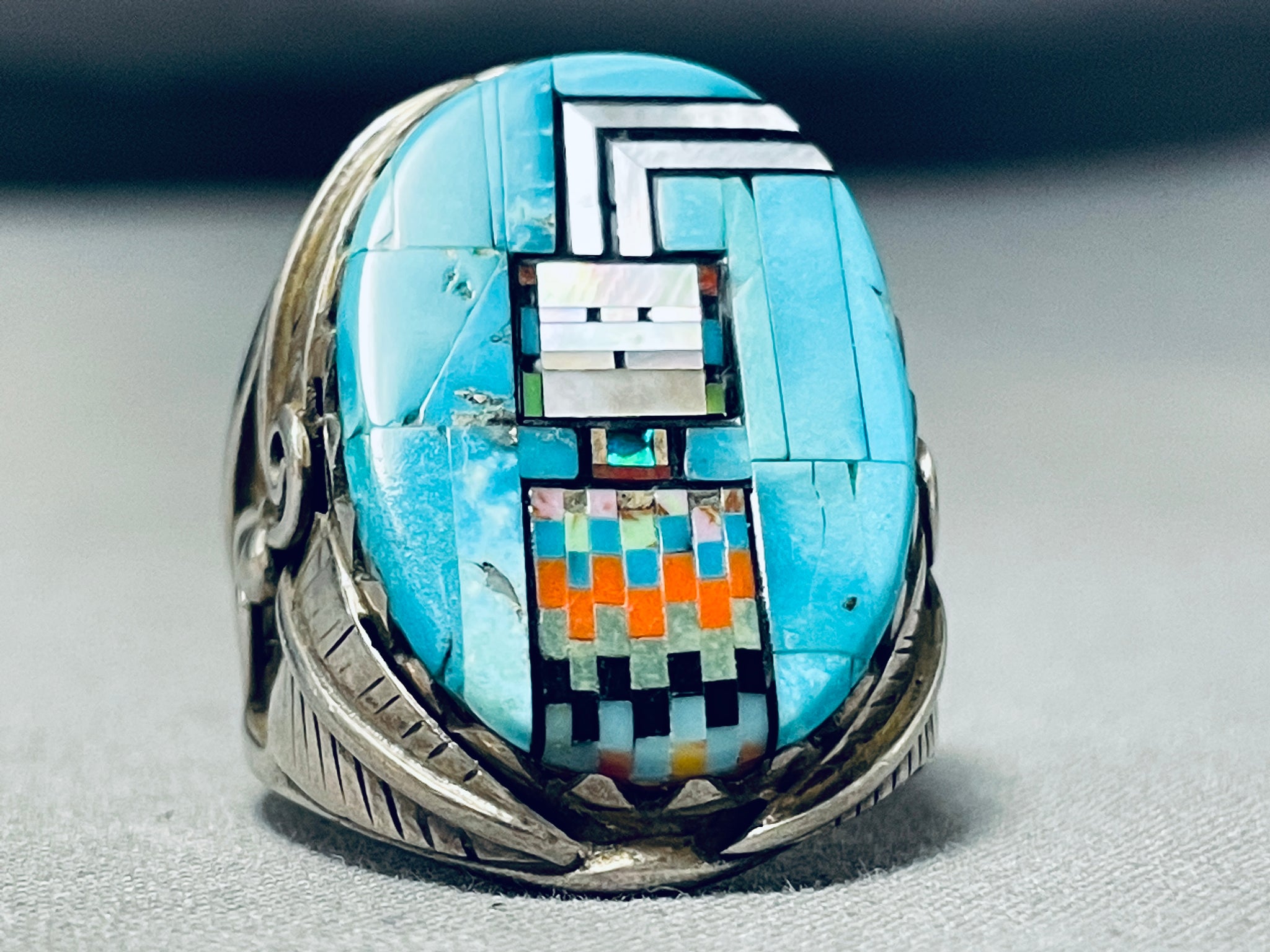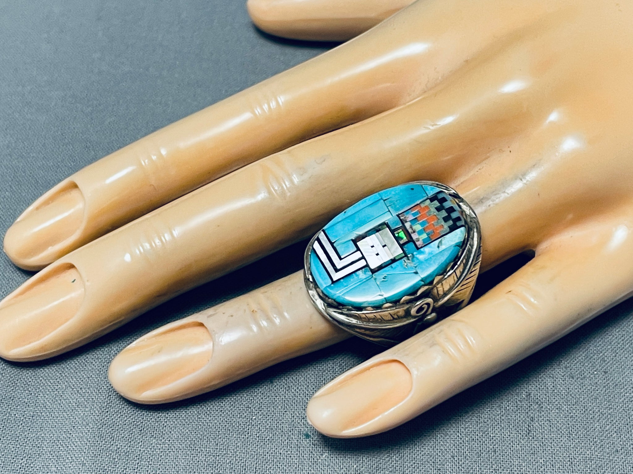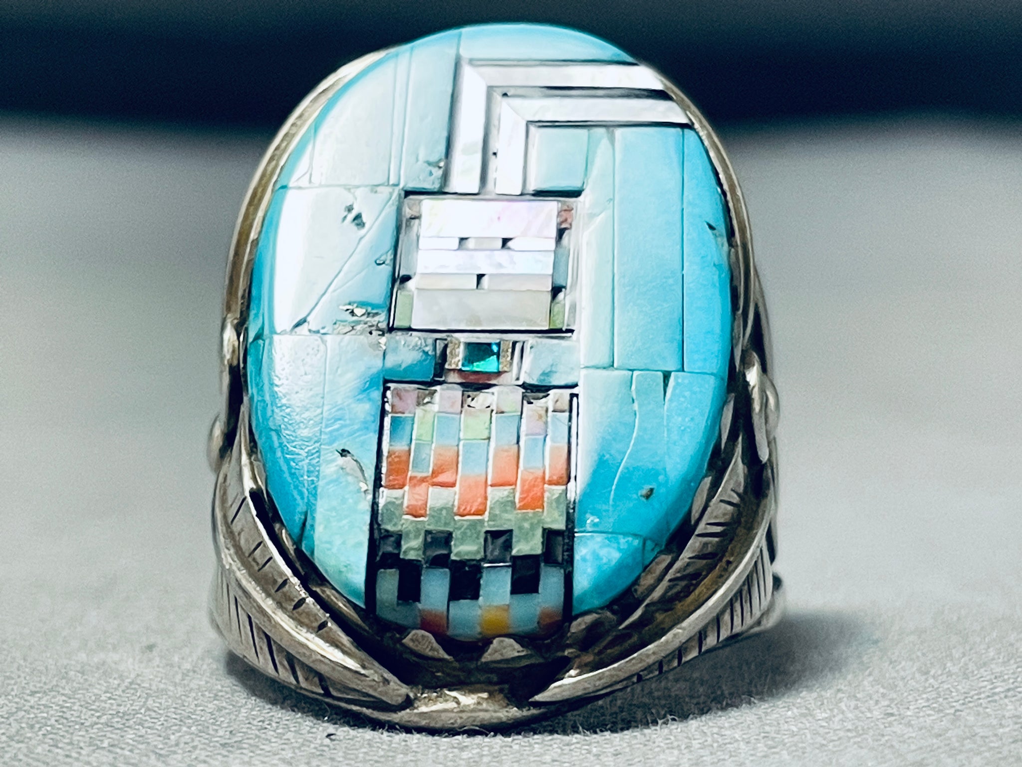 Amazing Southwest Inlay Turquoise Coral Opal Kachina Sterling Silver Ring