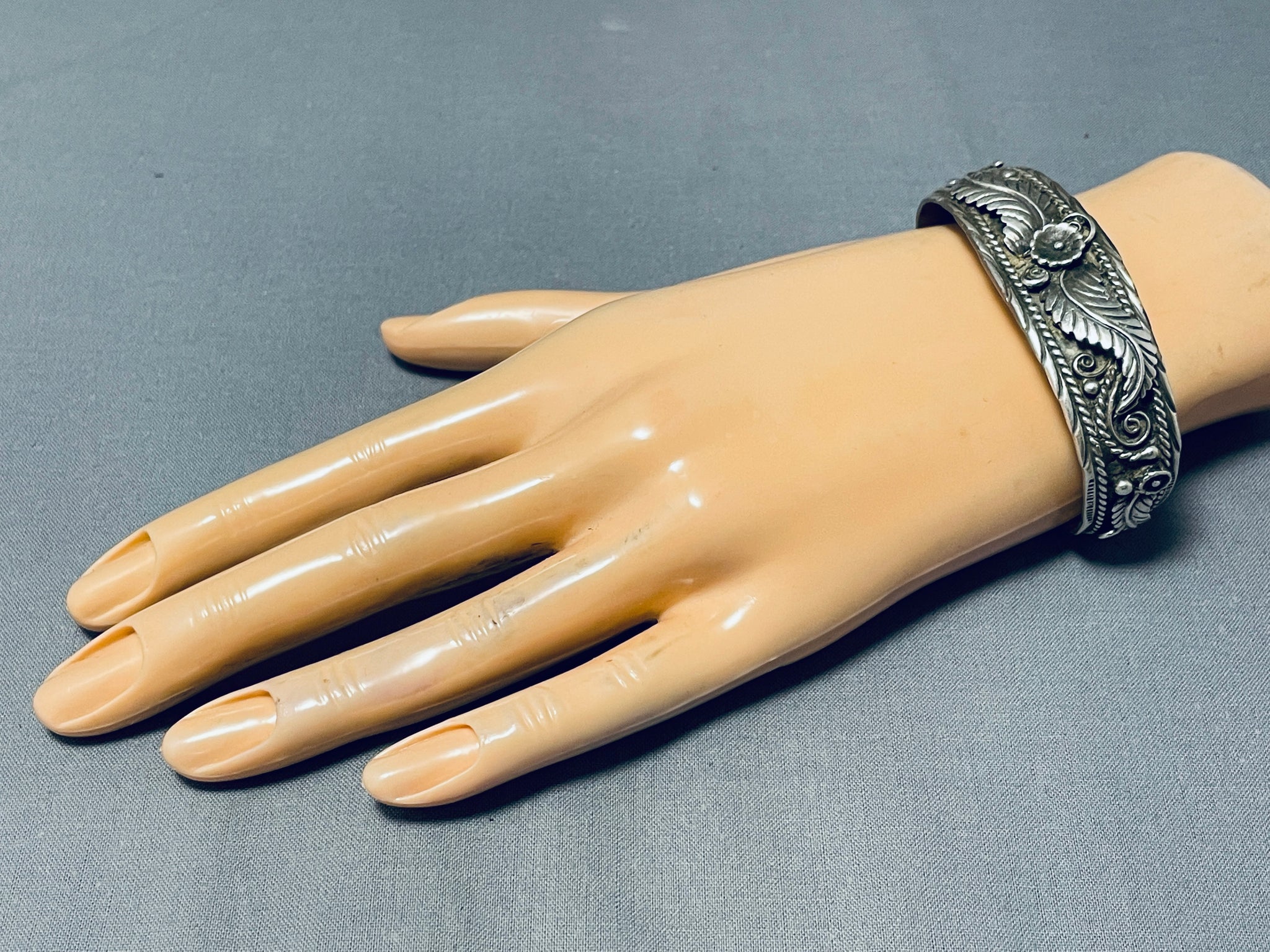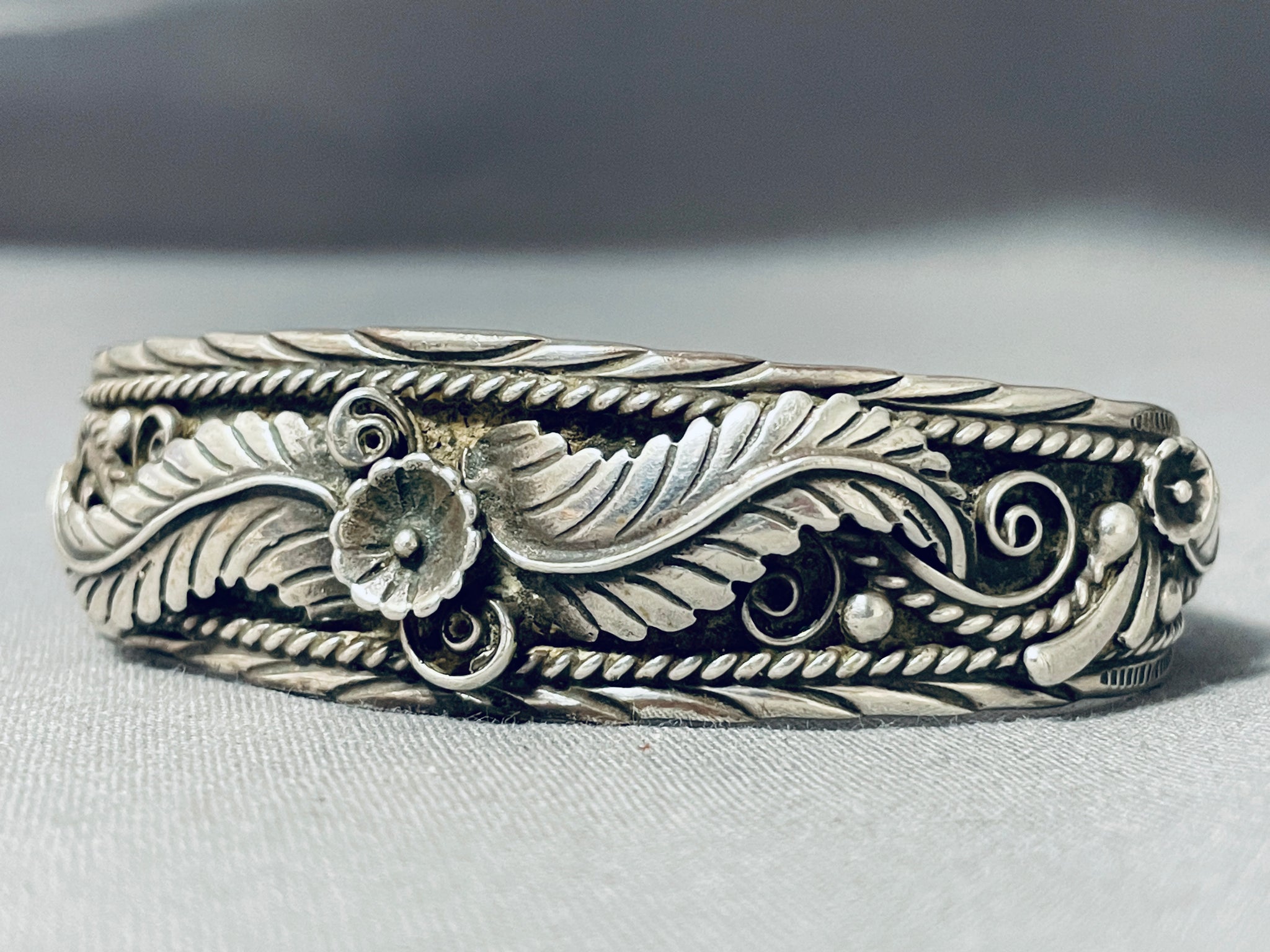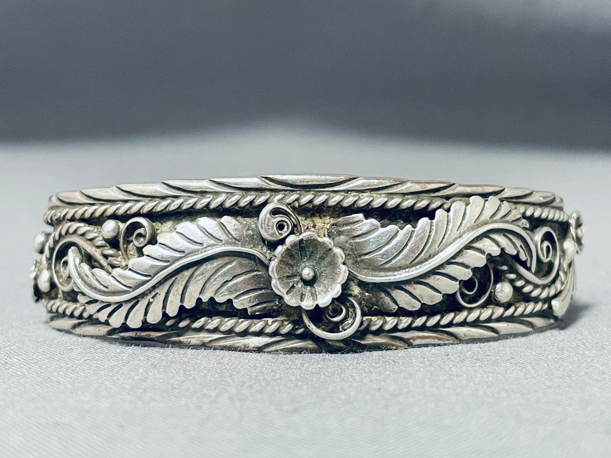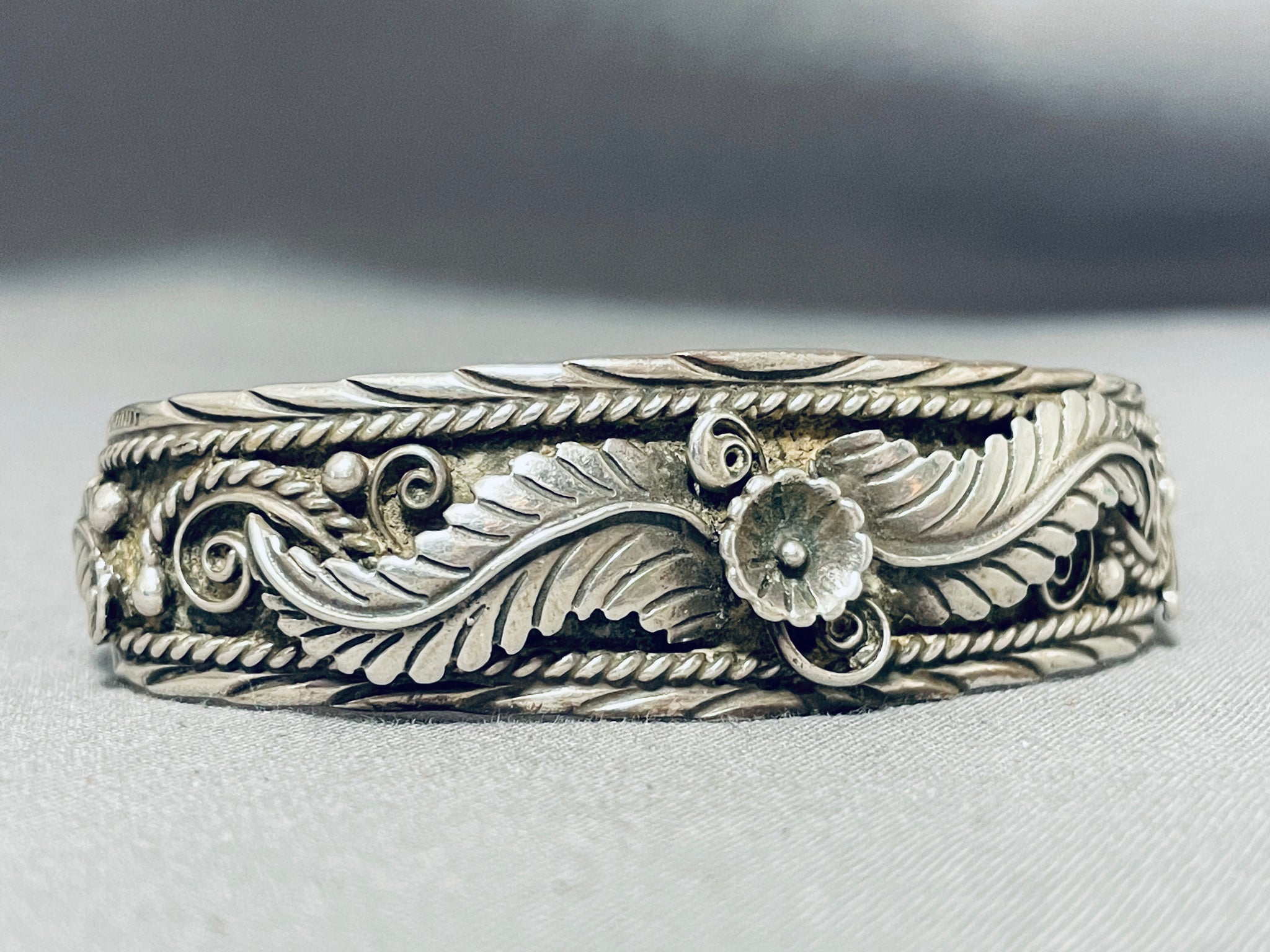 Amazing Sue Calabaza Vintage Native American Navajo Sterling Silver Bracelet
