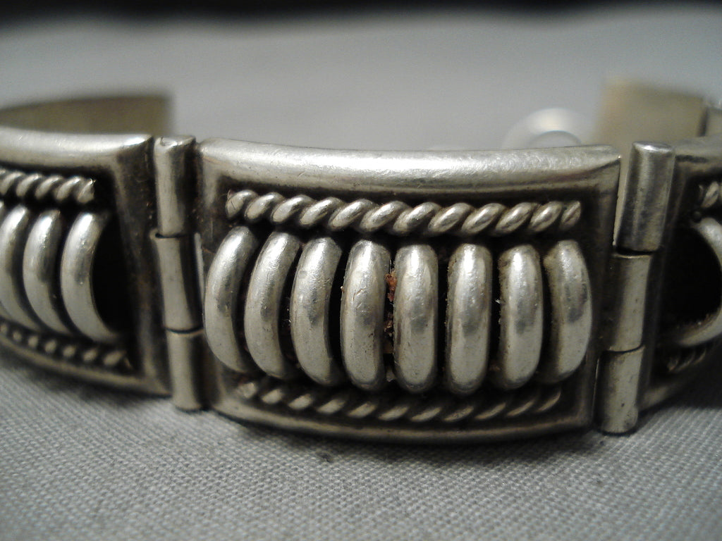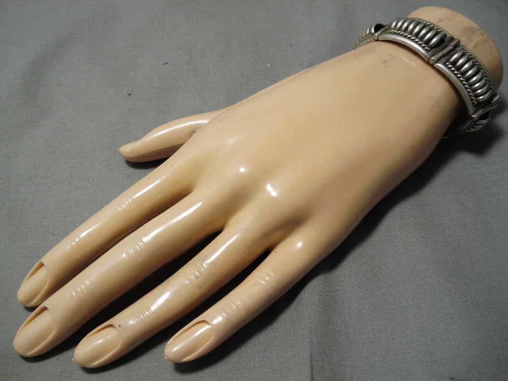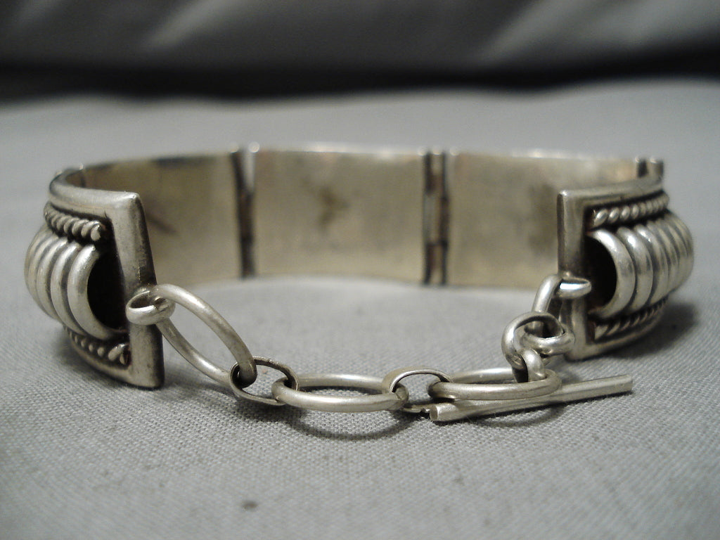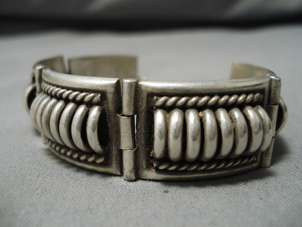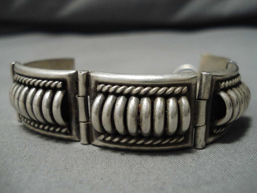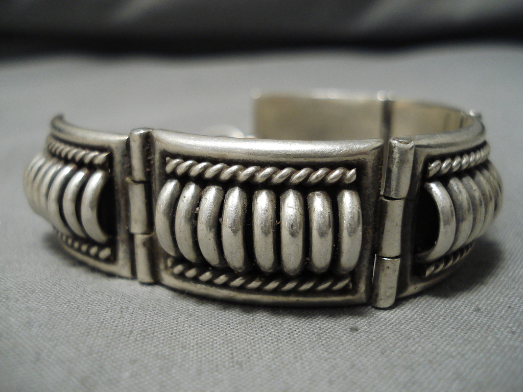 Amazing Tom Curtis Vintage Native American Navajo Hinged Station Sterling Silver Bracelet