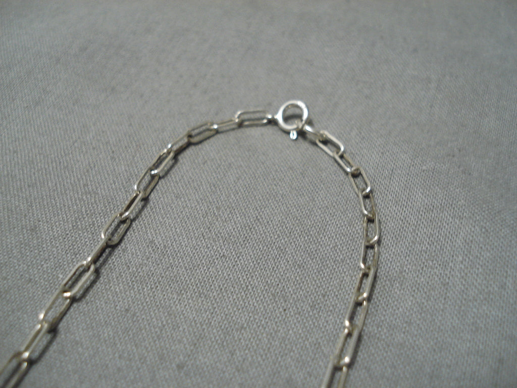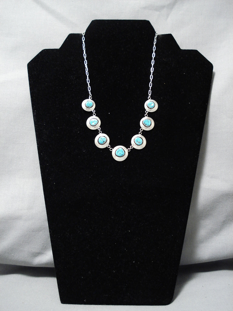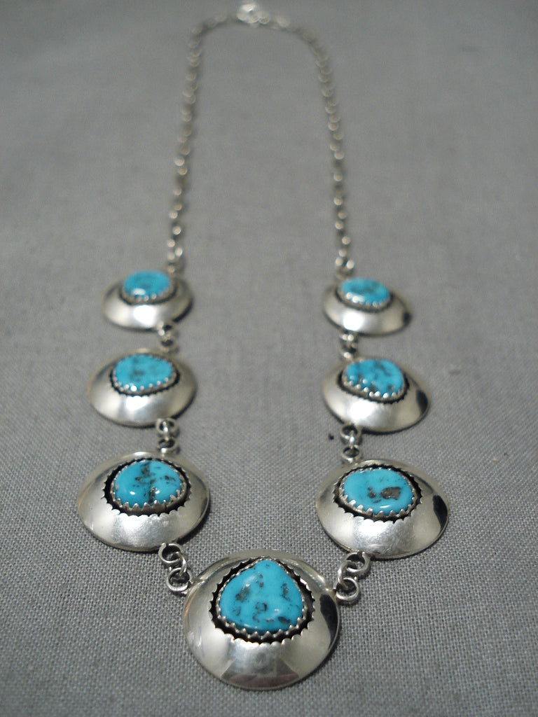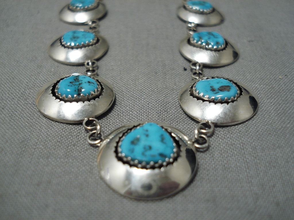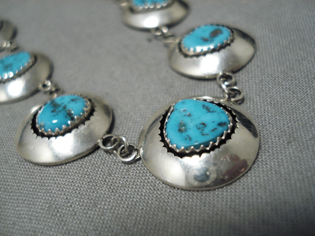 Amazing Vintage Native American Navajo Anderson Deepset Turquoise Sterling Silver Necklace