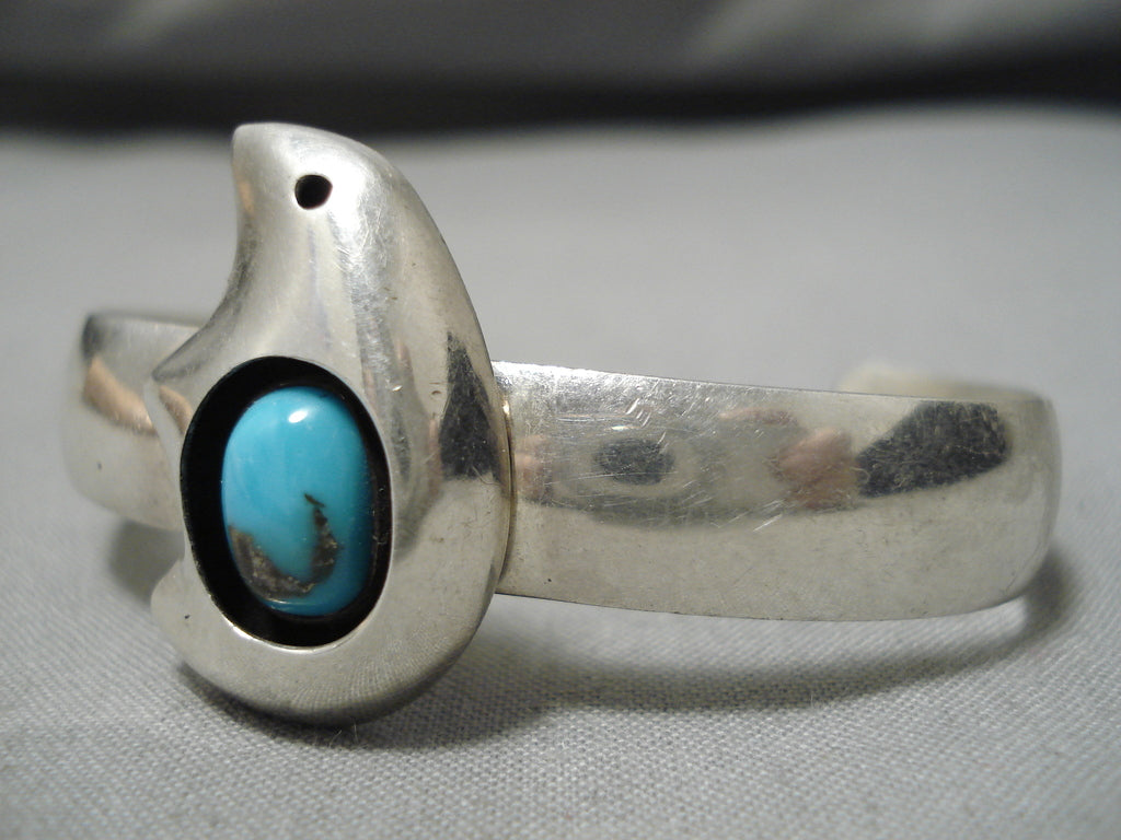 Amazing Vintage Native American Navajo Bear Turquoise Sterling Silver Bracelet