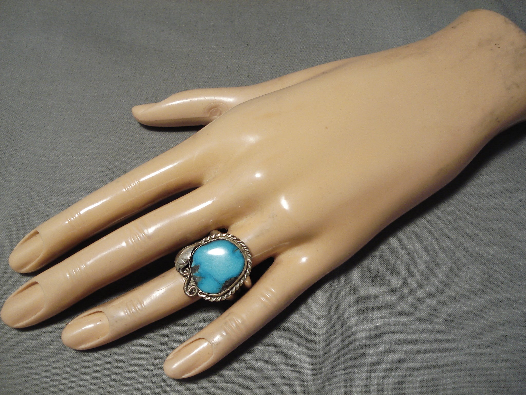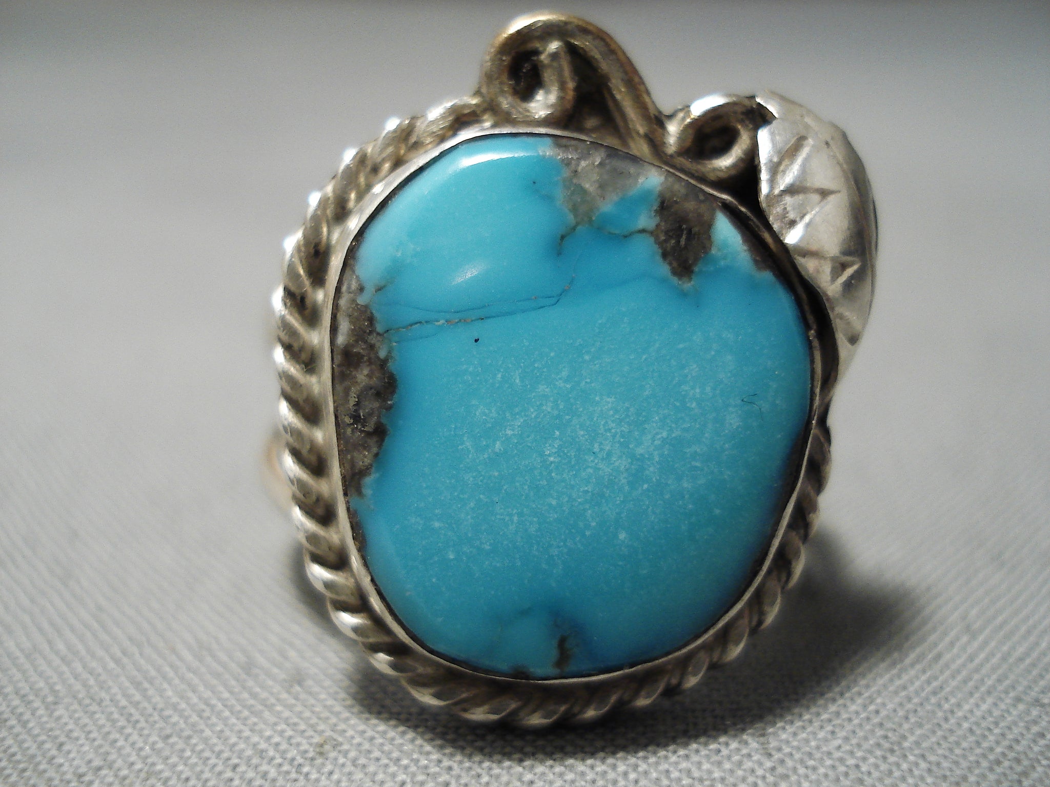 Amazing Vintage Native American Navajo Bisbee Turquoise Sterling Silver Ring Old