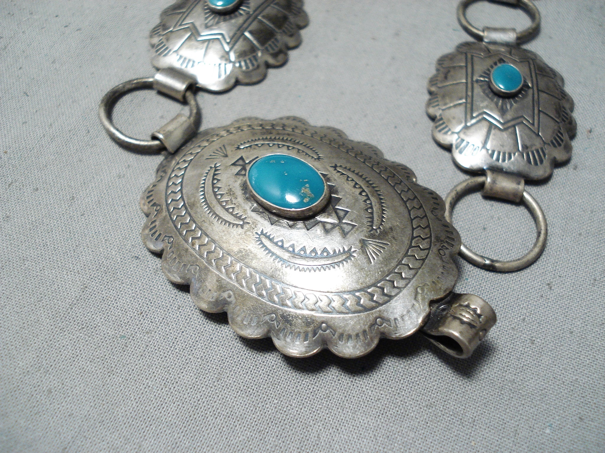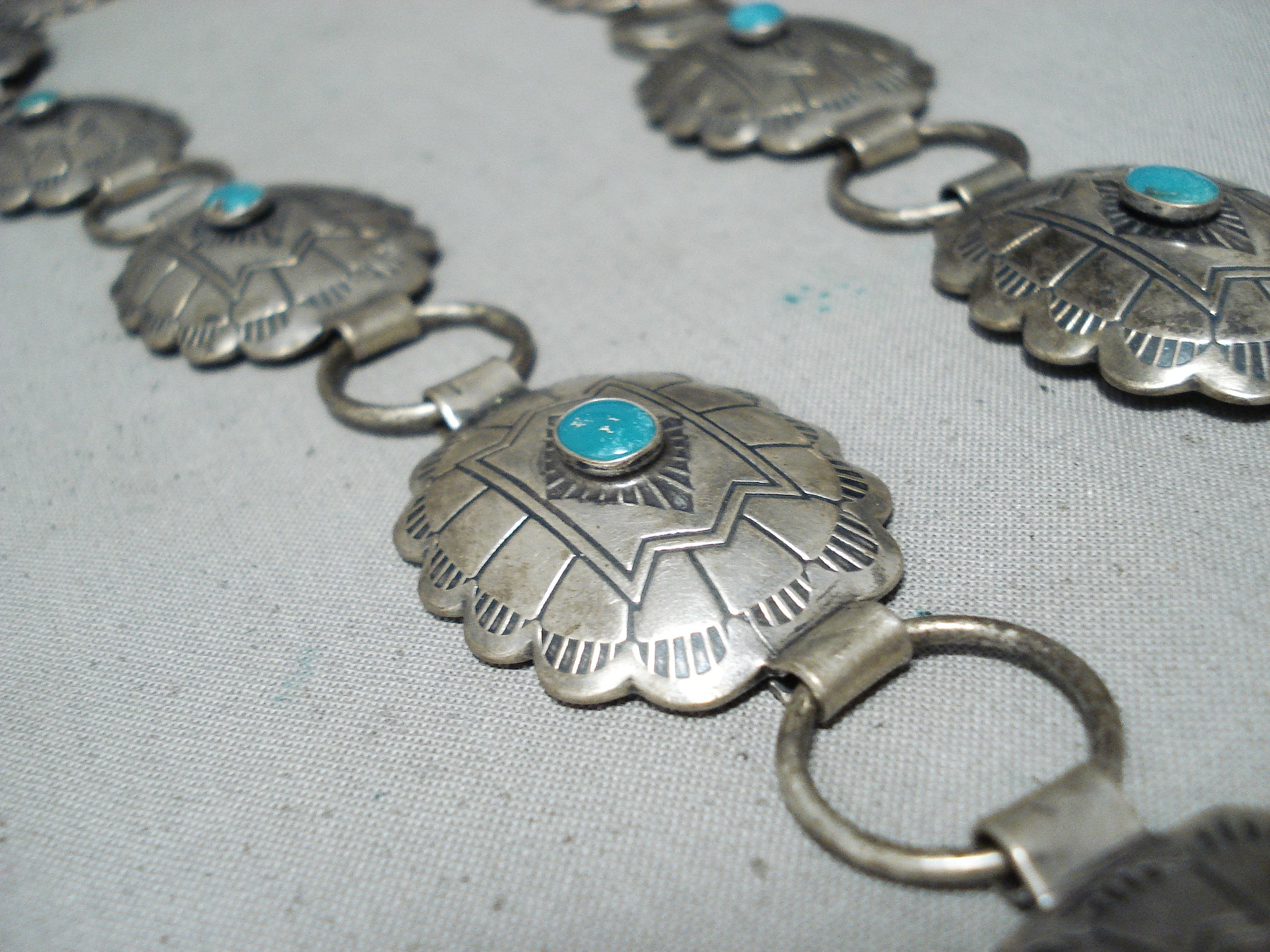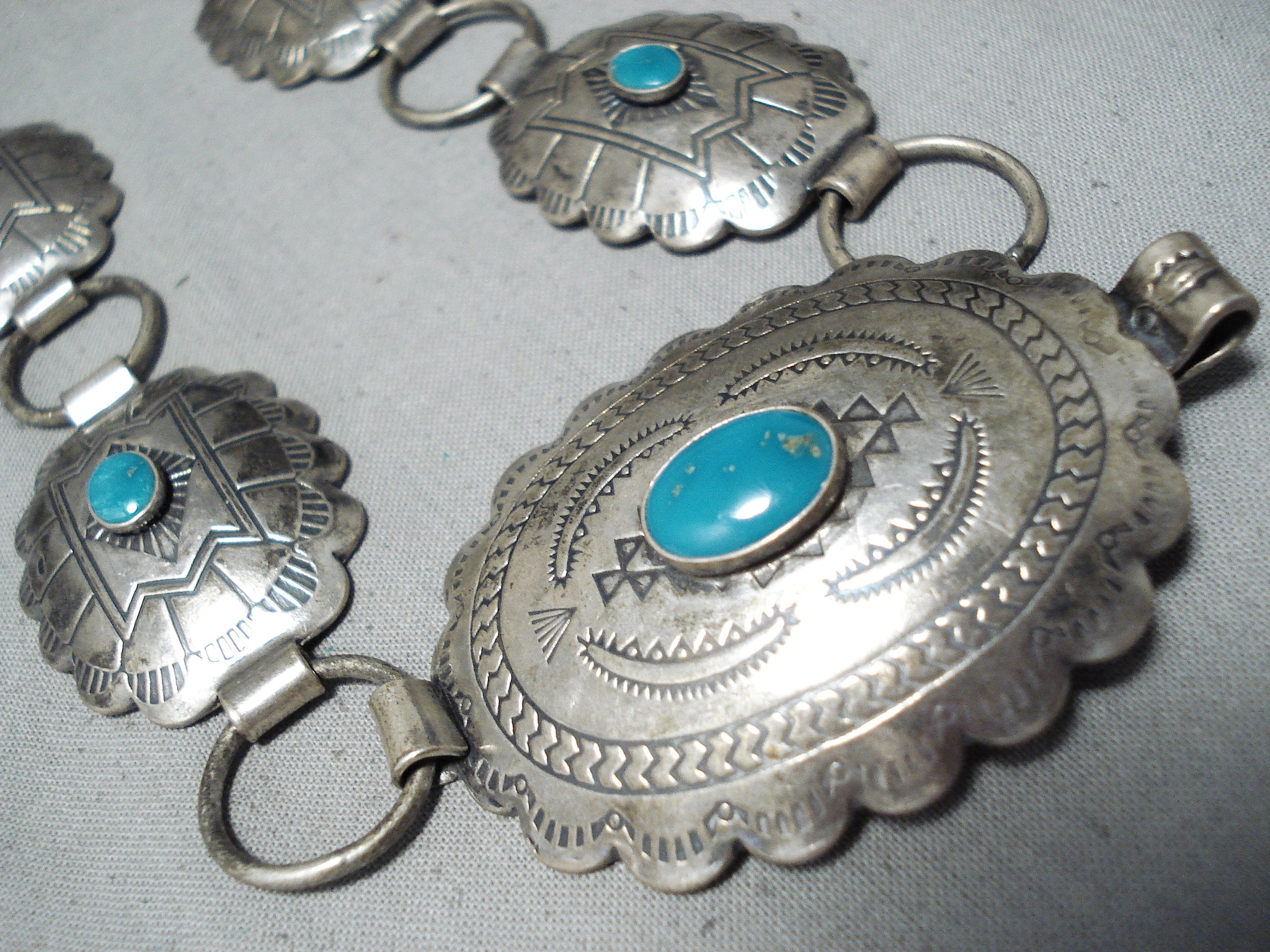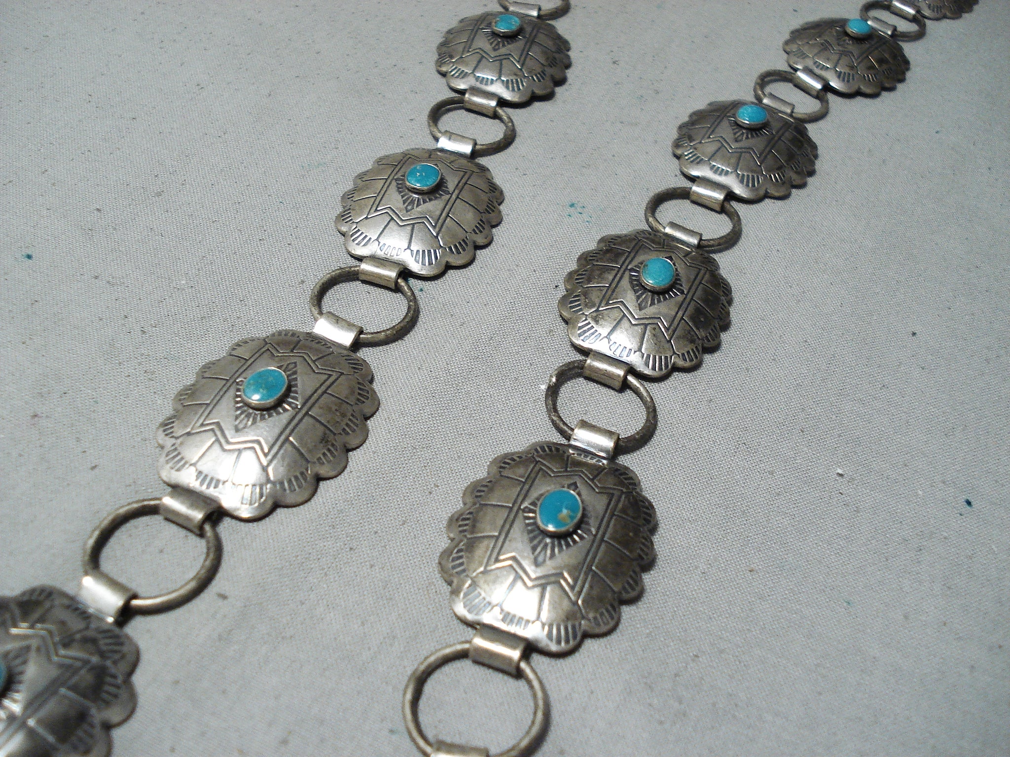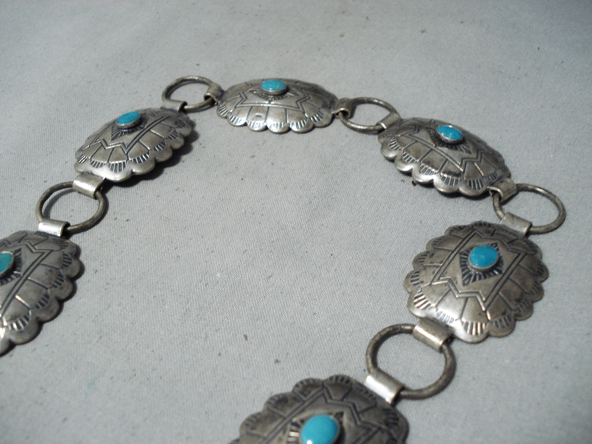 Amazing Vintage Native American Navajo Blue Gem Turquoise Sterling Silver Concho Belt Old