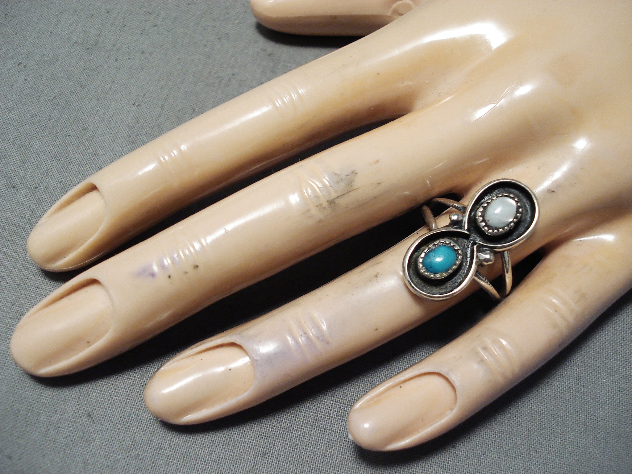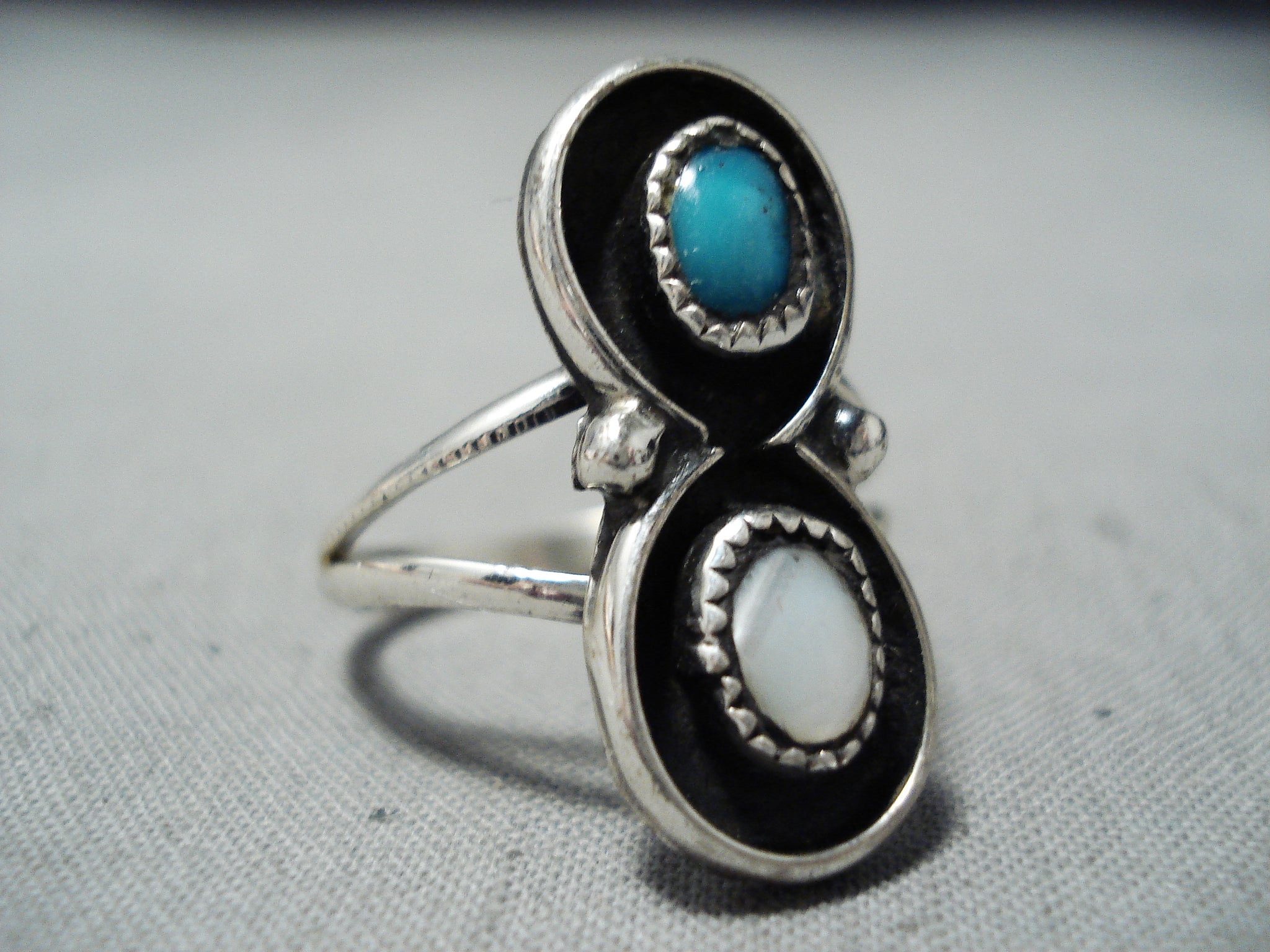 Amazing Vintage Native American Navajo Blue Turquoise Pearl Sterling Silver Ring Old