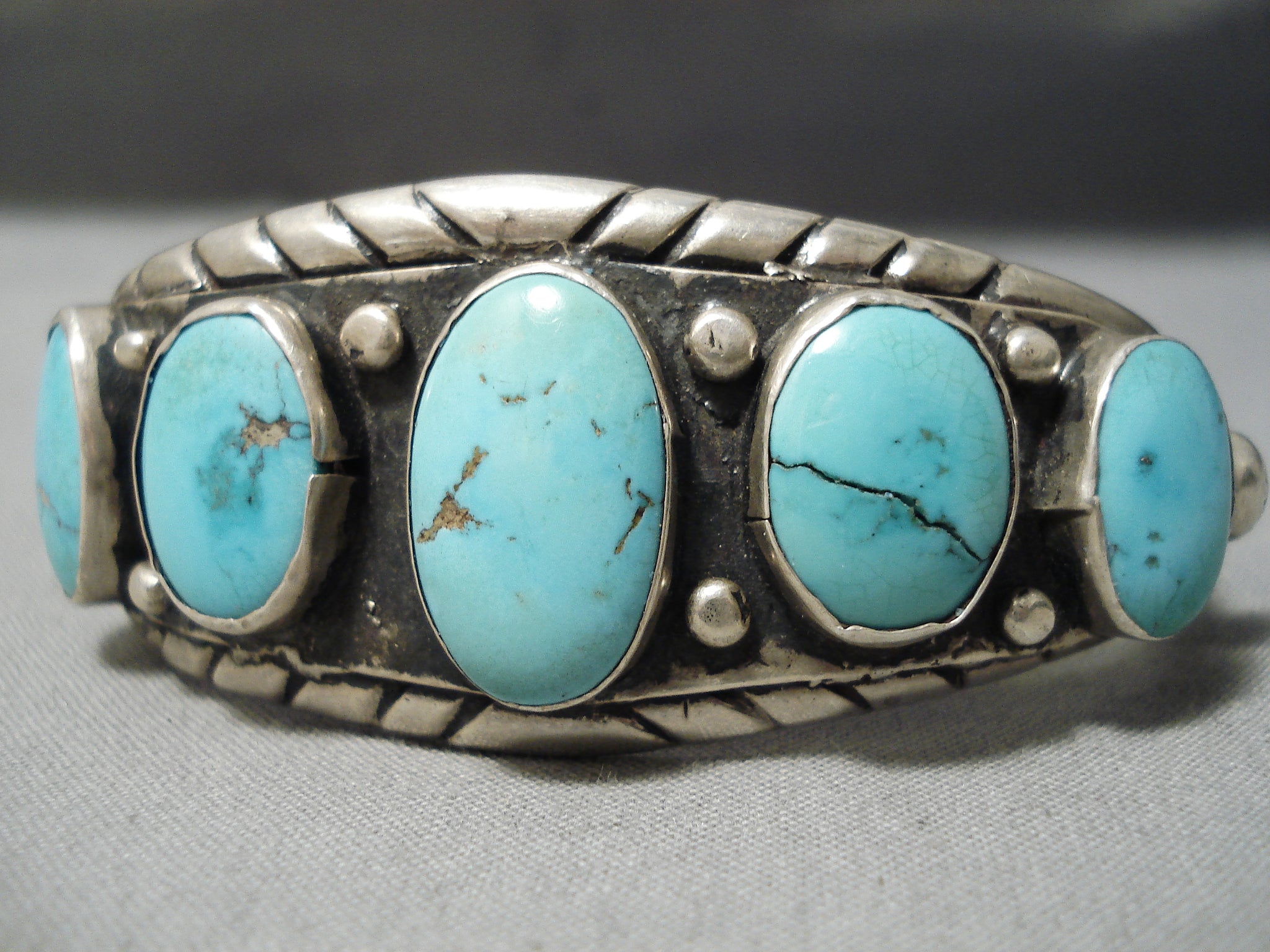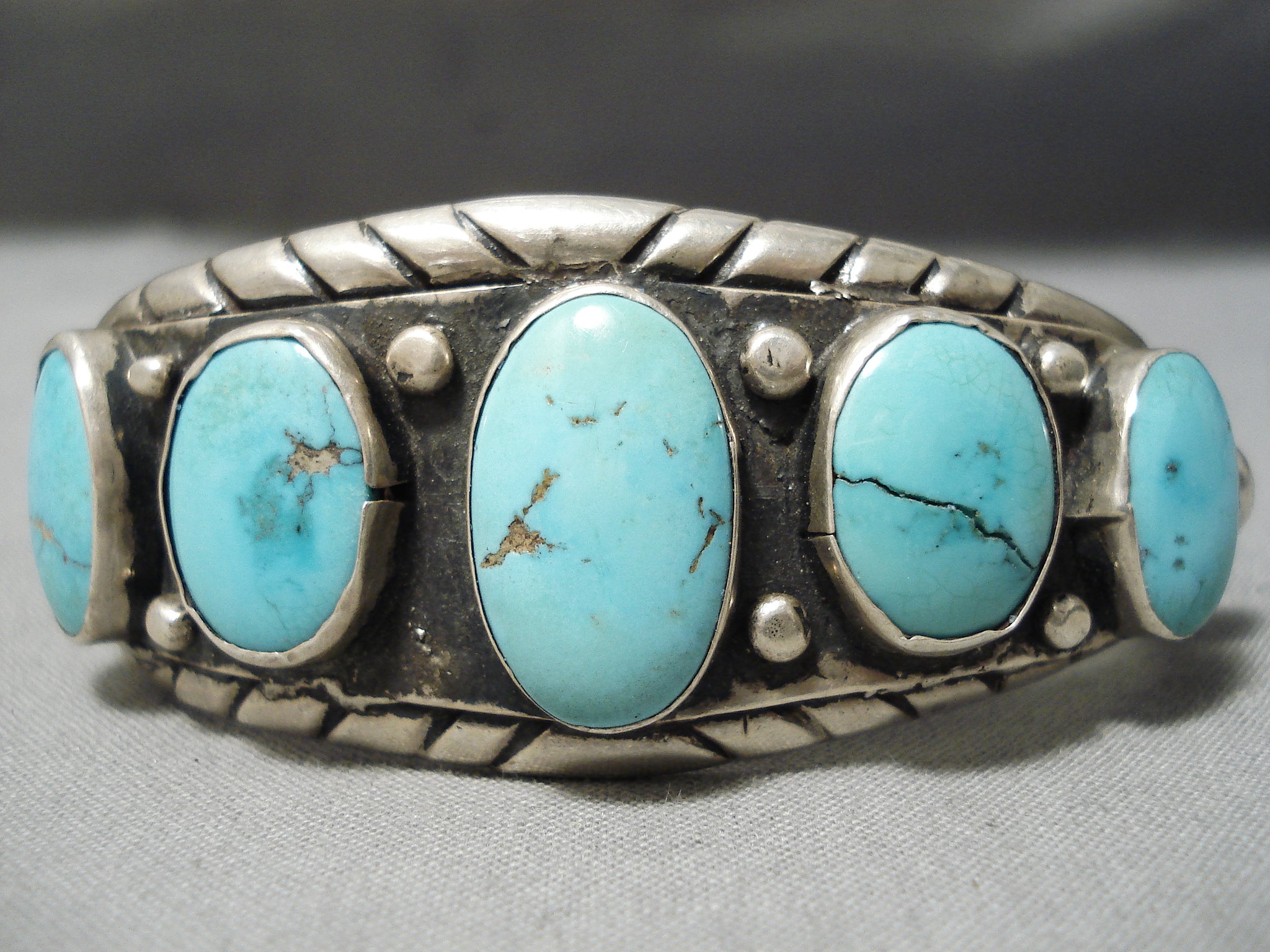 Amazing Vintage Native American Navajo Carico Lake Turquoise Sterling Silver Bracelet Old