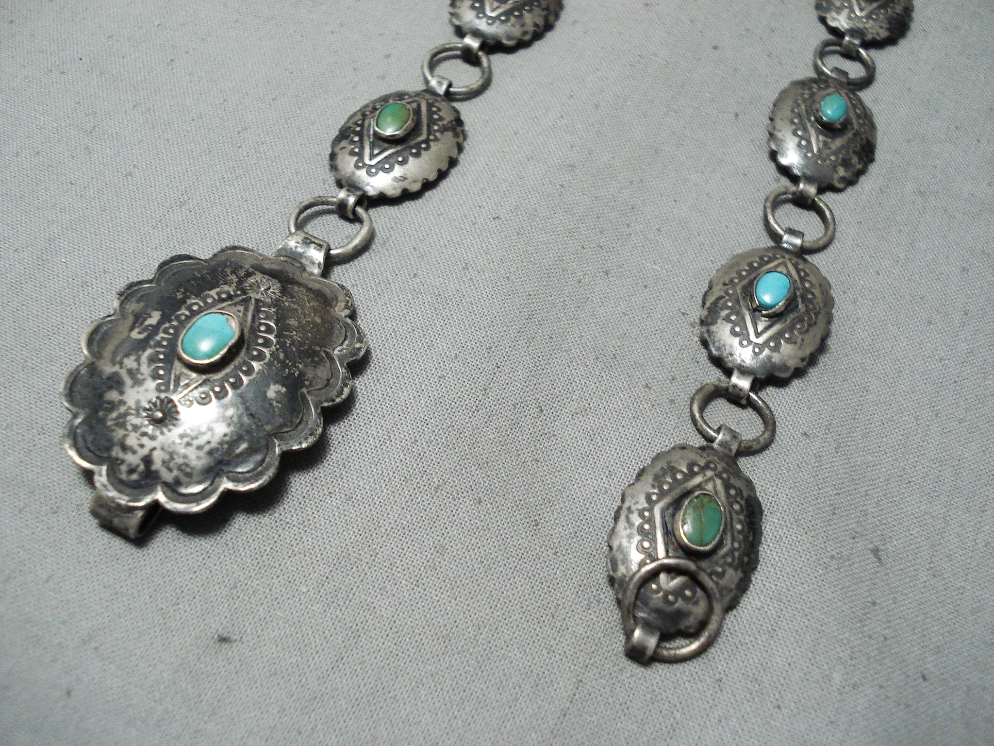 Amazing Vintage Native American Navajo Cerrillos Old Kingman Turquoise Silver Concho Belt