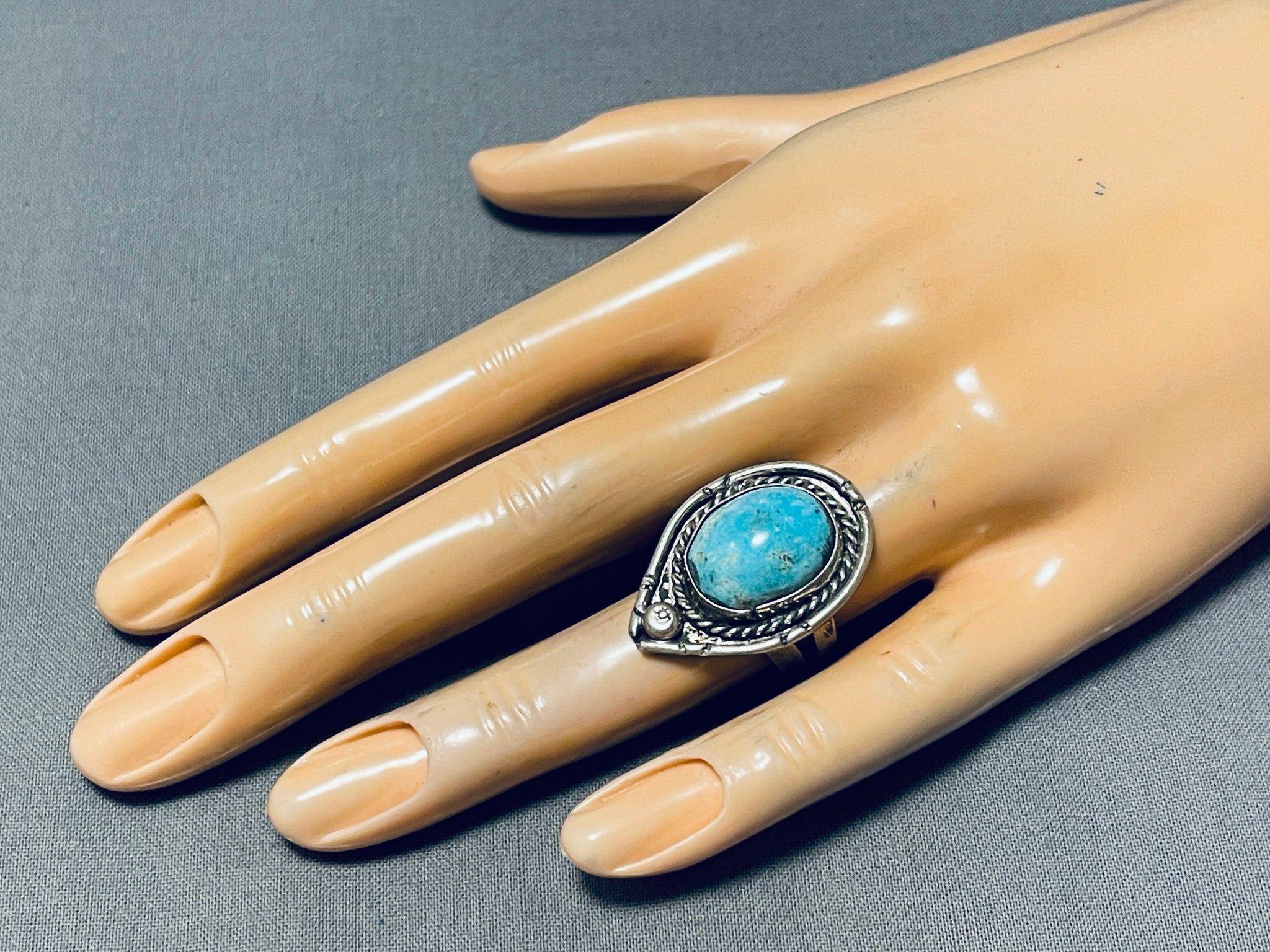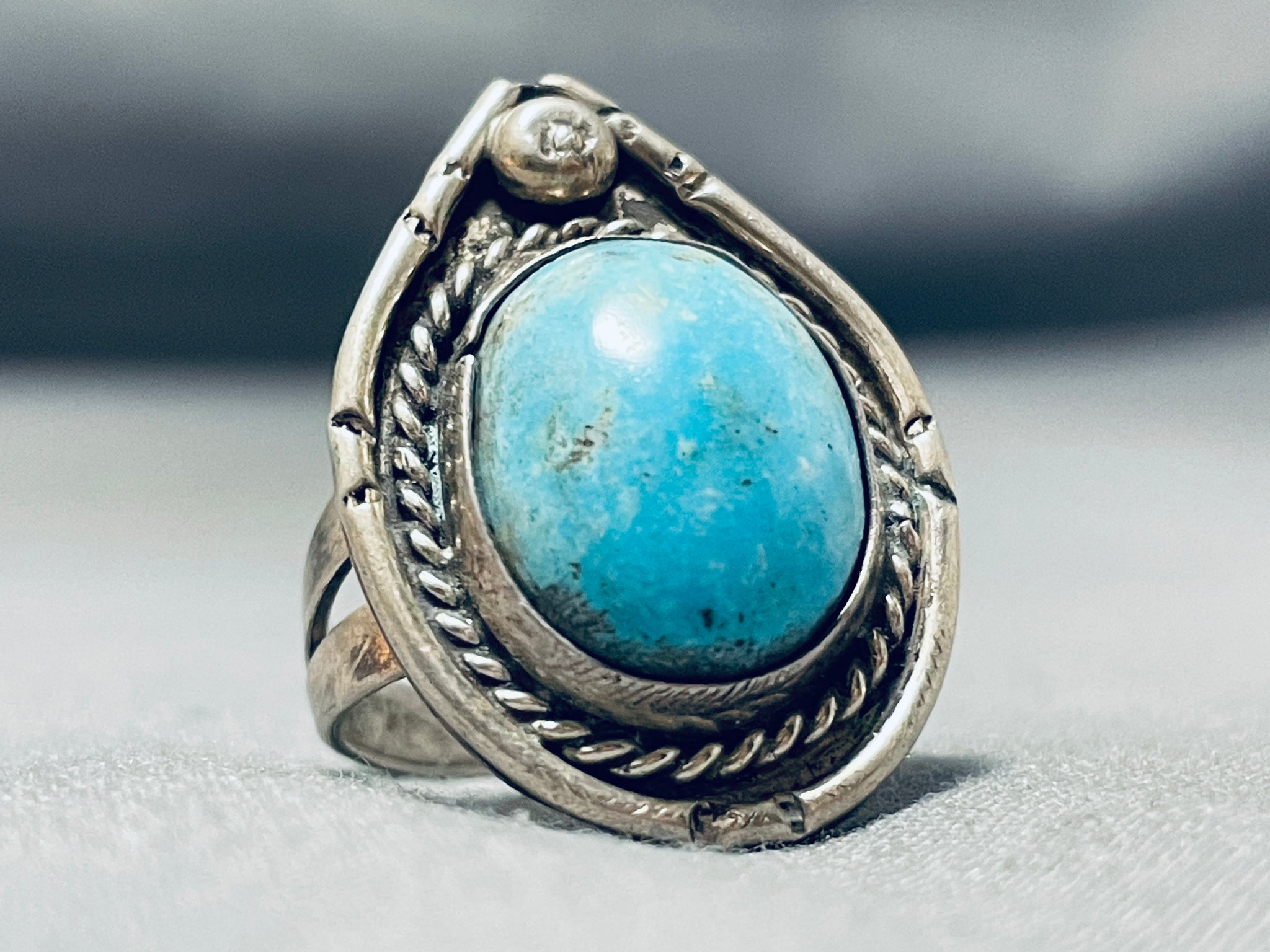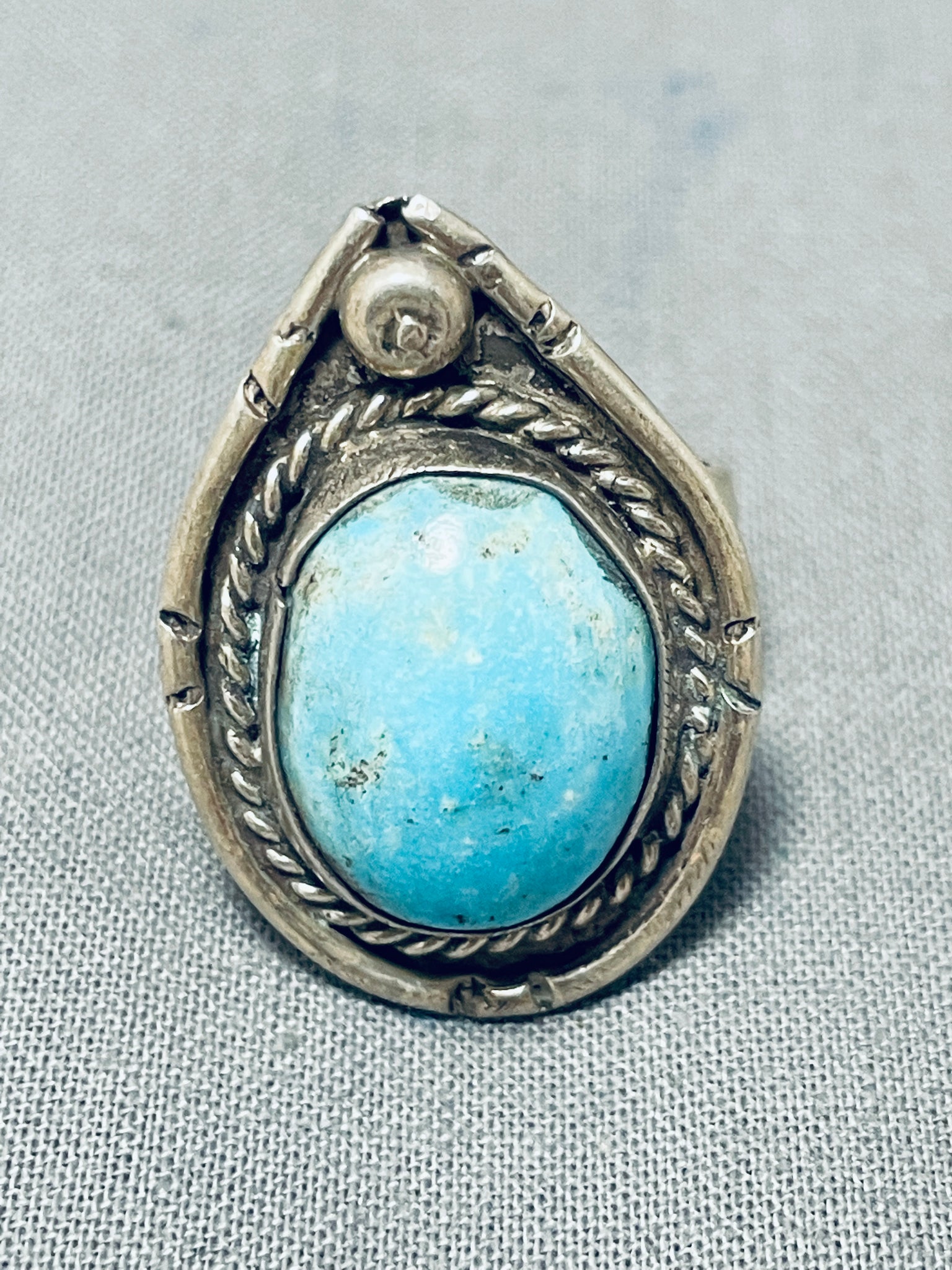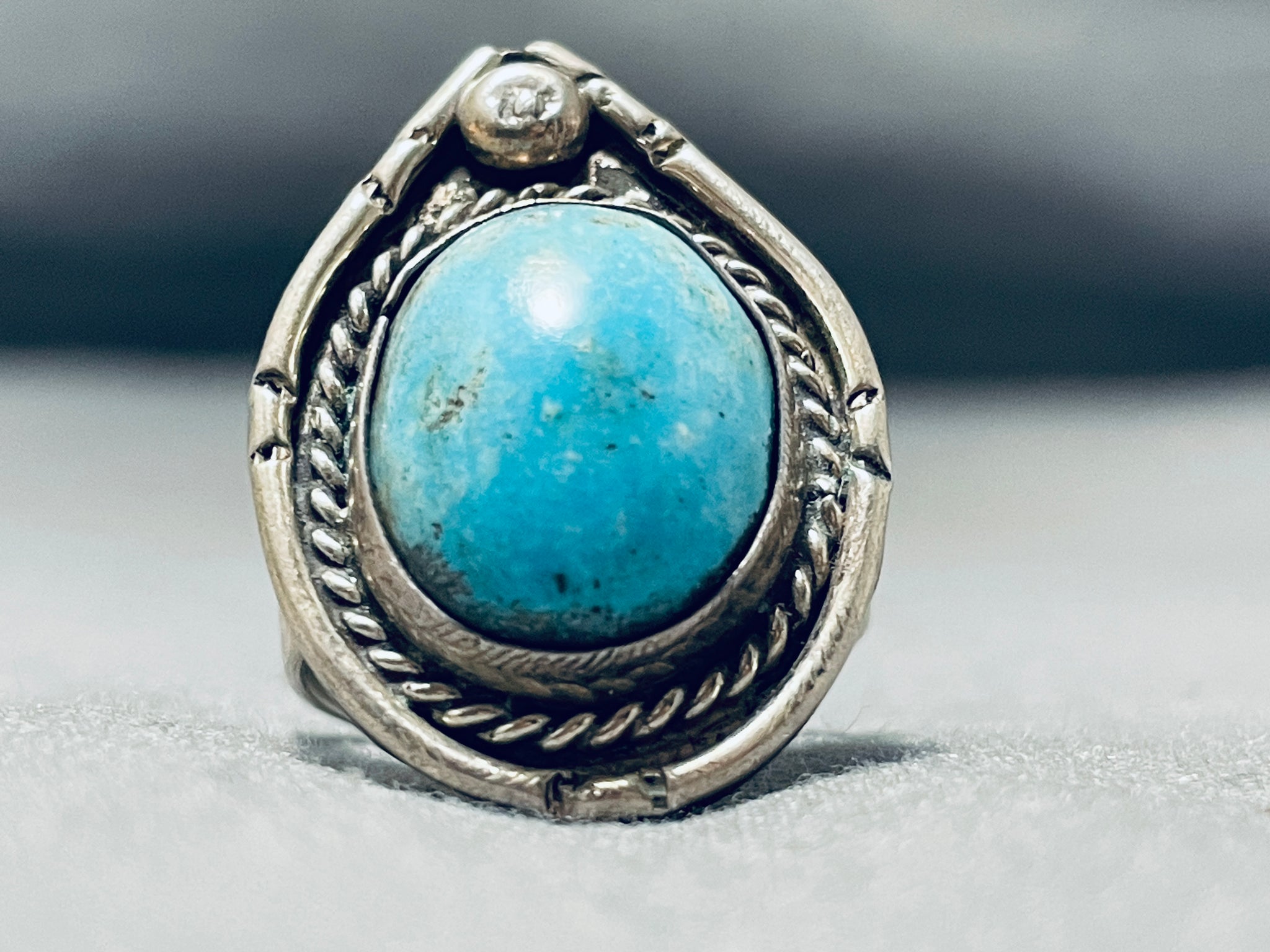 Amazing Vintage Native American Navajo Easter Blue Turquoise Sterling Silver Ring
