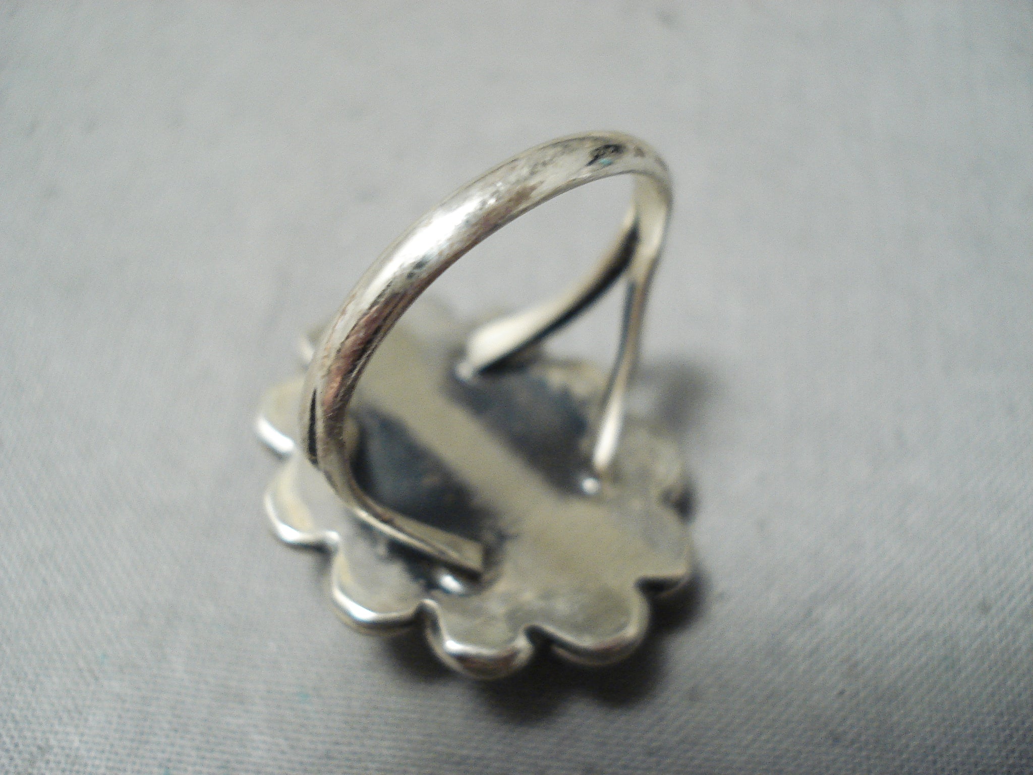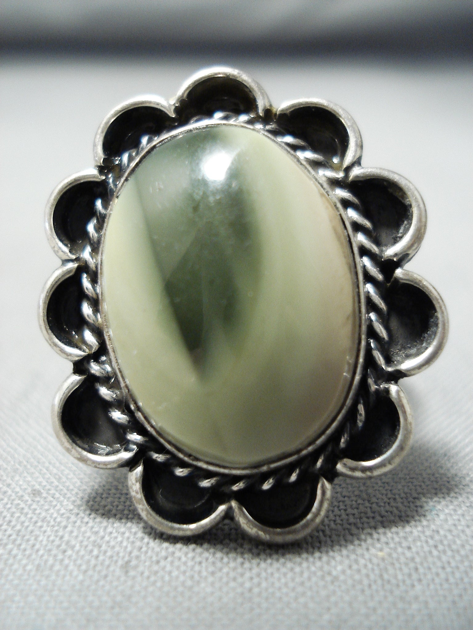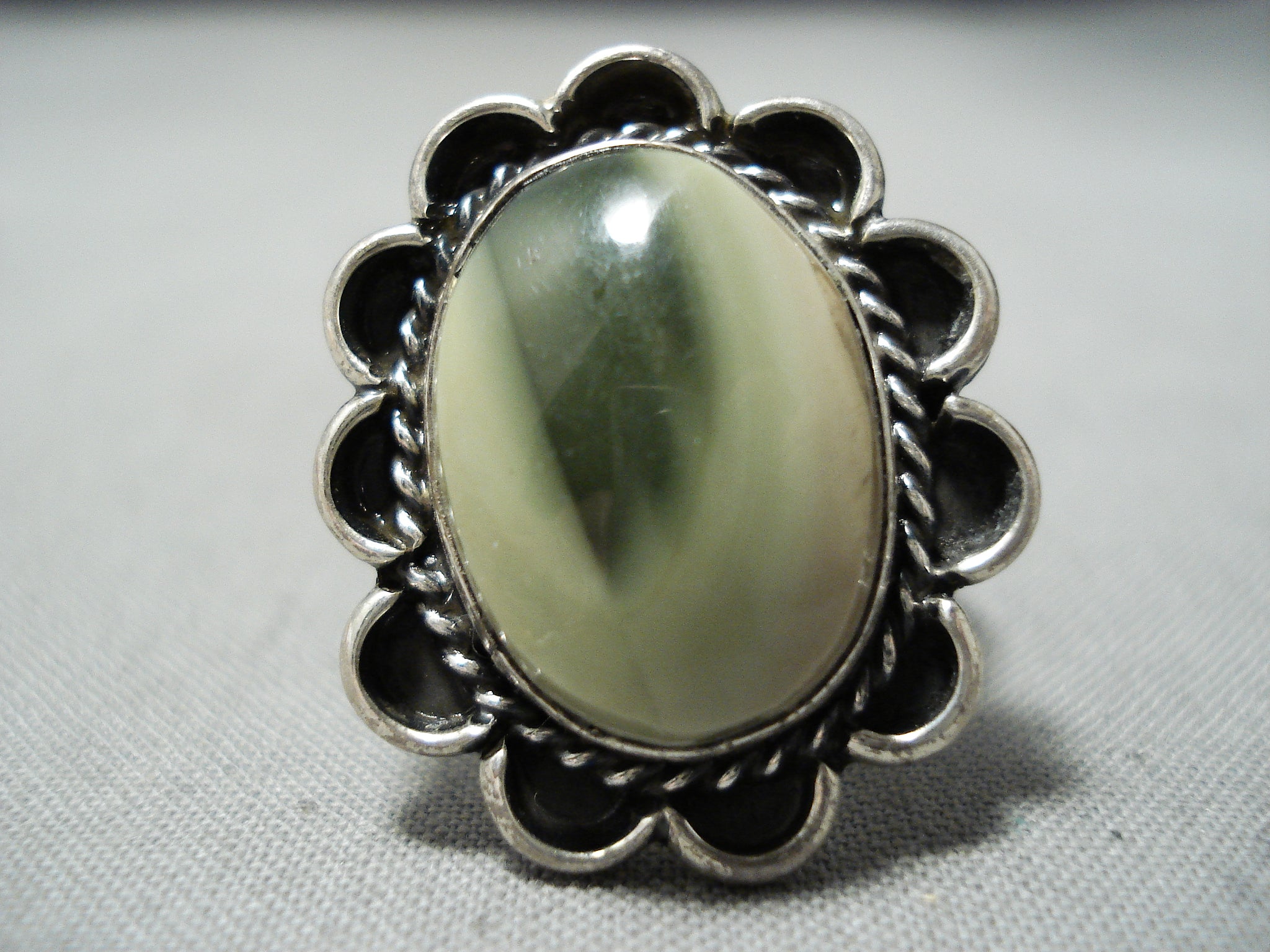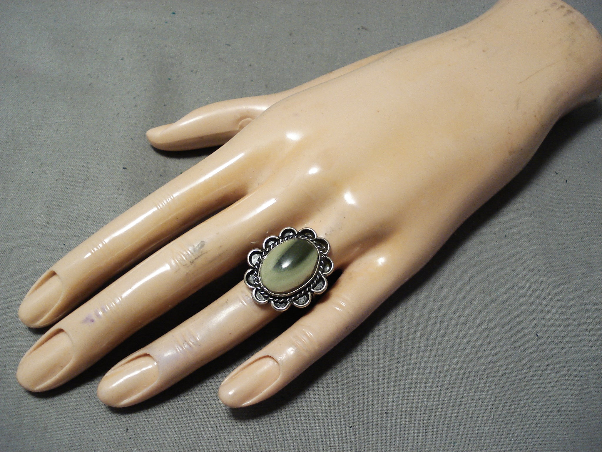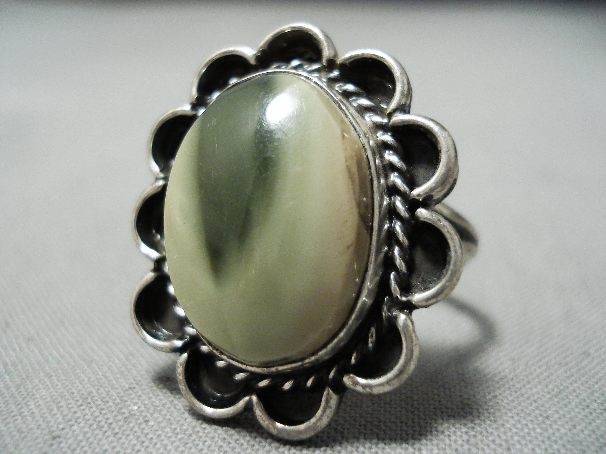 Amazing Vintage Native American Navajo Green Agate Sterling Silver Ring Old