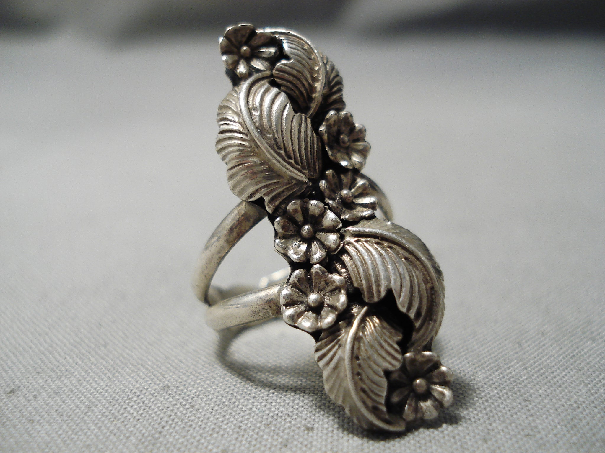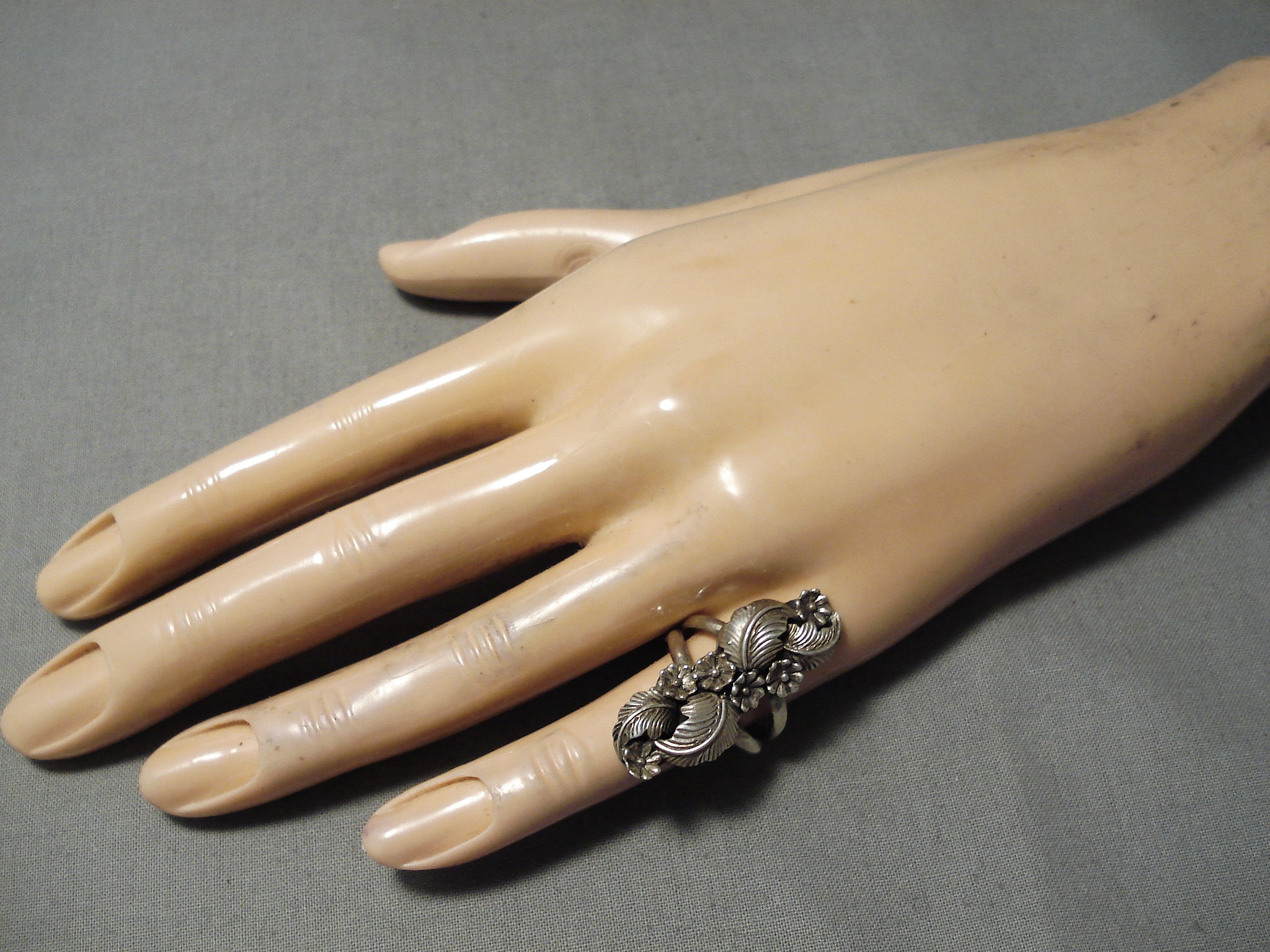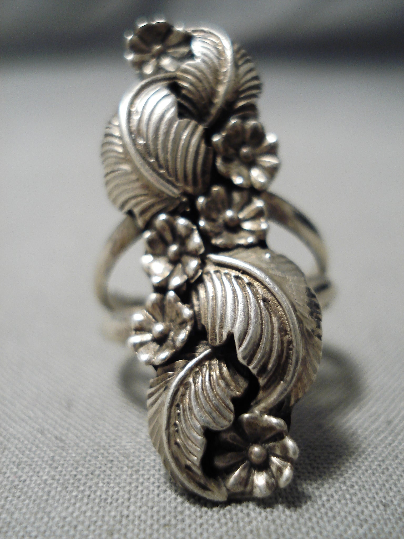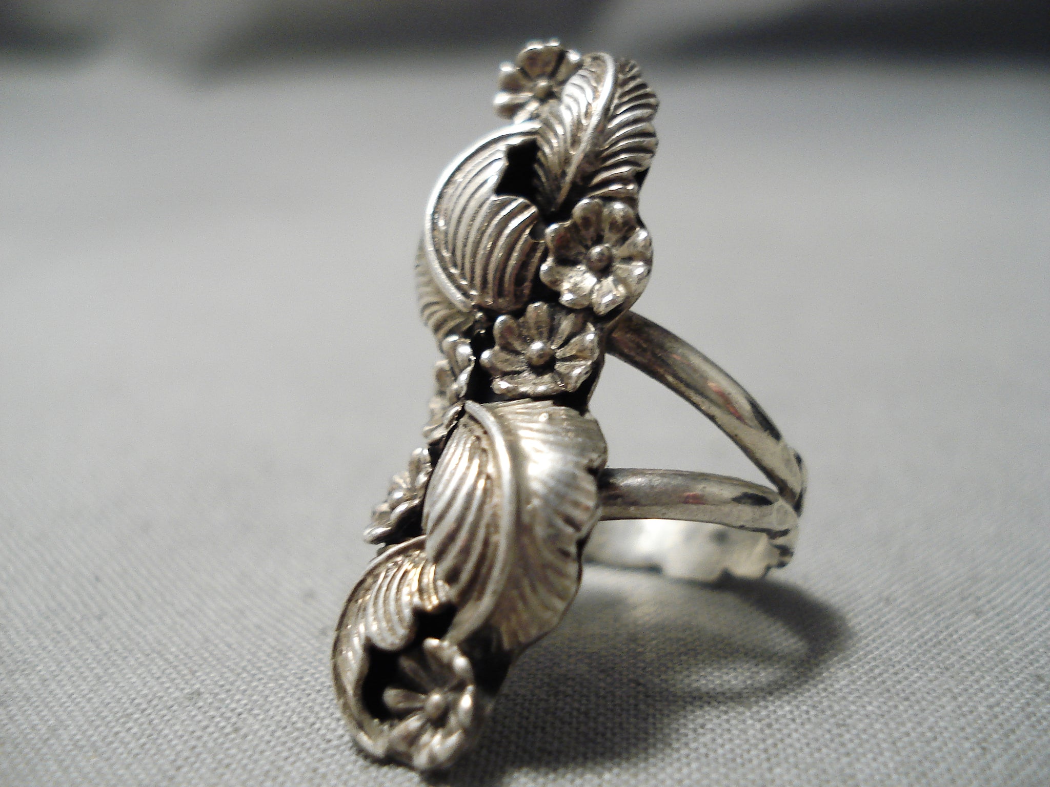 Amazing Vintage Native American Navajo Hand Carved Leaf Sterling Silver Nartive American Ring