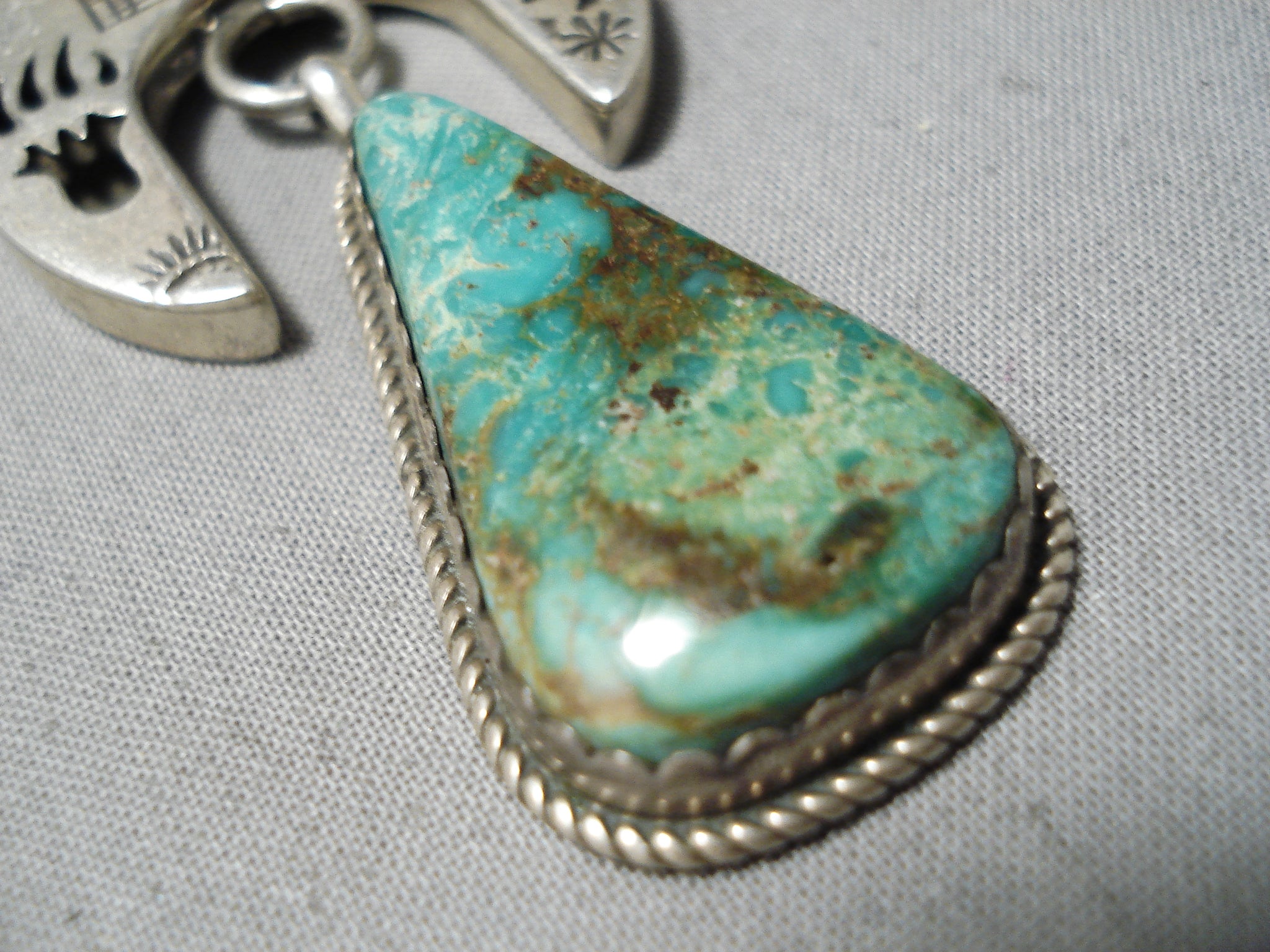 Amazing Vintage Native American Navajo Jeff James Sterling Silver Turquoise Necklace