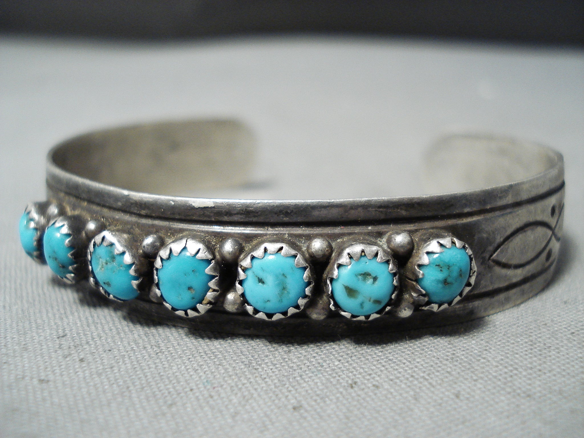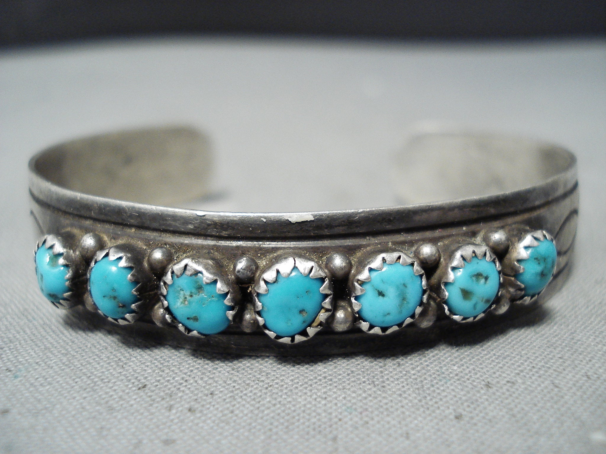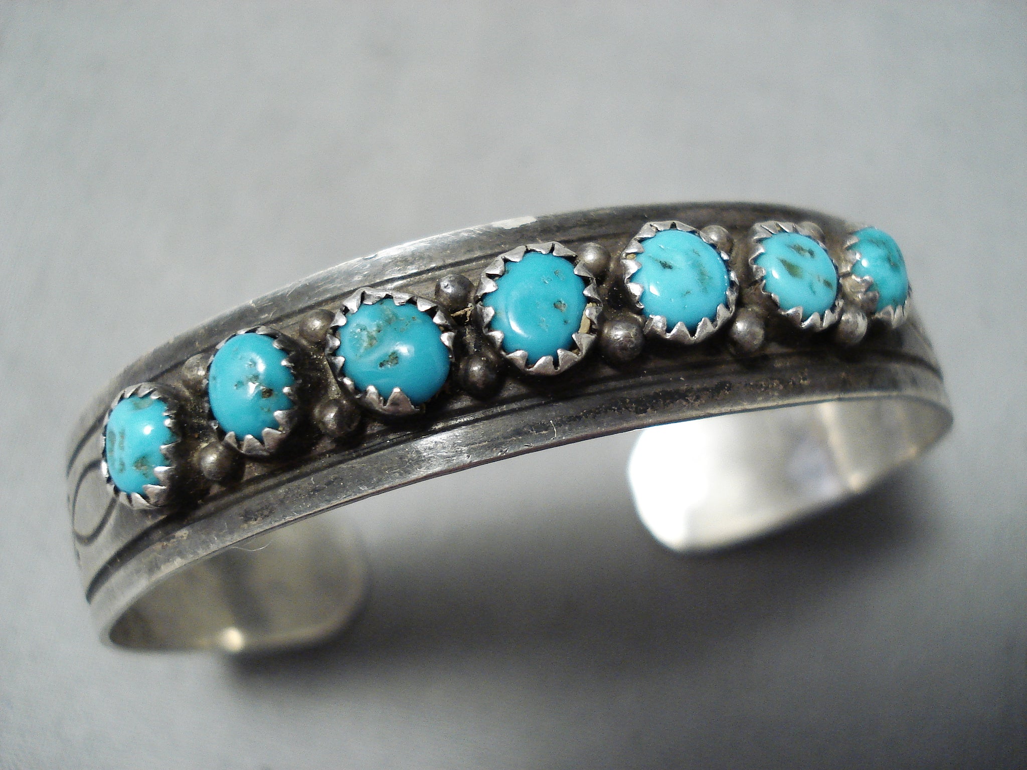 Amazing Vintage Native American Navajo Kingman Turquoise Sterling Silver Bracelet Old